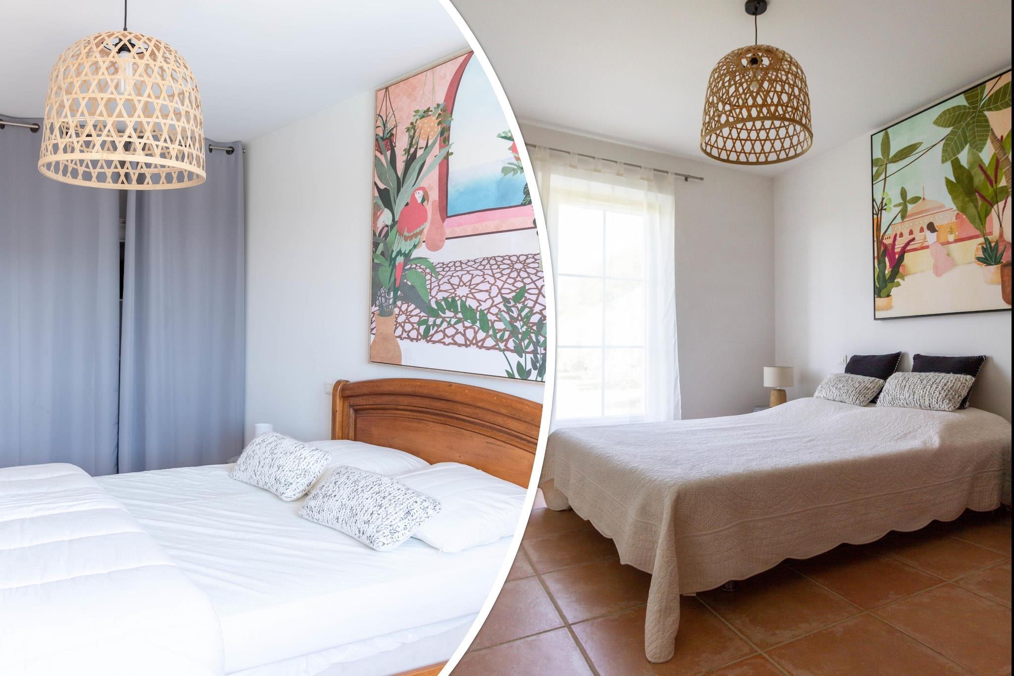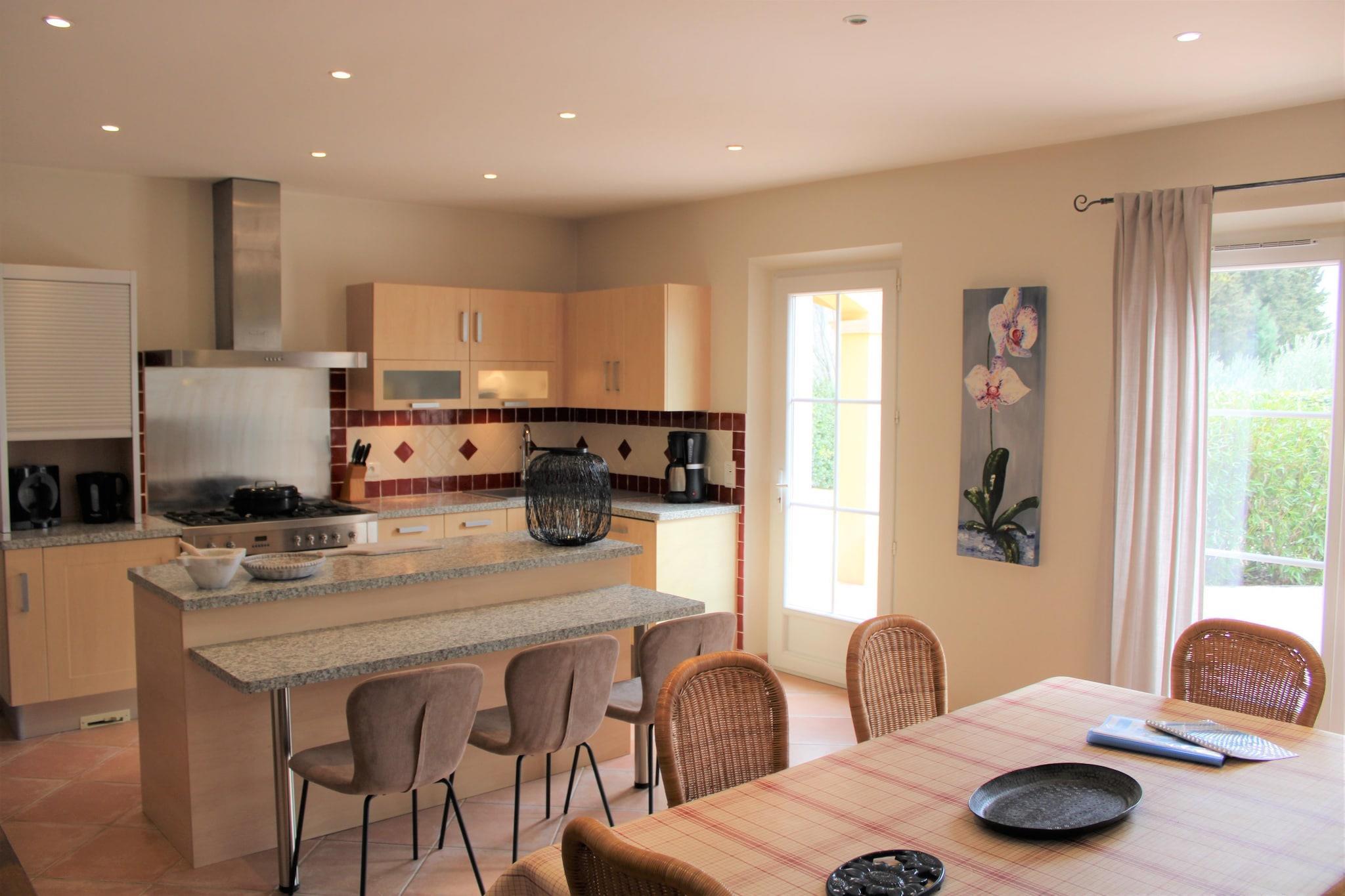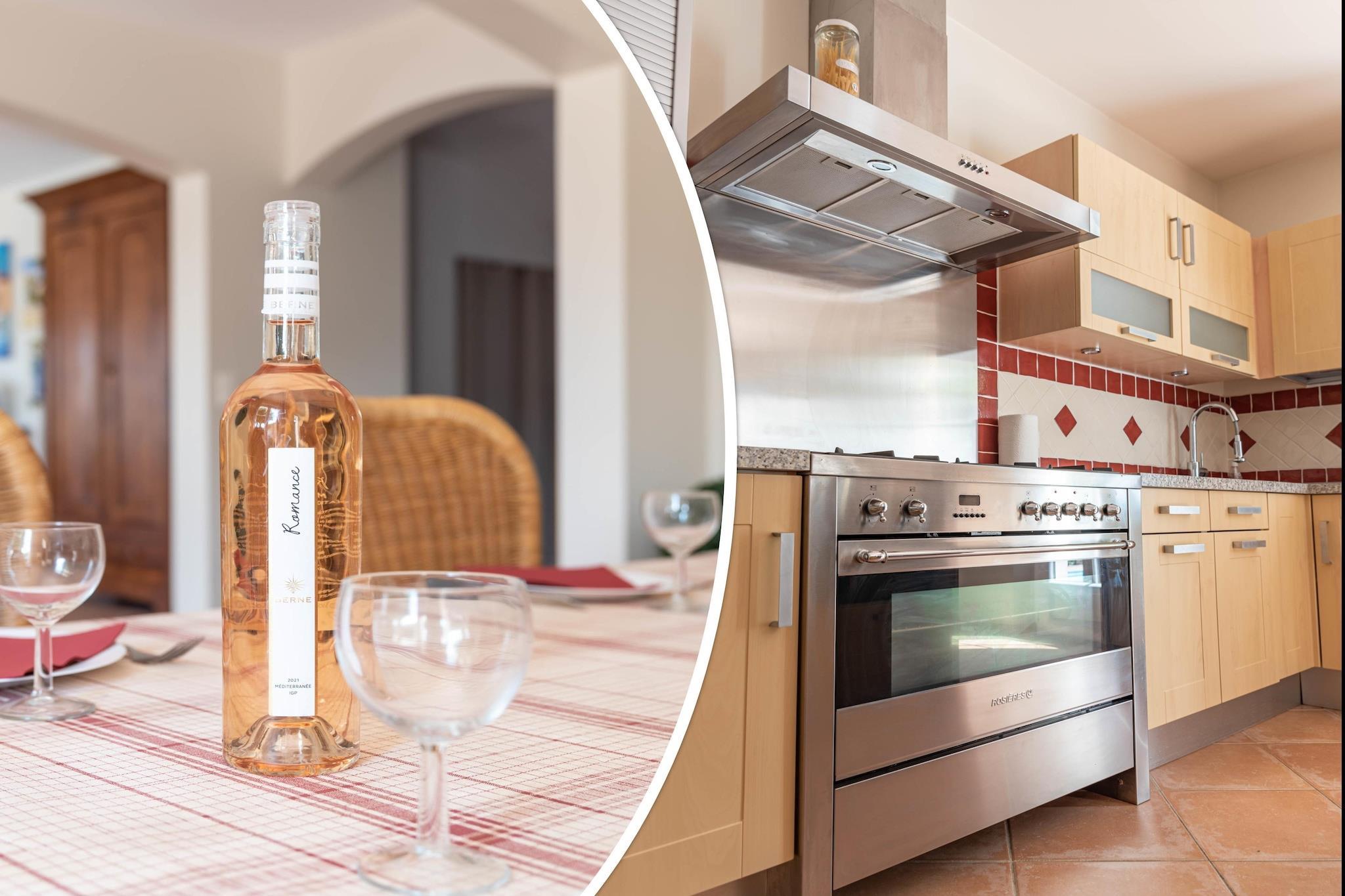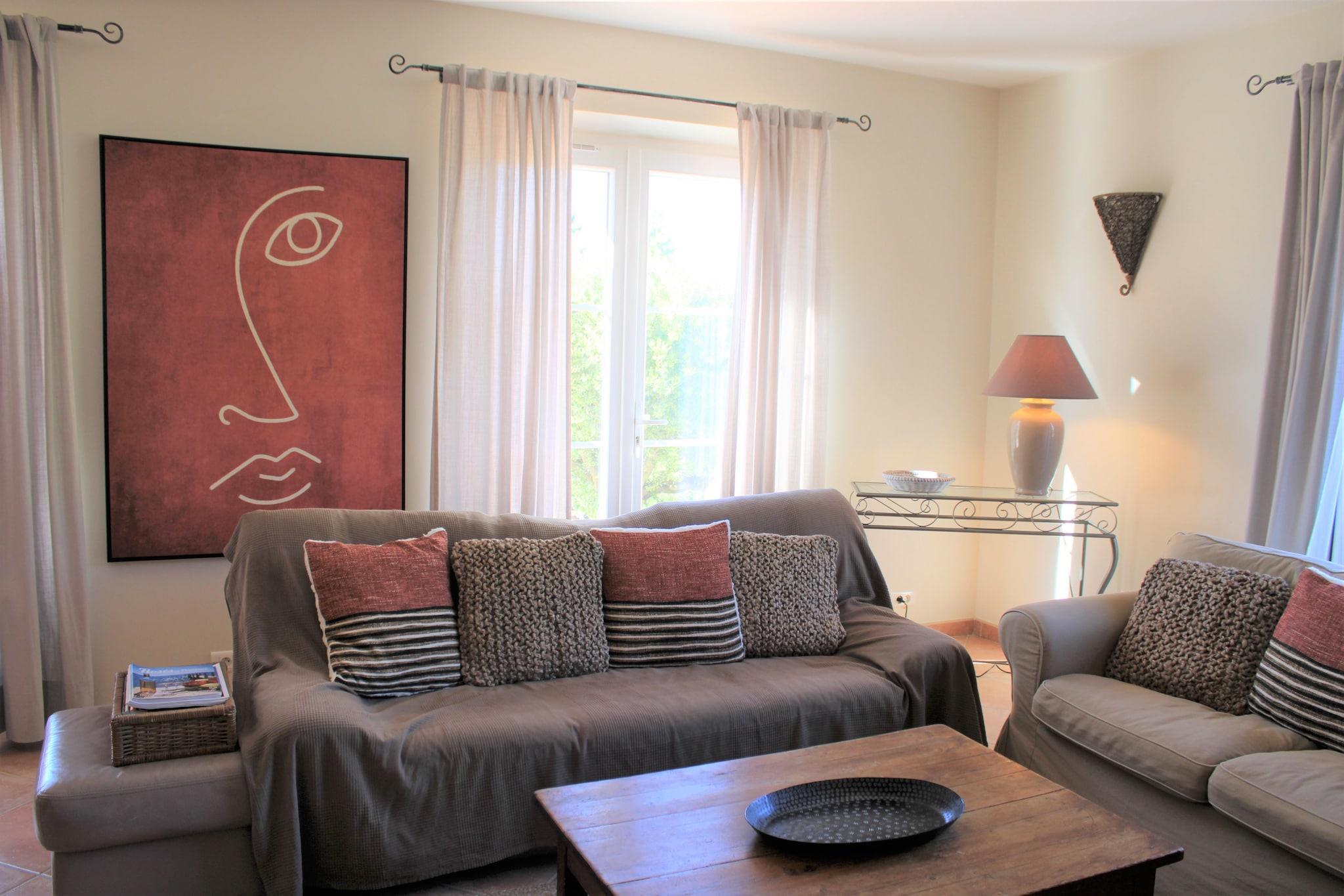 Bastide le Colombier er en smuk provencalsk bastide på en privat ejendom på 2000 m², omgivet af gamle oliventræer og med smuk udsigt og masser af privatliv. Du når frem til bastiden via indkørslen gennem olivenlunden. Her er rigelig parkering til flere biler. Til børnene er der et børnehus og en rutsjebane i haven. Der er cirka 5 minutters gang til centrum af Les Arcs, hvor du finder bager, slagter og forskellige terrasser og restauranter. Hyper Marche of Les Arcs (meget stort supermarked) ligger 5 minutters kørsel derfra. Regionen er hjemsted for adskillige vinslotte og de berømte provencalske markeder. Tirsdag morgen marked i Lorgues kan varmt anbefales! Strandene i Fréjus og St. Tropez ligger 35 km væk, og byerne Nice, Cannes, Toulon/Hyers kan alle nås inden for 1 time. Både stue og spisestue og køkken har store terrassedøre, der fører til terrasser og haven. Stuen har et dejligt opholdsområde med pejs og WiFi er tilgængeligt. Det luksuriøse åbne køkken støder op til spisestuen og er fuldt udstyret. Huset opvarmes og køles gennem gulvet (gennemsnitligt 25 grader) og soveværelserne er forsynet med masser af atmosfære og komfort. Fra første sal har du en smuk udsigt over haven og swimmingpoolen. Den dejlige private swimmingpool har brede trappetrin, hvor du kan slappe af sammen med en drink efter eget valg. Rundt om poolen finder du masser af liggestole, parasoller og et havemøbelsæt. Det store platantræ nær poolen giver den nødvendige skygge på varme sommerdage. Under den overdækkede terrasse ved siden af ??køkkenet er der et stort spisebord til 8 personer og et udekøkken med en elektrisk plancha.