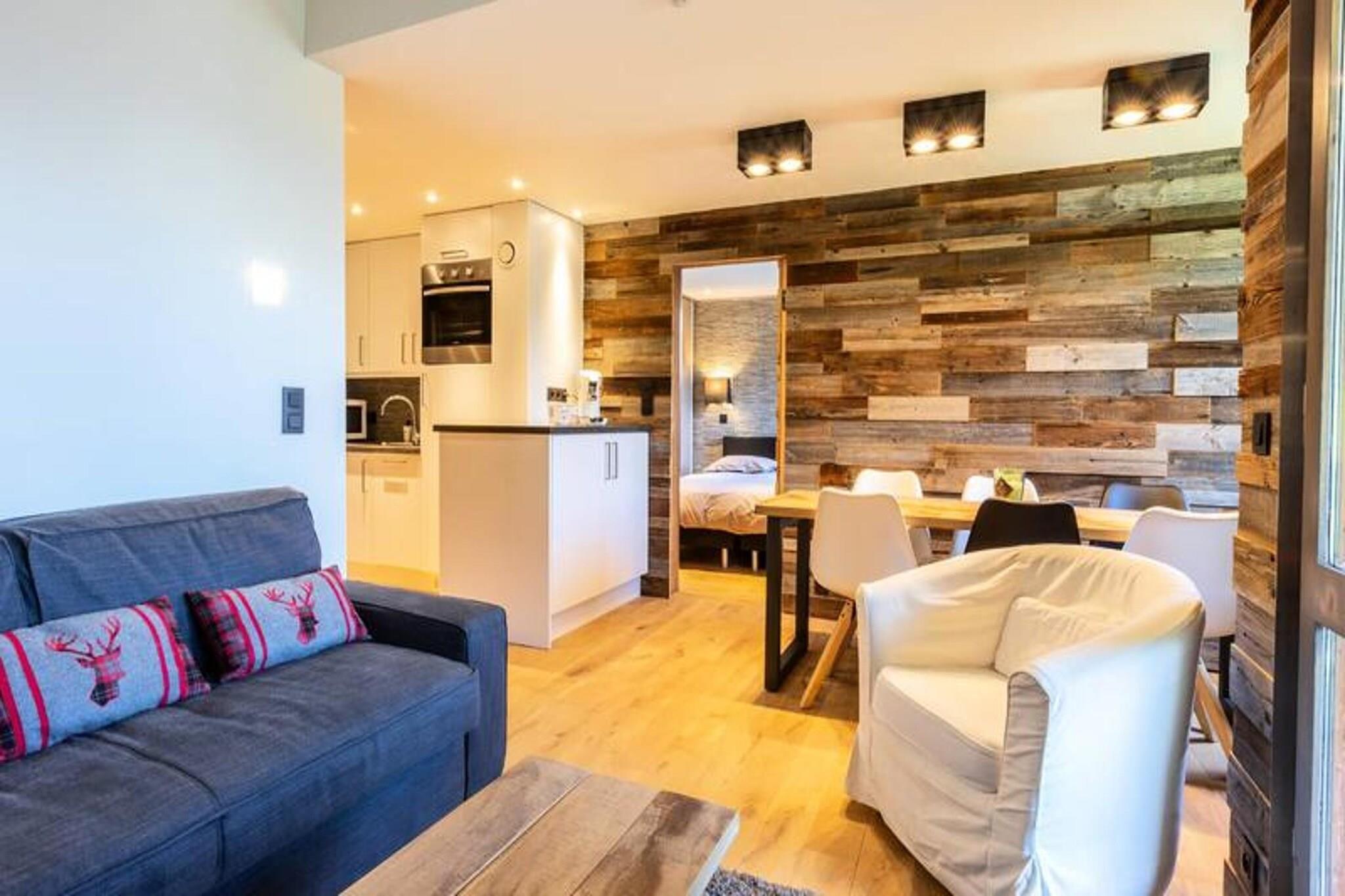 This cozy 45m² apartment is perfect for a ski holiday, comfortably accommodating up to 6 people. It features a bedroom with a 160cm double bed, a cabin with 2 sets of bunk beds, and a bathroom with a shower and separate WC. The apartment is non-smoking and pet-free, ensuring a clean and comfortable environment for guests. Wifi is included, and the apartment is rated highly by previous tenants. Ideally located for ski enthusiasts, the apartment is just 200m from the ski school and 300m from local shops. The residence allows guests to ski in and out directly from the Altispace slope, making it a convenient choice for those looking to hit the slopes. The pedestrian hamlet also offers easy access to the heart of Valmorel via the Télébourg lift, making it perfect for families and skiers alike. The apartment features a spacious living area with a dining corner and an open kitchen equipped with a dishwasher, oven, microwave, and ceramic hob. There is a west-facing balcony with a view of the slopes, ideal for relaxing after a day on the mountain. A ski locker is provided for convenience, and underground parking is recommended for guests who drive. Optional services such as end-of-stay cleaning, bed linens, and baby kits are available for booking in advance.