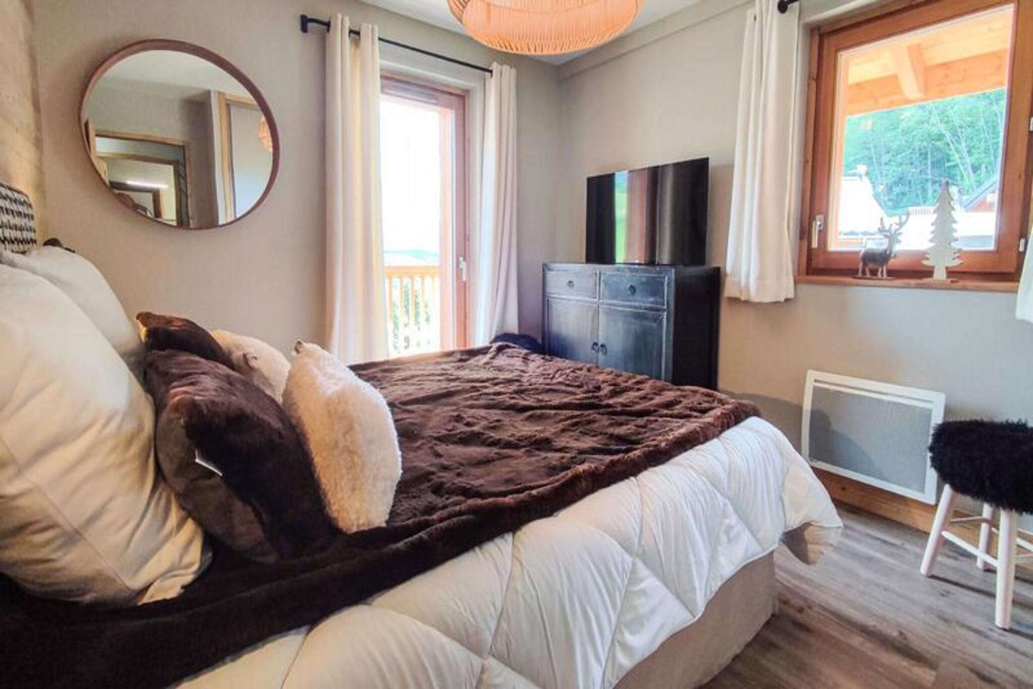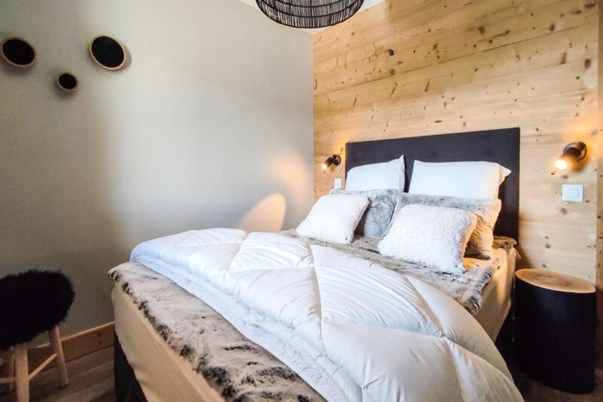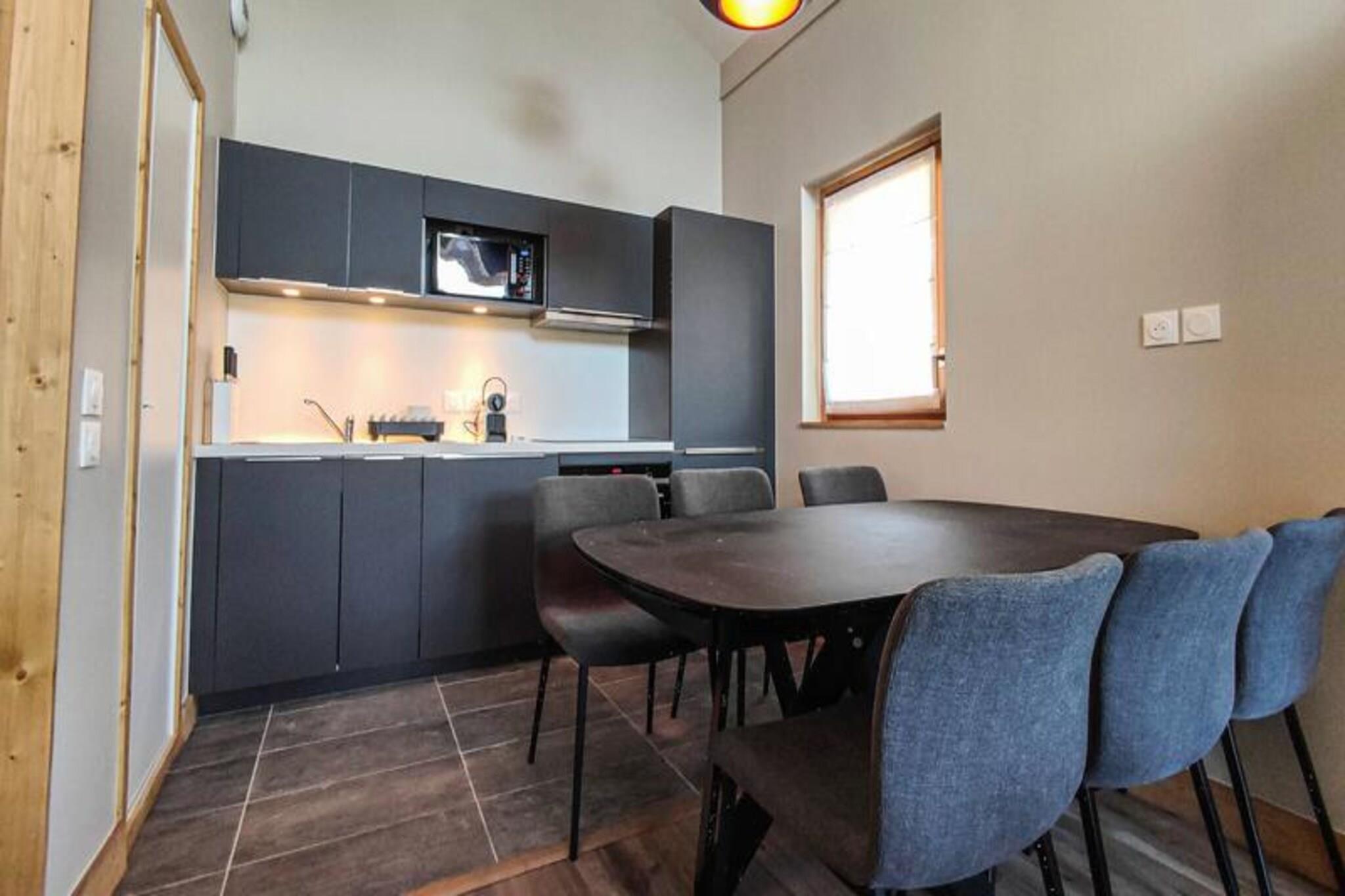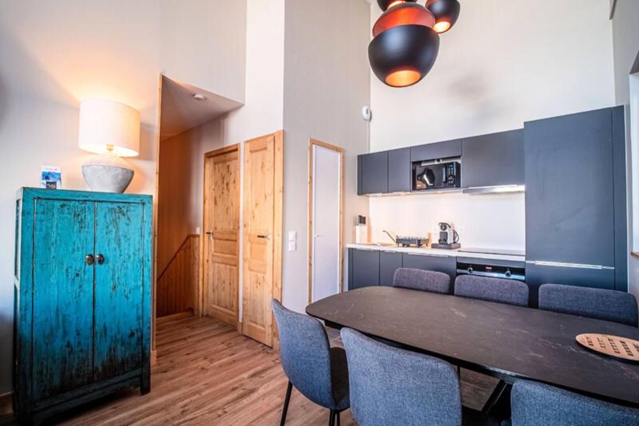 This 76 m² private duplex chalet for 8 people features 4 bedrooms, including two with double beds, a mountain corner with bunk beds, and a spacious living area. Enjoy panoramic views from the South-West facing balcony. The chalet includes Wi-Fi, satellite TV, 2 parking spaces (one covered), and offers services such as bed linen, bathroom linen, and end-of-stay cleaning (excluding kitchen and dishes). It is non-smoking and pet-free. Located in the peaceful hamlet of La Charmette, the chalet provides ski-in/ski-out access and is just 3 km from Valmorel’s center, with free shuttle service to the resort. Guests can explore nearby restaurants and a sports store. Valmorel offers a range of family-friendly activities, both in winter and summer, with skiing, hiking, and après-ski options, making it a perfect destination year-round. The open-plan kitchen is fully equipped with modern appliances, including a dishwasher, oven, microwave, Nespresso machine, and toaster. The cozy living room features a TV and a dining table for 6. Two bathrooms (one with a bathtub and one with an Italian shower) and a laundry room with a washing machine and dryer provide added convenience for a relaxed stay.