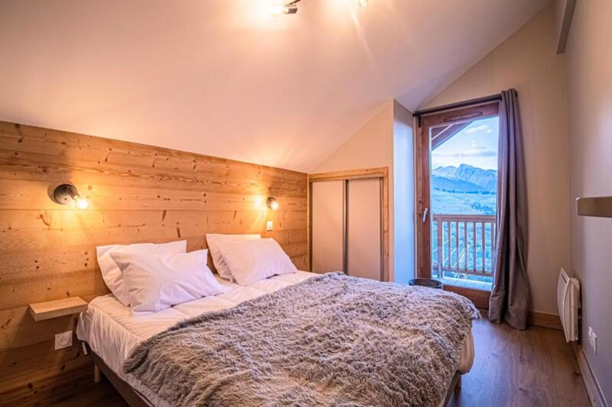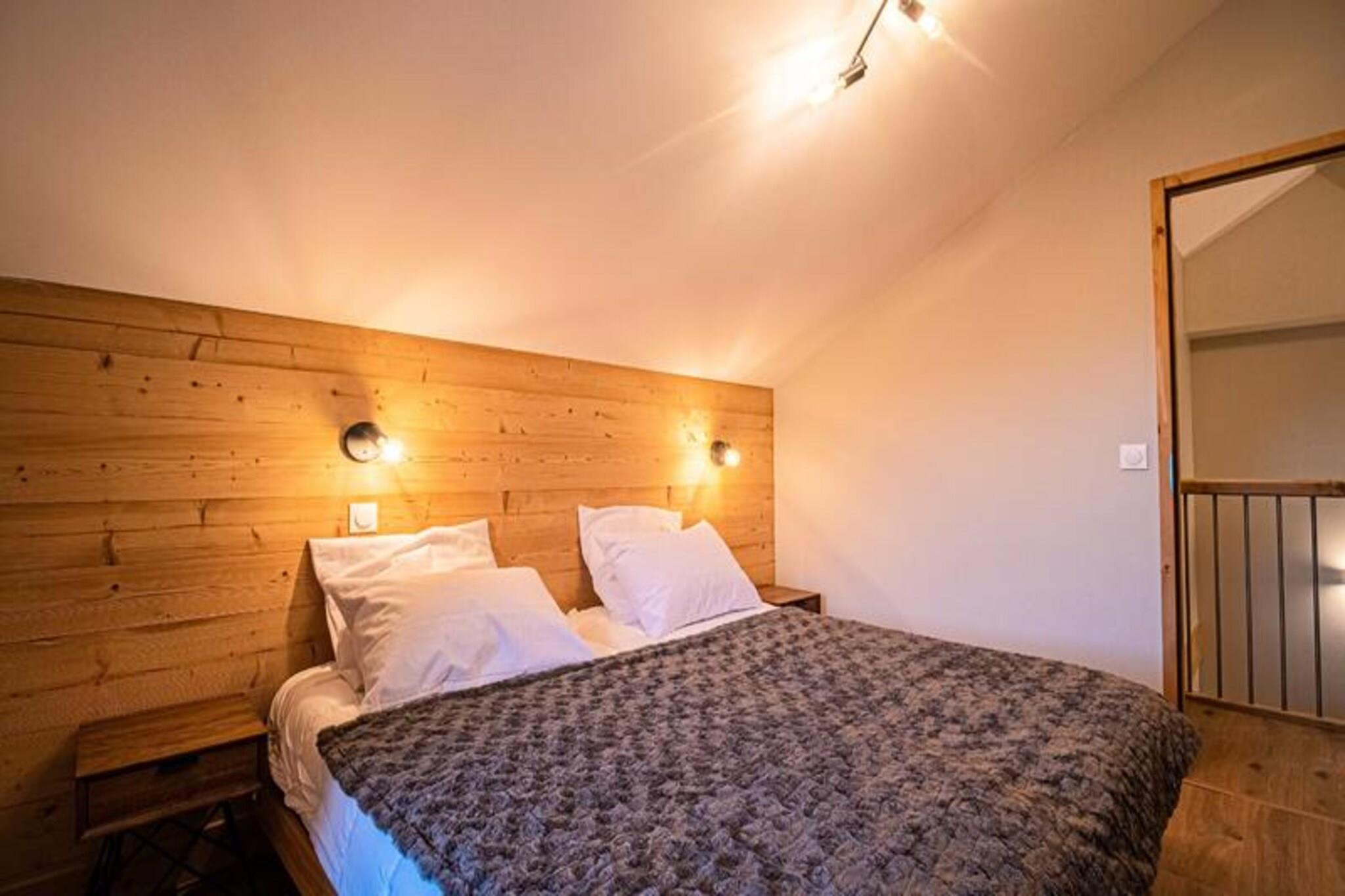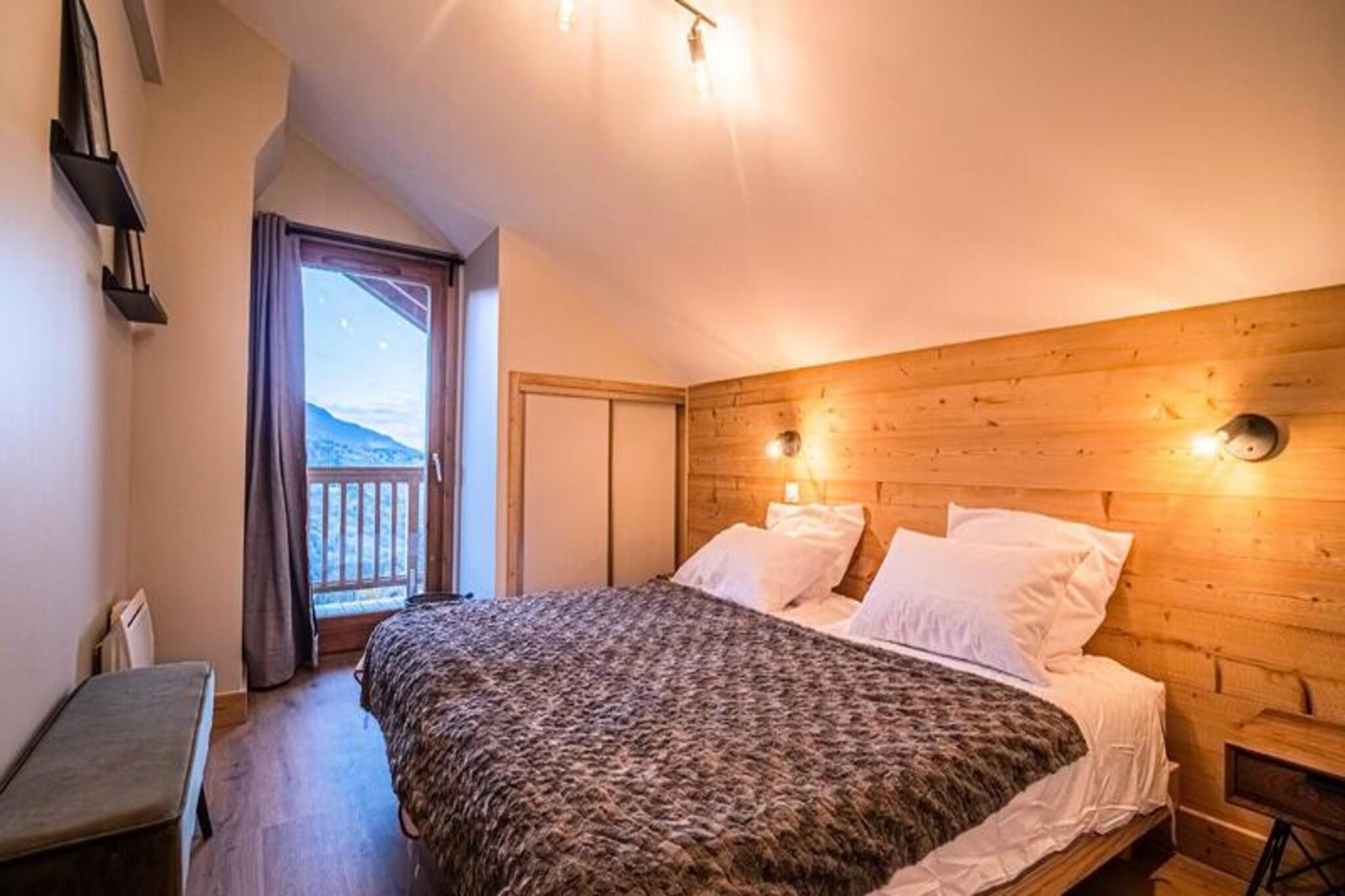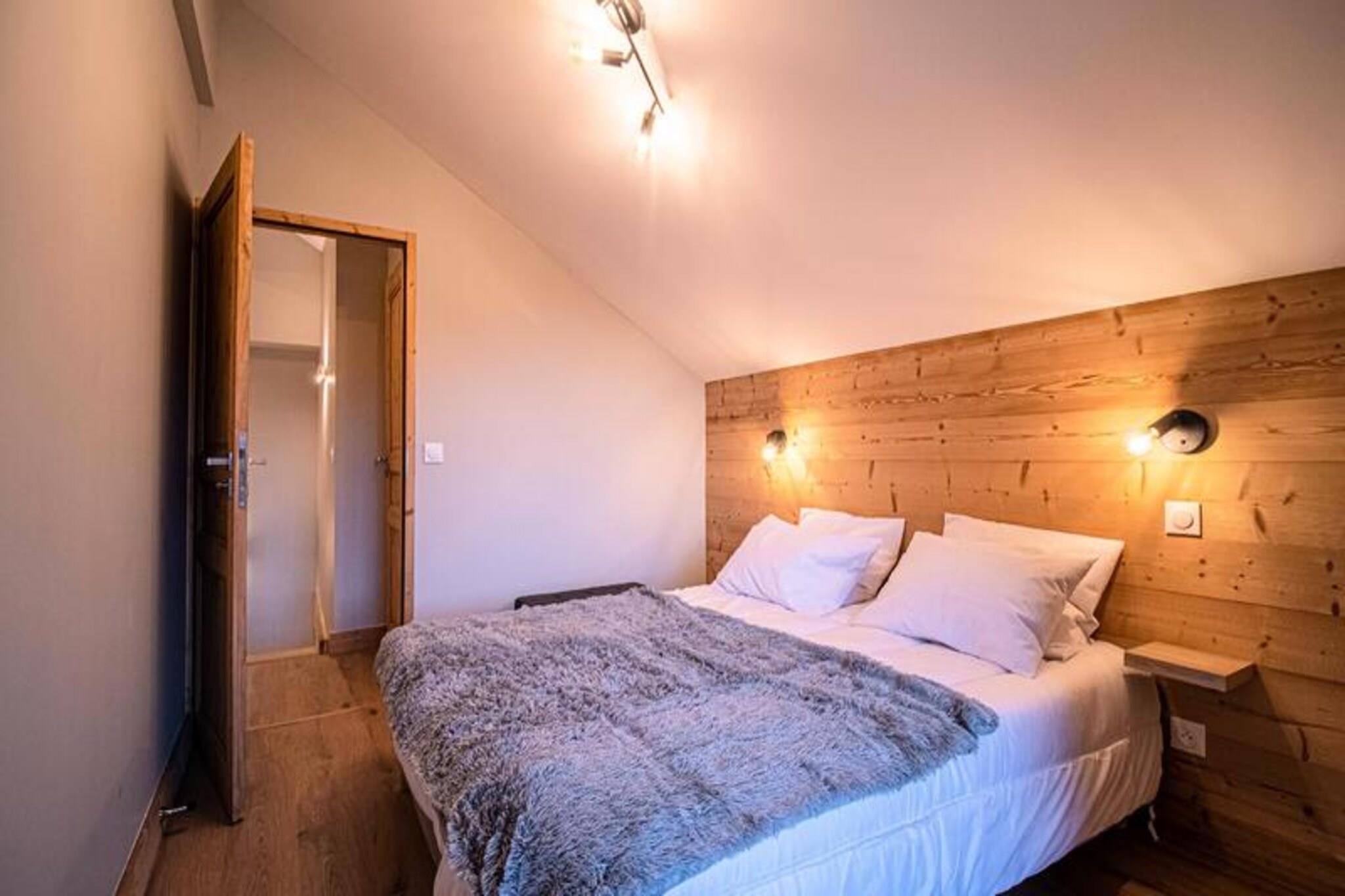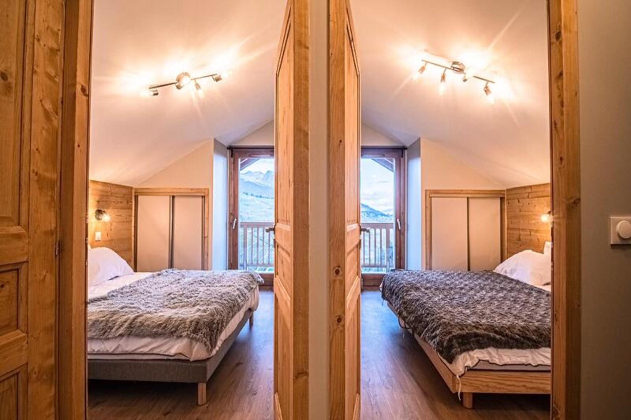 This 76 m² duplex chalet comfortably accommodates up to 8 people with three bedrooms. It features a double bedroom with a TV, a second double bedroom, and a room with two single beds. A sofa bed in the living area offers additional sleeping space. The chalet includes two parking spaces (one covered), bed and bathroom linens, and end-of-stay cleaning (excluding kitchen and dishes). Non-smoking and pet-free, it provides a clean and cozy environment for your stay. Located in La Charmette, the chalet is directly on the ski slopes, offering ski-in/ski-out access. The resort center is a 3 km drive away, with free public shuttle access. Nearby activities include hiking, skiing, and mountain biking. Restaurants, a sports store, and markets are available, making it easy to enjoy both summer and winter vacations. Valmorel is known for its family-friendly atmosphere and a variety of après-ski activities. The chalet features a fully equipped kitchen with a dishwasher, oven, microwave, and Nespresso coffee machine. The living room has a TV, a pellet stove, and a west-facing terrace offering stunning mountain views. Additional amenities include a washing machine, dryer, ski locker, ski boot dryer, and a 7 m² balcony.