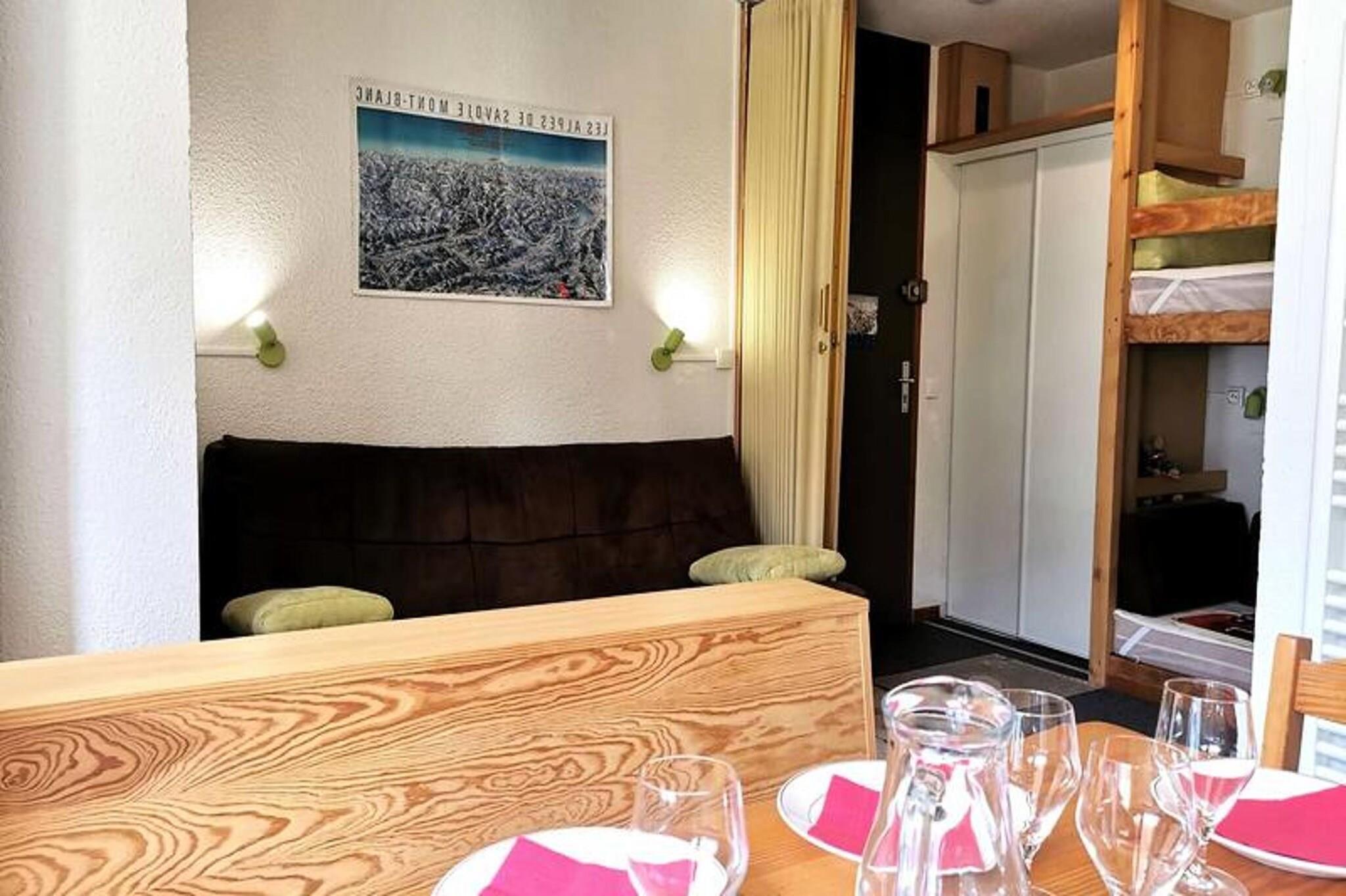 This divisible studio is ideal for up to 4 guests, featuring two separate sleeping areas. One area offers a set of bunk beds, separated by a movable partition, while the other includes a sofa bed and a trundle bed, both separated by a curtain. All beds come with duvets for comfort. The apartment is non-smoking and pets are not allowed. Linen and cleaning services are available for an additional fee, and tourist tax is not included in the rental price. The studio is ideally located in the hamlet of La Forêt, just 5 minutes from the ESF lessons and 10 minutes from the Piou-Piou club, making it perfect for families. It is only a 3-minute walk from the shops and slopes, allowing guests to easily explore the area and enjoy local cafes and eateries. The apartment is well-equipped with a fitted kitchen, including a dishwasher, fridge, ceramic hobs, microwave, and mini oven for cooking convenience. There is also a washing machine, coffee maker, and toaster for added comfort. The studio features a shower room and a separate toilet, providing all the essentials for a relaxing stay. With its cozy layout and convenient location, this apartment is perfect for a mountain getaway.