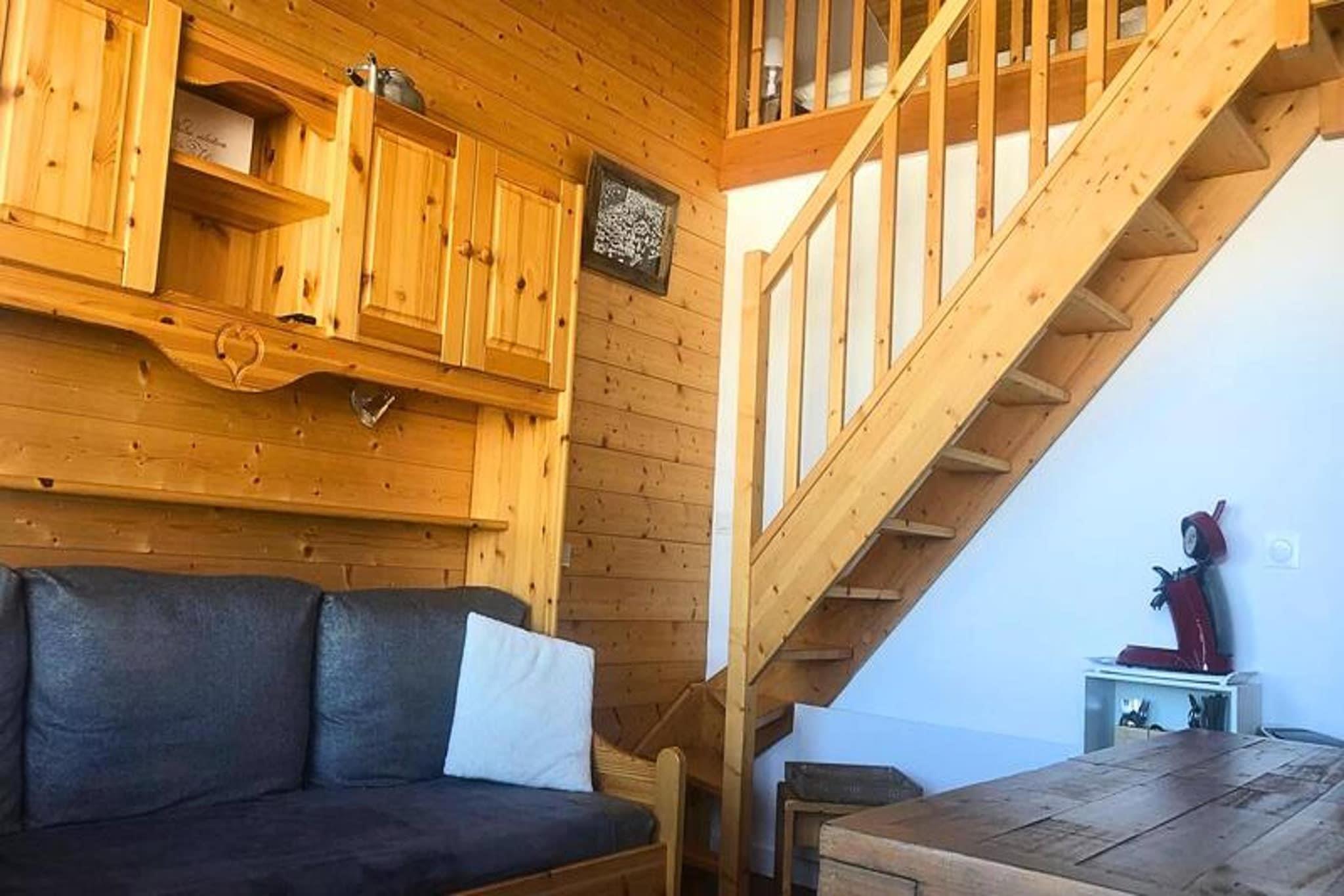 This charming 2-room apartment with a mezzanine comfortably accommodates 5 people and is fully renovated for a modern and cozy stay. The apartment features a bedroom with a double bed, a mezzanine with a double bed and two single beds, and a living room with a sofa. All beds are equipped with duvets. The apartment is non-smoking, and pets are not allowed. Linen and cleaning services are available upon request for an additional fee. The tourist tax is not included in the rental price. Conveniently located at the foot of the slopes, this apartment is just 10 minutes from the ESF lessons, 8 minutes from the Piou Piou club, and 8 minutes from the shops. The proximity to these amenities makes it ideal for families and those looking to enjoy both skiing and local attractions. The location ensures easy access to cafes, ski rental shops, and more, creating a perfect balance between outdoor activities and relaxation. The apartment is well-equipped for a comfortable stay with an open kitchen, a bathroom, and a separate toilet. The kitchen includes a coffee maker, Senseo pod coffee maker, Sharp dishwasher, and an Electrolux washing machine. The ski locker is conveniently located on level 0 of the building. For entertainment, the living room and bedroom each have a TV. Heating is provided for added comfort.