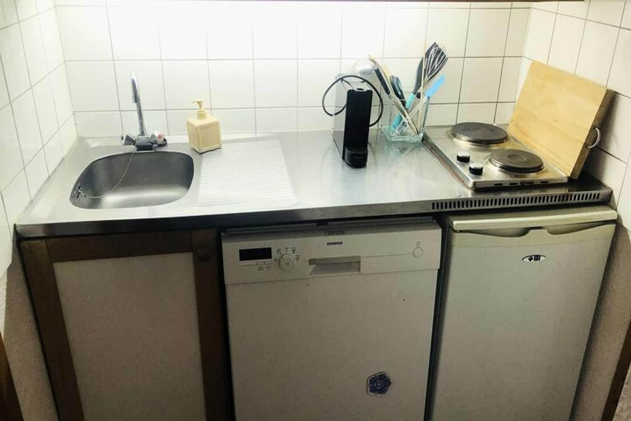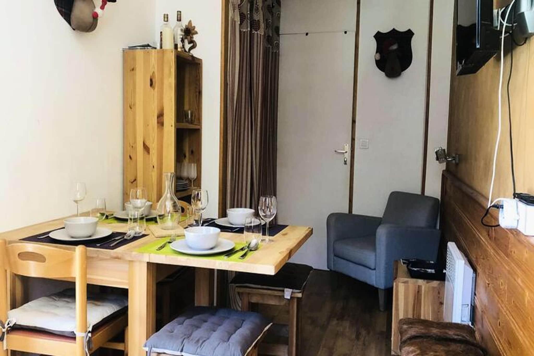 This 2-room apartment is ideal for up to 4 guests, featuring a living room with a sofa that converts into a pull-out bed and a separate bedroom with a comfortable 140 cm double bed. The apartment is non-smoking and does not allow pets. A TV is provided for entertainment, and heating ensures a cozy atmosphere throughout your stay. Duvets are provided for all beds, ensuring a restful sleep after a day of outdoor activities. Located in the hamlet of La Forêt, this apartment offers convenient proximity to skiing activities and local amenities. It is just a 5-minute walk to the ESF Planchamp lessons and the Piou Piou club, making it an excellent choice for families and beginners. Shops are only 6 minutes away, ensuring easy access to any necessities. The apartment is ski-in/ski-out, offering direct access to the slopes for a seamless ski experience. The apartment is equipped with a well-stocked kitchenette, including a fridge, dishwasher, 2 electric hotplates, a mini oven, and a Nespresso coffee machine. It also offers additional kitchen amenities such as a coffee maker, toaster, and appliances for a raclette and fondue. The bathroom is complemented by a separate toilet, while the private terrace provides a lovely outdoor space furnished with a table and chairs, perfect for enjoying the mountain air.
