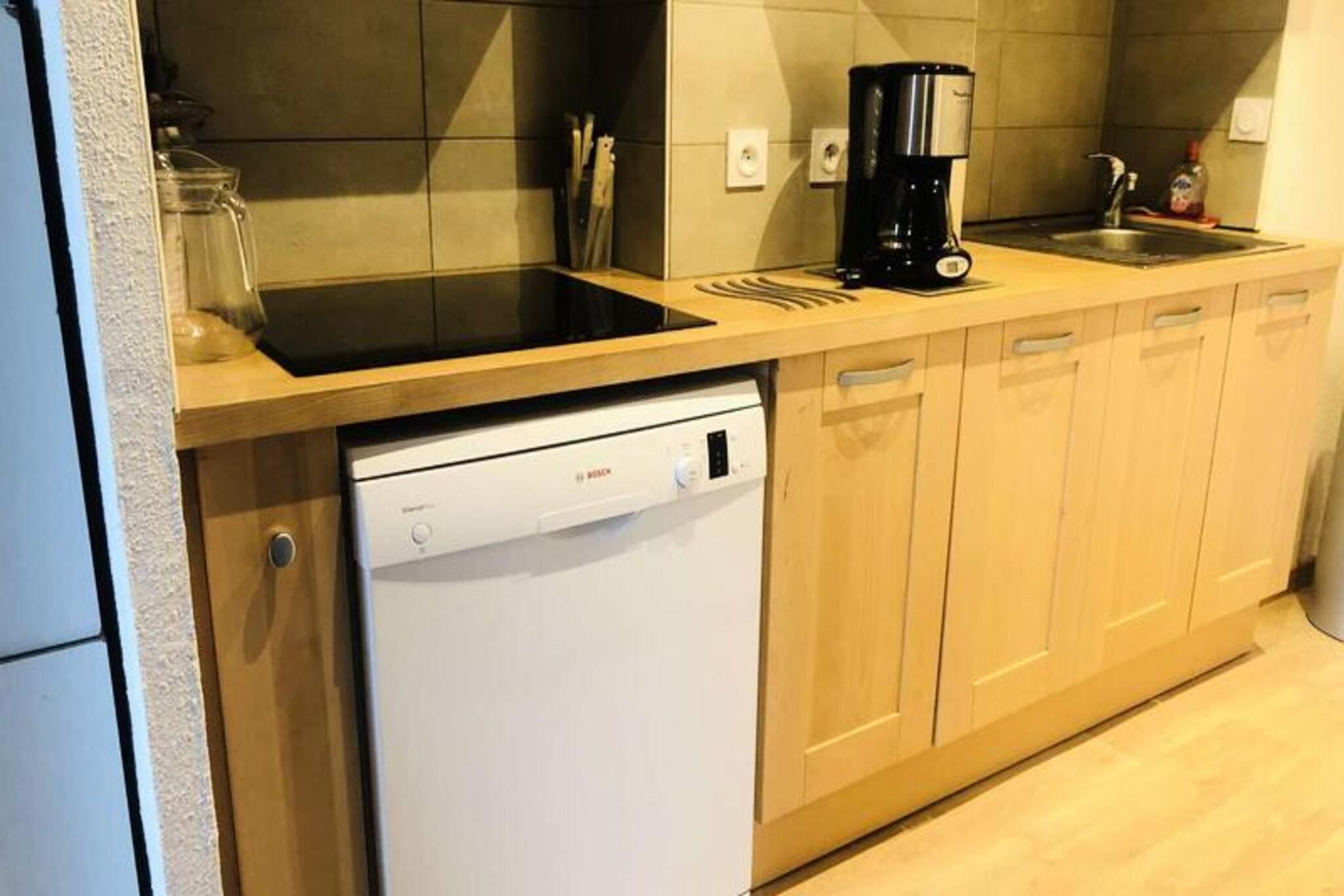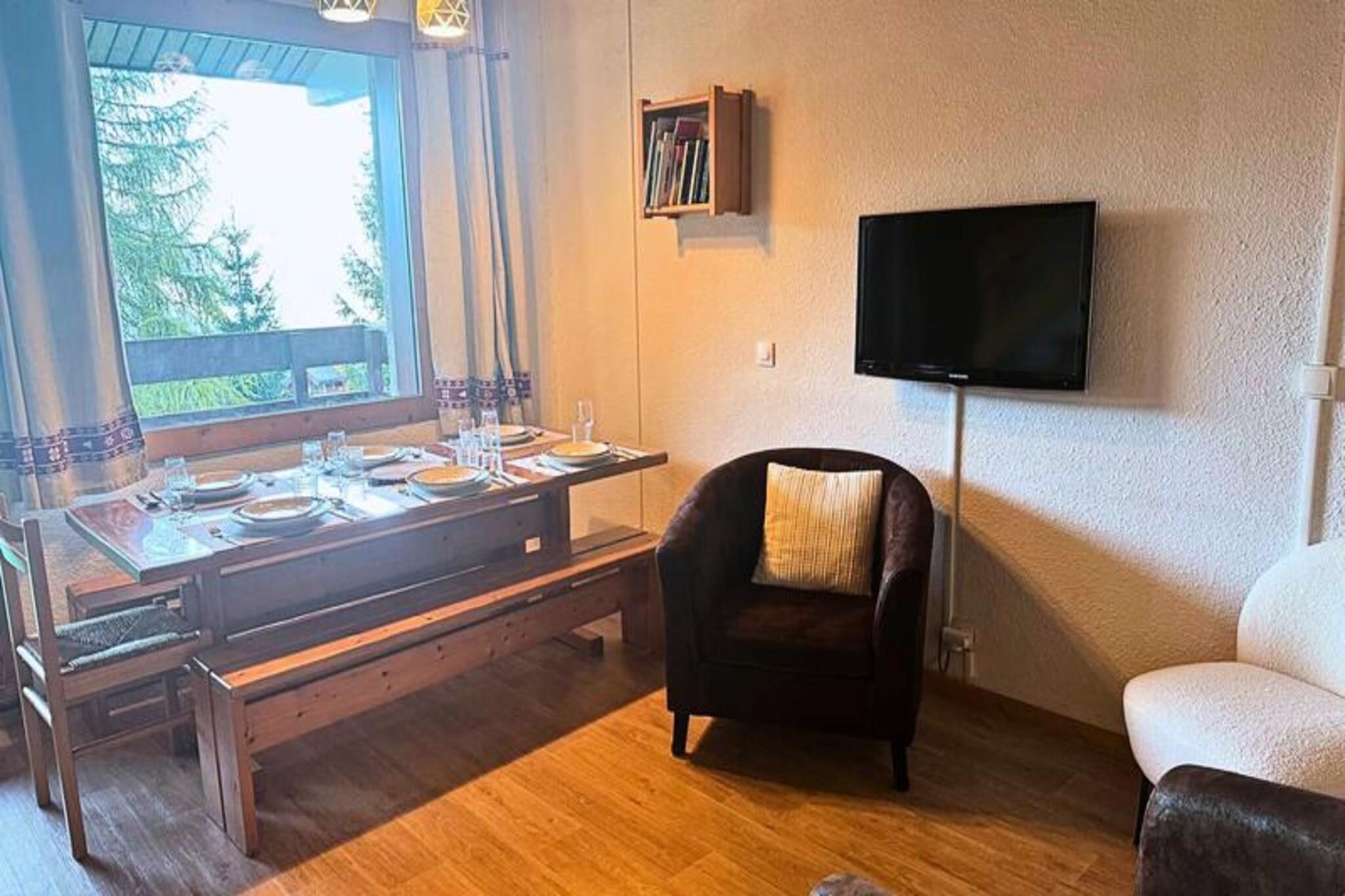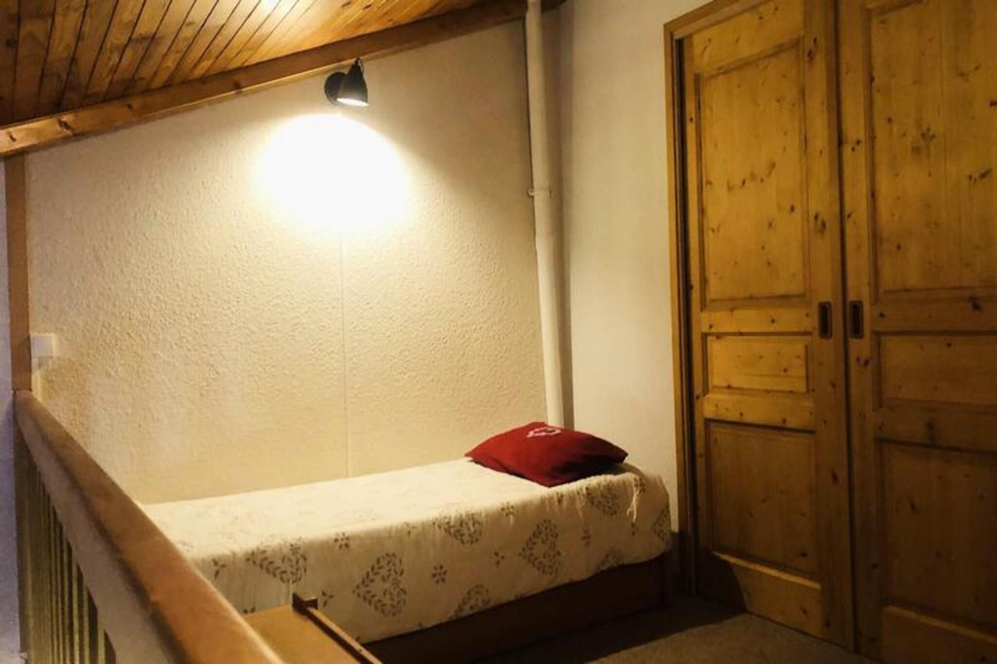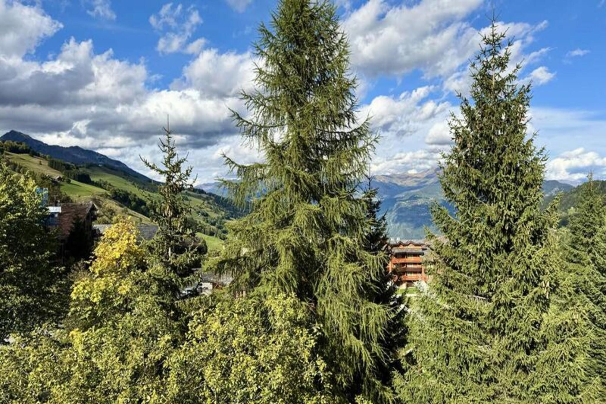 This spacious duplex accommodates up to 8 guests, offering a comfortable stay with 4 rooms and a mezzanine. The first level features a bedroom with 2 bunk beds, a single bed, and a bright living room with a sofa, two armchairs, and a dining area. Upstairs, a mezzanine has a single bed, with two additional bedrooms: one with a double bed (160 cm) and the other, ideal for children, with two single beds. Duvets are provided for all beds, and the apartment includes a TV, baby travel cot, high chair, and board games. Located in the hamlet of La Forêt, the apartment offers ski-on and ski-off access with direct access to the Planchamp cable car. It is just 2 minutes from ESF lessons and 10 minutes from the Piou Piou club. The pedestrian village, with shops and restaurants, is a short walk away, and a toboggan run is nearby, offering family-friendly fun. The fully equipped kitchen includes a refrigerator, Bosch dishwasher, 3-burner ceramic hob, traditional oven, microwave, toaster, kettle, and Nespresso coffee maker. Additional amenities include a washer-dryer, hairdryer, ski locker, and a bathroom with a shower and toilet. A northwest-facing balcony offers scenic valley views, perfect for relaxing after a day on the slopes.