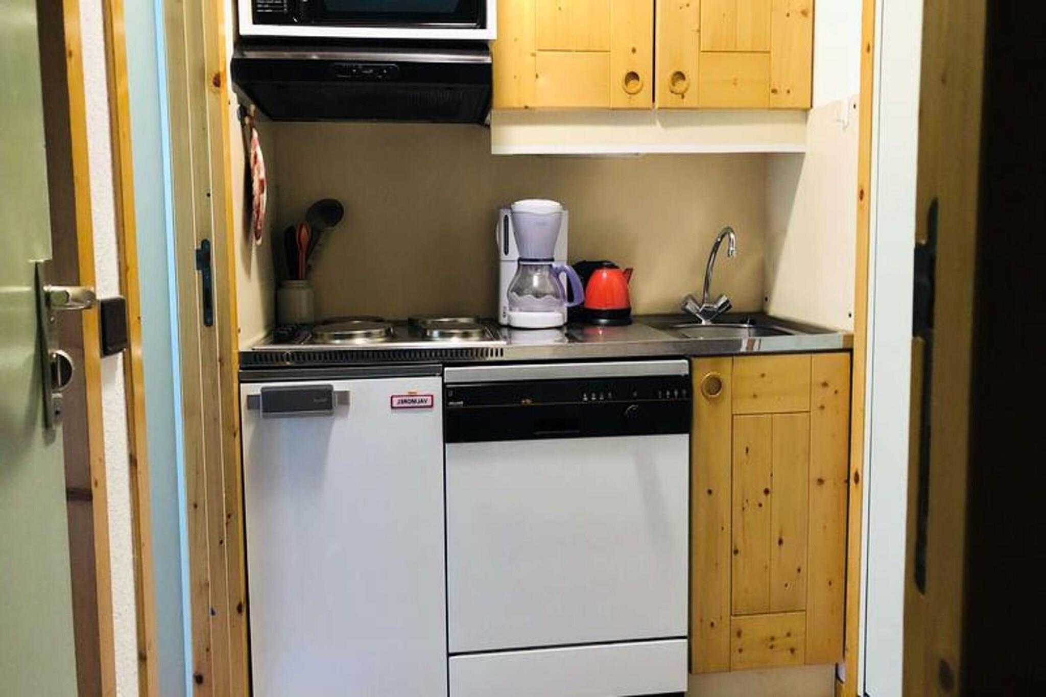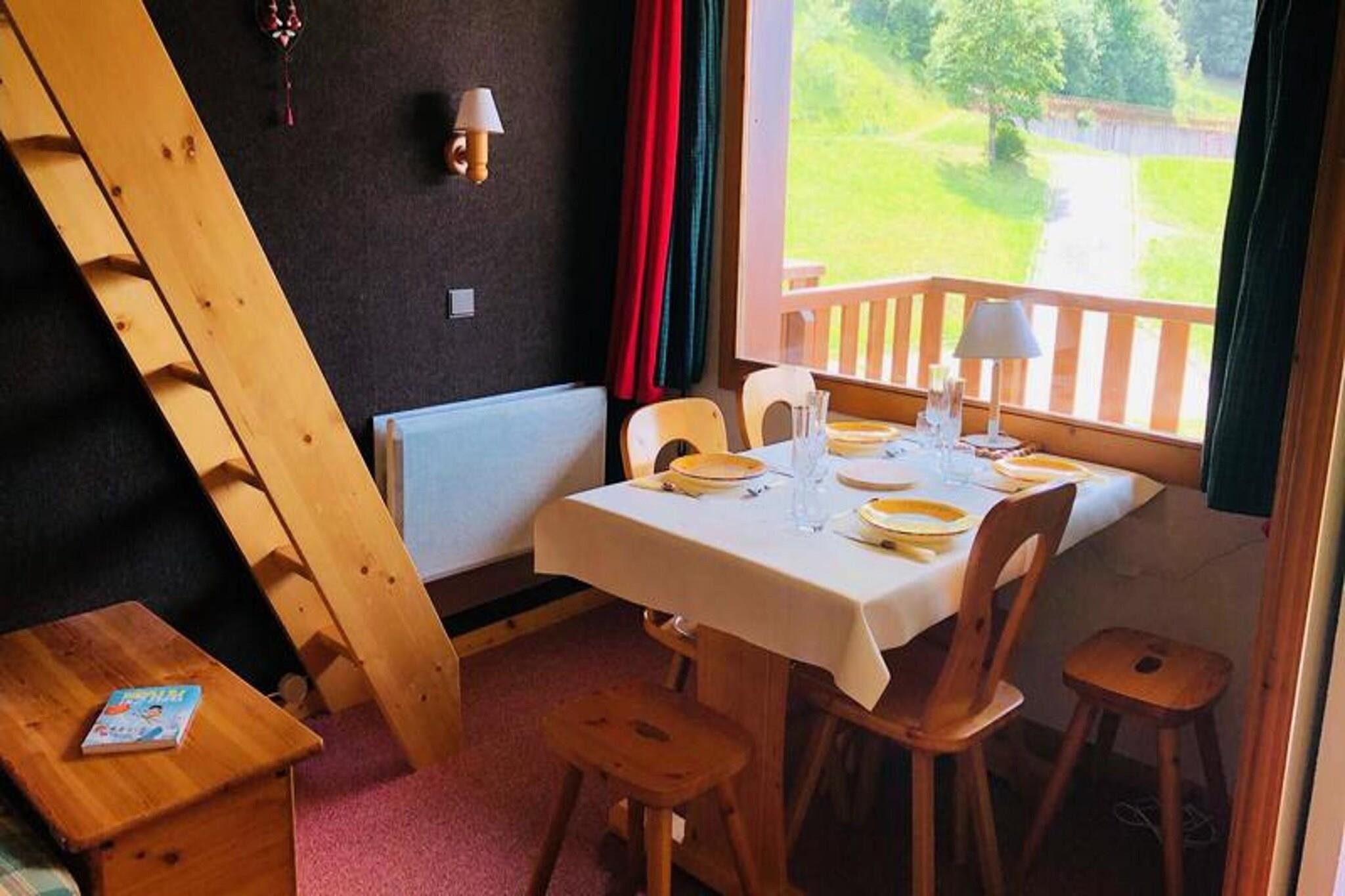 This charming studio is designed to accommodate 4-5 people and features a cozy living area with a convertible sofa and a single bed, as well as a mezzanine with a double bed. All beds are equipped with duvets for a comfortable stay. The apartment is non-smoking, and pets are not allowed. Linen and cleaning services are available for an additional fee, and the tourist tax is not included in the rental price. Located in the peaceful hamlet of Crève-cœur, this apartment offers easy access to the surrounding attractions, with stunning mountain views from the balcony. The residence provides covered parking and elevators for convenience. Guests can enjoy nearby shops, cafes, and markets, as well as the slopes, making it a great base for outdoor activities and exploring the area. The apartment includes a fully equipped kitchen with a fridge, dishwasher, oven, electric hobs, coffee maker, kettle, and toaster, ideal for preparing meals during your stay. The bathroom is well-appointed, and a separate toilet adds extra convenience. Heating is available throughout the apartment to ensure a warm and comfortable atmosphere, and a vacuum cleaner is provided for keeping the space tidy.