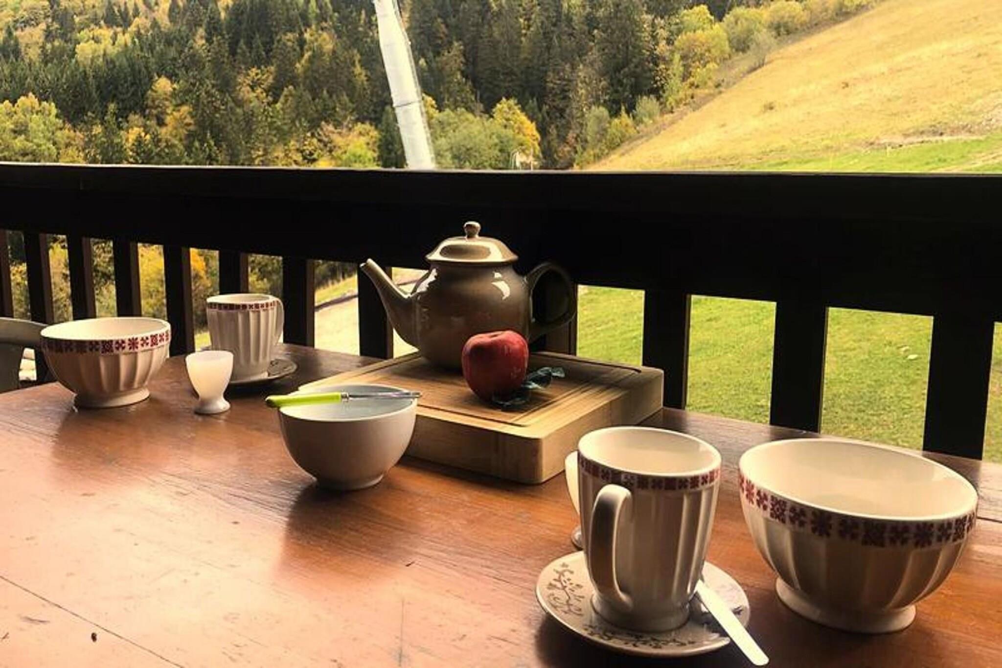 This duplex apartment accommodates up to 6 guests with its well-furnished spaces. The downstairs bedroom has a double bed, while the mezzanine offers a trundle bed with two single beds. The upstairs bedroom features two single beds. All beds come with duvets. The apartment is non-smoking, and pets are not allowed. Linen and cleaning services can be booked for an additional fee, with the tourist tax not included in the rental price. Located in the hamlet of Mottet, the apartment is just 1 minute from the ESF lessons and the slopes, with shops and daycare only 5 minutes away. Guests can enjoy nearby cafes, markets, and other village amenities, perfect for both skiing and leisure activities. The apartment includes a fully equipped kitchenette, a cozy living room, and two bathrooms. The kitchen features a Bosch fridge, dishwasher, oven, microwave, coffee maker, kettle, toaster, and blender. A fondue and raclette machine are also available. The bathroom includes a bathtub and a shower room with a combined toilet, plus a separate toilet. Heating ensures comfort throughout.