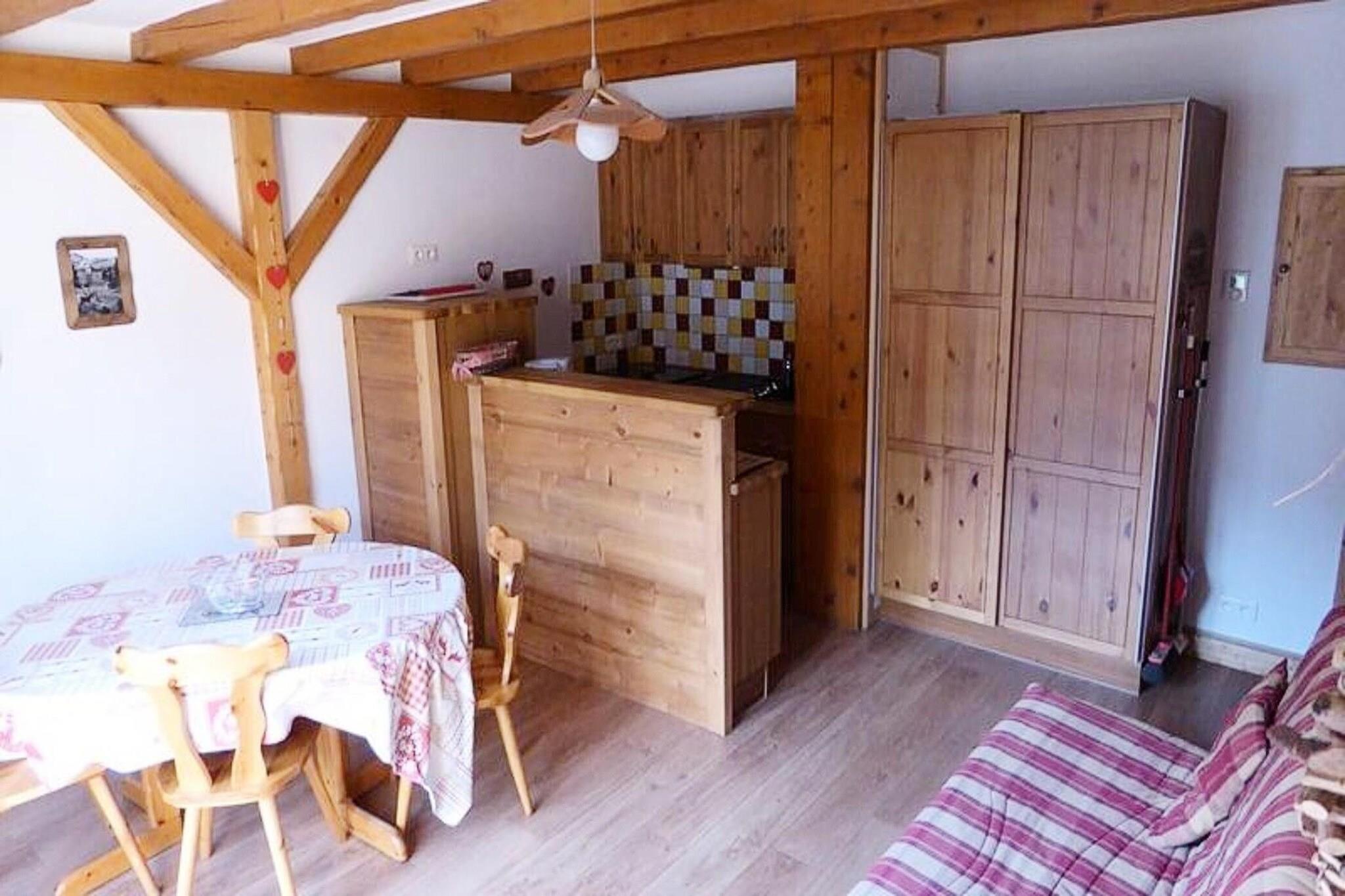 This charming 2-room duplex apartment accommodates up to 5 people. The living room features a convertible sofa bed for two, and the upstairs bedroom is furnished with bunk beds and 2 single beds. The apartment is non-smoking and does not allow pets. Linen and cleaning services are available for an additional fee, and the tourist tax is not included in the rental price. WiFi and an outdoor parking space are provided for your convenience. Located in the hamlet of Fontaine, the apartment is just 15 minutes from ESF lessons, 10 minutes from the Piou Piou club, and within walking distance to shops. Situated at the foot of the slopes, it offers easy access to skiing and other outdoor activities. Nearby cafes and markets provide everything you need to enjoy the local ambiance. The apartment features a fully equipped American kitchen with a fridge, oven, microwave, and dishwasher, along with a 2-burner induction hob. A coffee maker, kettle, toaster, and vacuum cleaner are also provided. The bathroom includes a shower and the toilet is separate. The apartment also boasts a balcony, perfect for enjoying the mountain air. Heating ensures comfort throughout your stay.