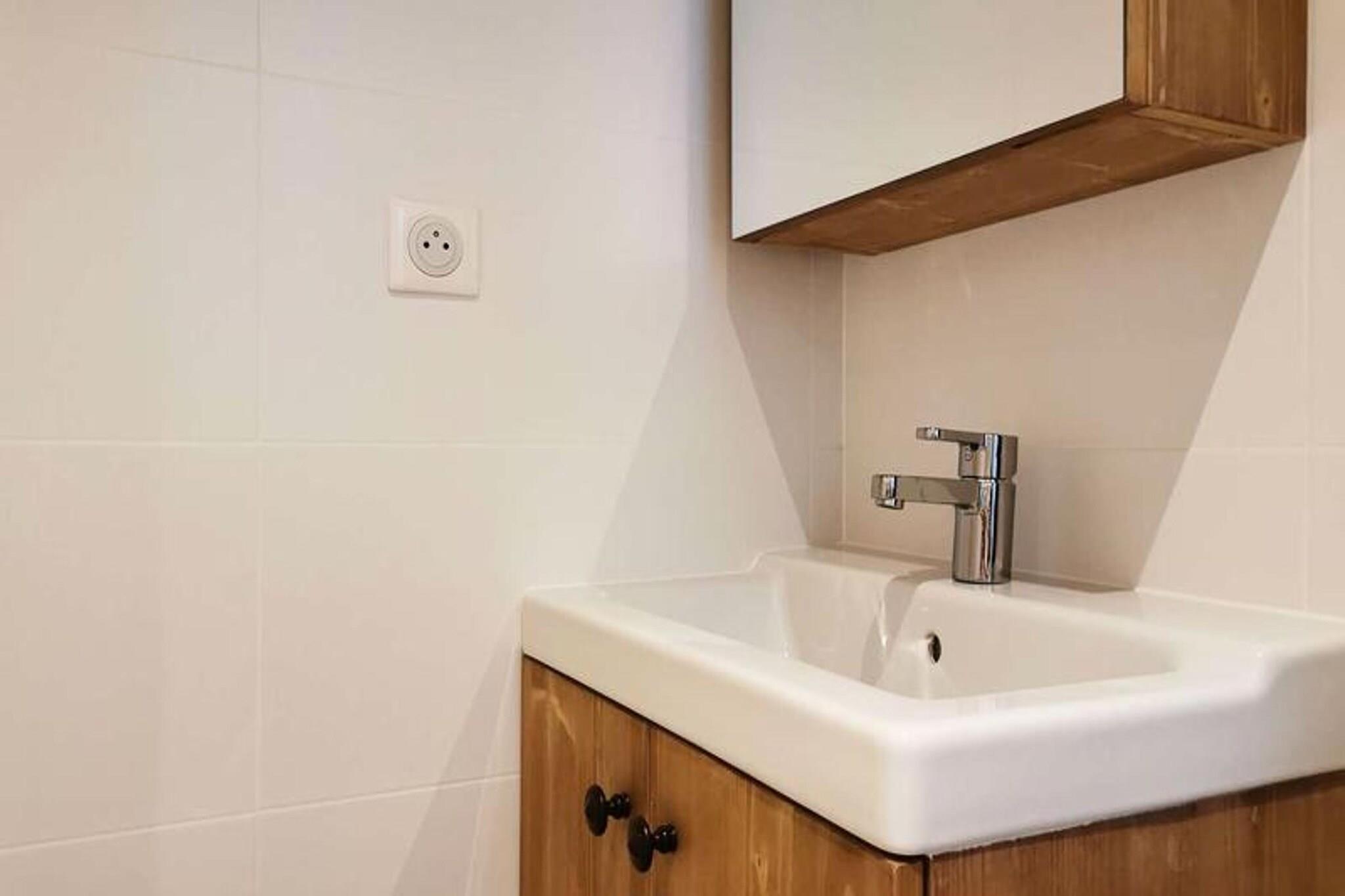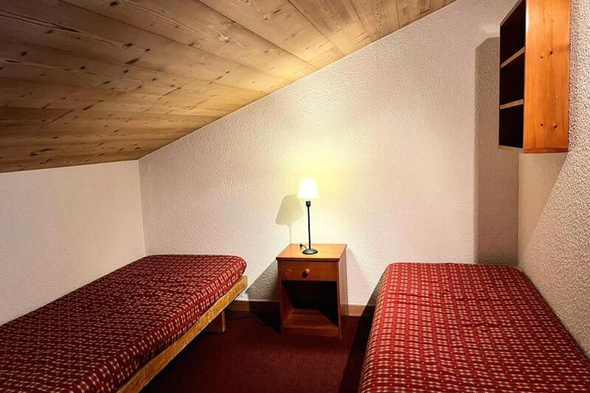 This spacious duplex apartment accommodates up to 8 guests with 3 separate bedrooms, 2 bathrooms, and 2 toilets. The living room features 2 single beds, while the downstairs bedroom offers 2 bunk beds and a trundle bed. Upstairs, one bedroom has 2 single beds, and the other offers 2 bunk beds, 1 trundle bed, and a single bed. Duvets are provided for all beds. The apartment is non-smoking and does not allow pets. Linen and cleaning services are available for an additional fee, and tourist tax is not included in the rental price. Located in the hamlet of La Forêt, the apartment is just a 3-minute walk from the shopping street, providing easy access to local cafes, shops, and restaurants. With its prime location, the apartment is also close to the ski slopes, offering convenient access for outdoor activities and winter sports. The stunning view from the north-facing balcony adds to the charm of the apartment, offering a breathtaking panorama of the valley. The apartment features a well-equipped kitchen with a washing machine, dishwasher, oven, microwave, ceramic hob, coffee maker, toaster, and kettle. The two bathrooms and separate toilets offer added comfort for guests. A ski locker is available for storing equipment, and heating ensures a cozy environment throughout your stay. For entertainment, the apartment includes a TV, and an iron is provided for your convenience.