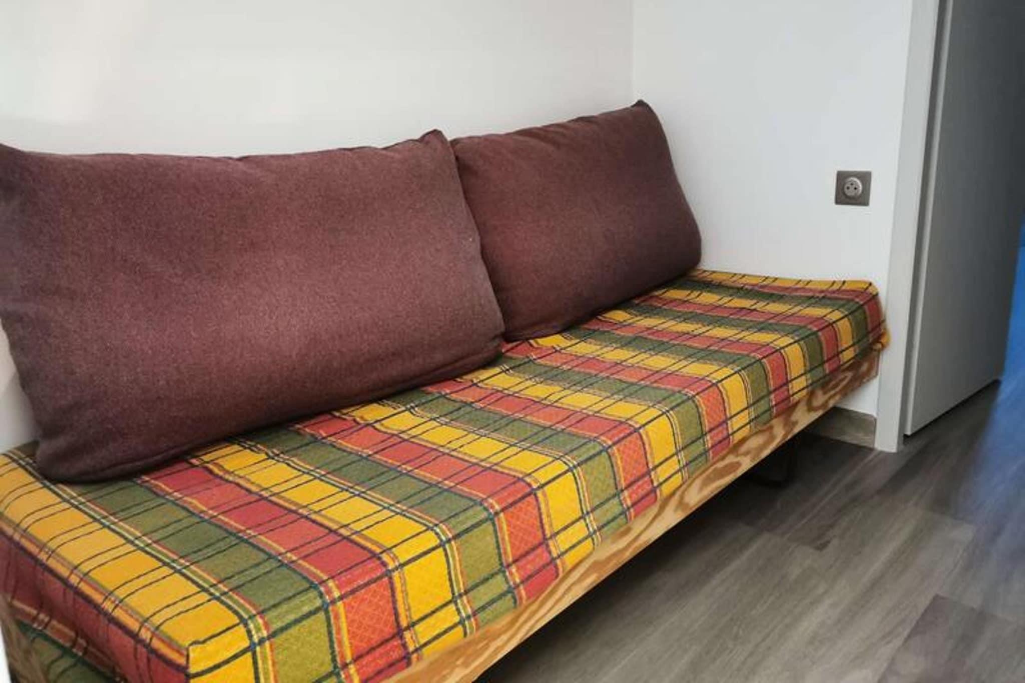 This spacious 4-room apartment is designed to accommodate up to 9 guests, making it ideal for larger families or groups. It offers a large living room with a kitchen, dining area, and lounge area, providing ample space for everyone to relax. The apartment features three bedrooms: two on the second floor (one with two twin beds, the other with three single beds, plus an alcove with a single bed), and a third on the third floor with two twin beds. A convertible sofa in the living room adds extra sleeping space. All beds are equipped with duvets. Pets are not allowed, and the apartment is non-smoking. Linen and cleaning services are available for an additional fee, and the tourist tax is not included in the rental price. Located in the hamlet of Crève-Coeur, the apartment is perfectly situated for those looking to explore the area. Just 5 minutes from the ESF lessons and Piou Piou club, it’s ideal for families with children. It’s also only 2 minutes from the shops and right at the foot of the slopes, making it a great choice for skiers. Local cafes and markets are within easy reach, offering a variety of dining and shopping options. The apartment is equipped with a fully functional kitchen, including a Whirlpool refrigerator and freezer, Vedette Atoll dishwasher, and 3-burner induction hobs. Additional amenities include an LG microwave, Bosch oven, electric coffee maker, kettle, toaster, and blender. For your convenience, there’s also an Electrolux washing machine and a Bosch vacuum cleaner. The apartment has two bathrooms (one with a bathtub and another with a shower) and two separate toilets. Heating is provided for comfort throughout your stay.