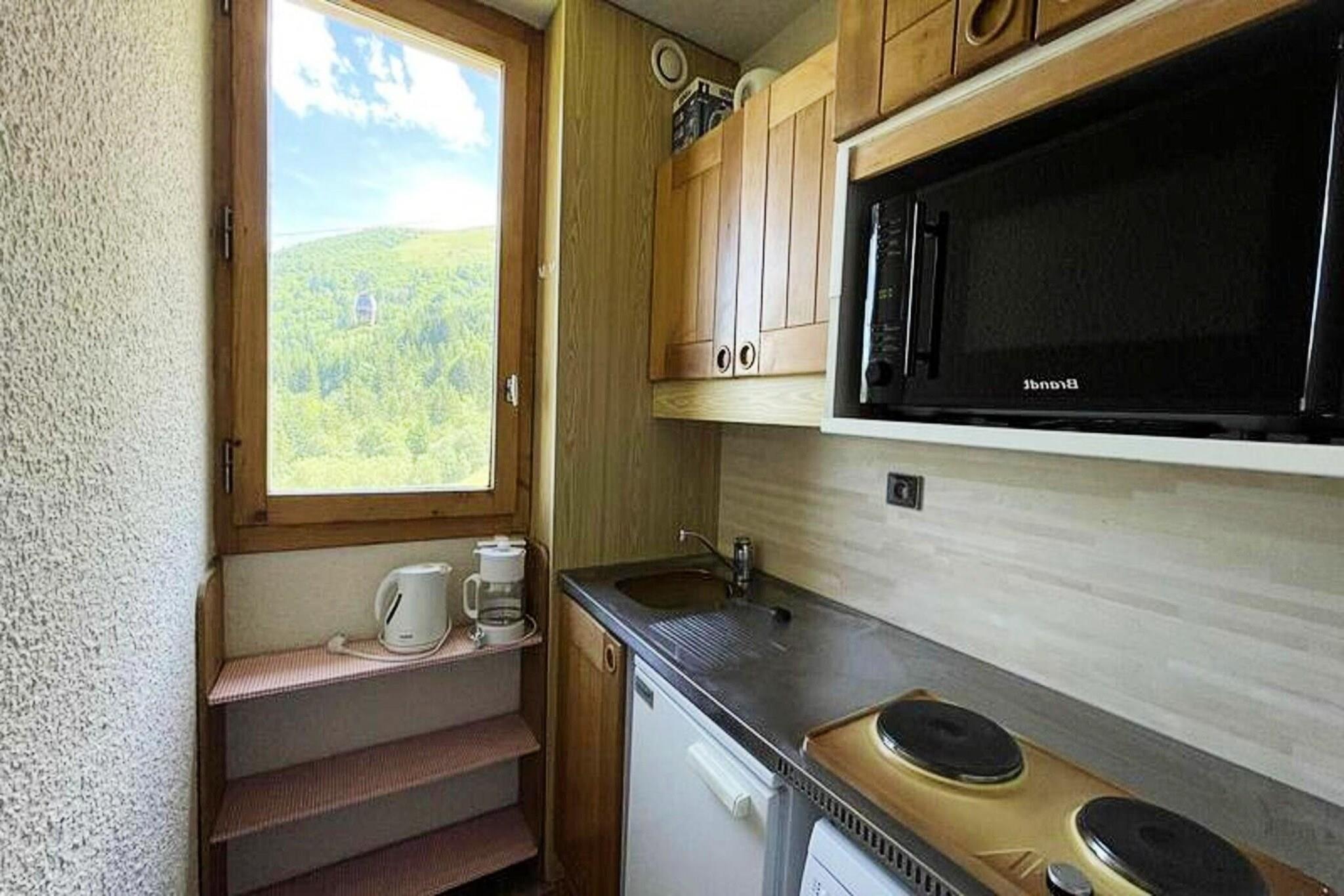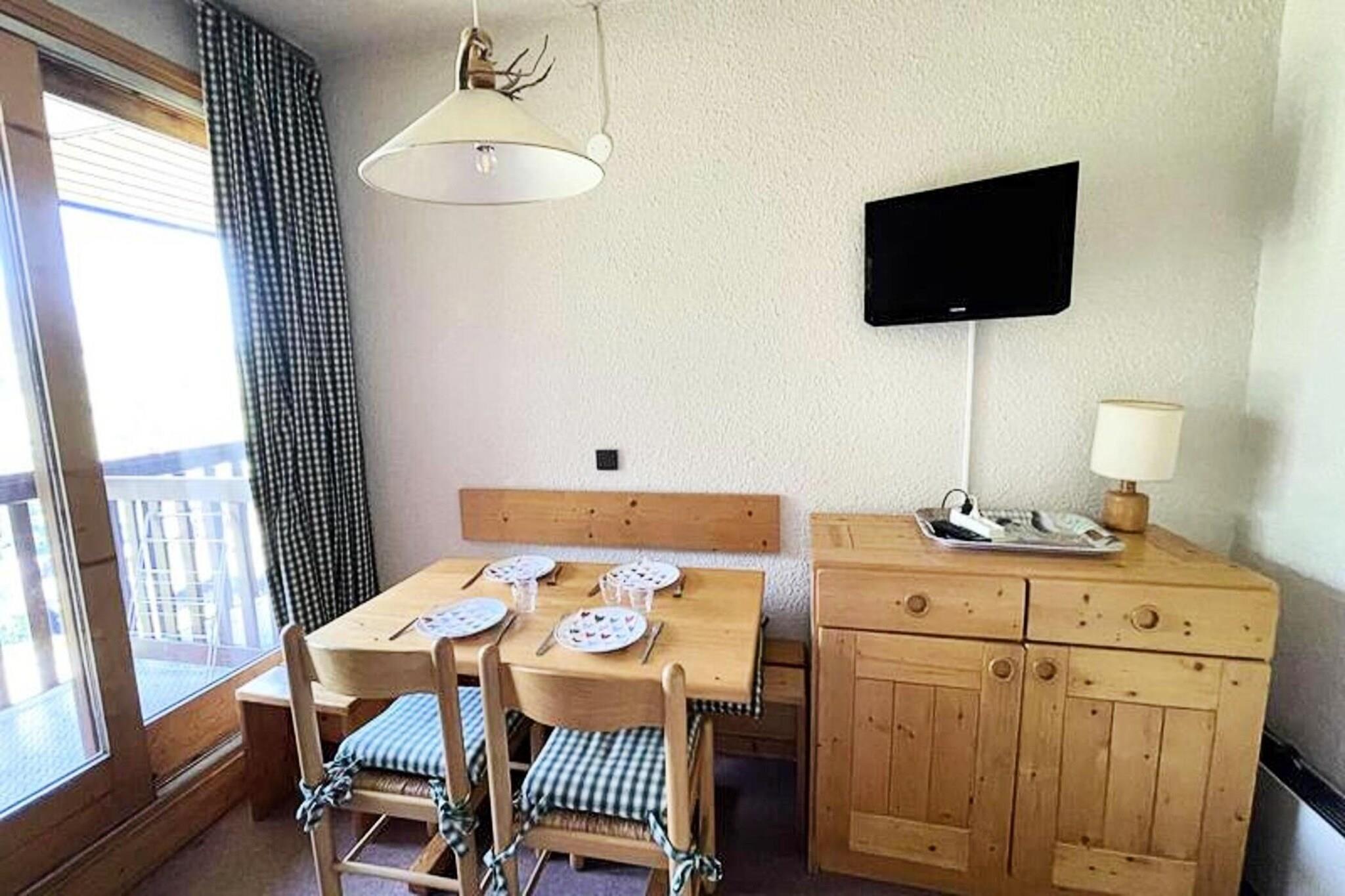 This cozy 2-room apartment is designed to accommodate 4 people. It features a living room with 2 single beds and a bedroom with 2 single beds, all equipped with duvets for your comfort. The apartment is non-smoking, and pets are not allowed. Linen and cleaning services are not included but can be arranged for an additional fee. Tourist tax is not part of the rental price, and the property offers a TV for entertainment during your stay. Located in the hamlet of Mottet, this apartment is just 1 minute from the ESF lessons and 5 minutes from the Piou Piou club and local shops. Being at the foot of the slopes, it provides easy access to skiing and snowboarding activities. The area is perfect for those who want to explore the outdoors or visit nearby cafes and markets to experience the local culture. The apartment is equipped with a kitchenette, making meal preparation convenient. It also includes a shower room, a separate toilet, and a balcony to enjoy the views. In the kitchen, you will find a Bosch dishwasher, Whirlpool fridge, microwave, mini oven, 2 electric hotplates, and other appliances like a kettle, toaster, and coffee maker. A raclette machine for 8 people adds a touch of fun for family or group meals. The apartment also includes a vacuum cleaner and heating for your comfort.