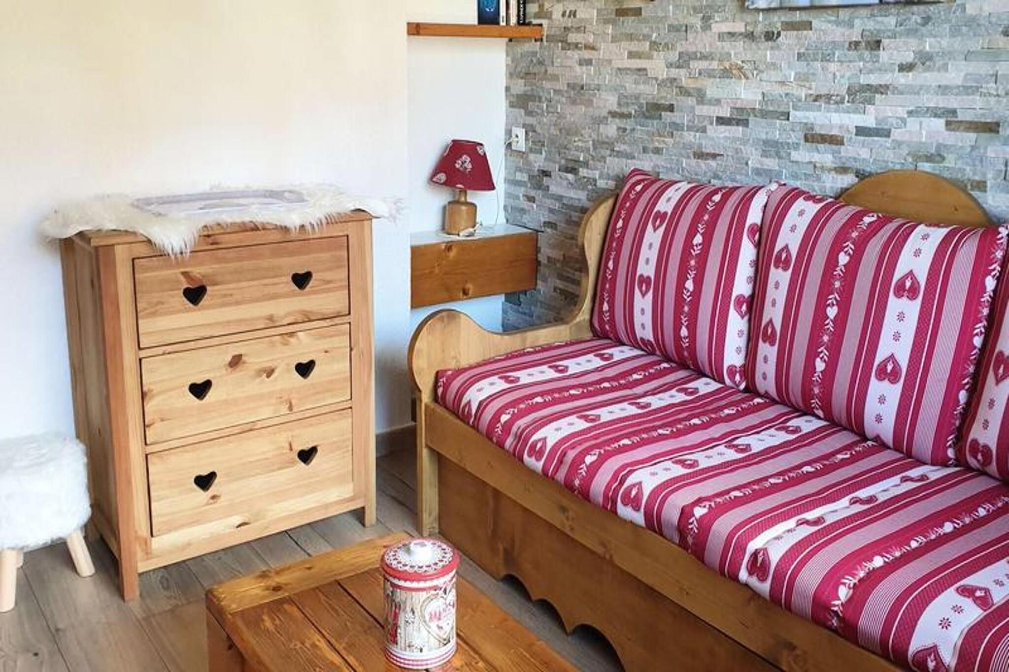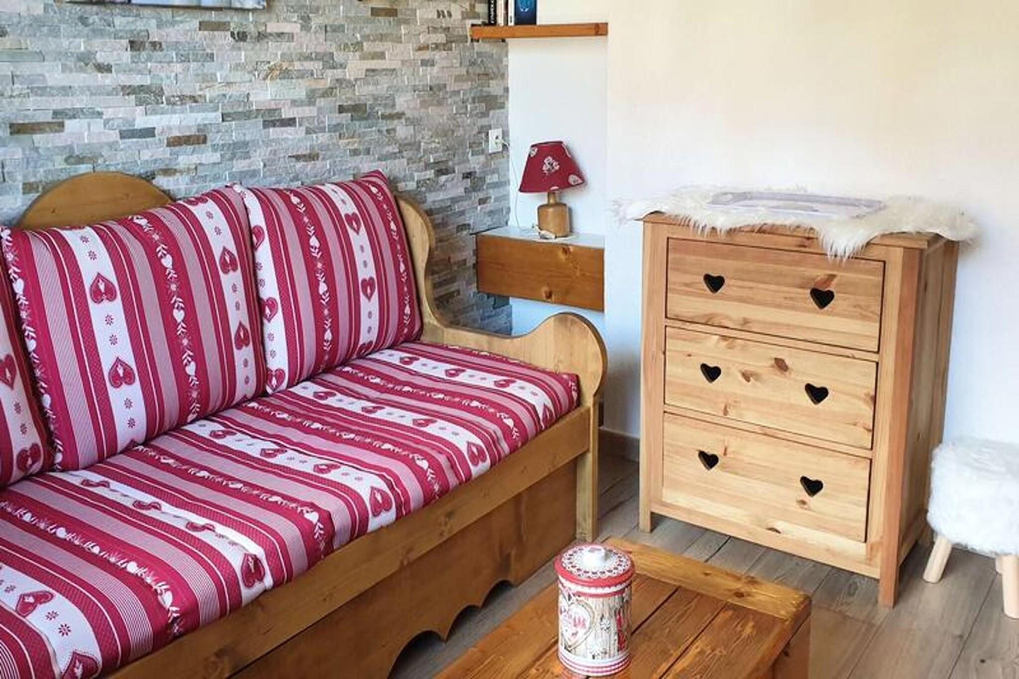 This cozy studio apartment is designed to accommodate up to 4 people, with a divisible living area featuring two single beds and a sofa bed with a pull-out bed. All beds are equipped with duvets for added comfort. The apartment is pet-friendly under specific conditions, with a supplement, and is non-smoking. A TV is available for entertainment. The apartment is perfect for small families or groups looking for a convenient, well-equipped base for their stay. Located in the hamlet of Crève Cœur, the apartment is just a short 10-minute walk to the ESF lessons, Piou Piou club, and shops, and only 2 minutes from the slopes. Its proximity to local cafes and markets makes it ideal for those looking to explore the area and enjoy local delicacies. Whether you’re hitting the slopes or strolling through the village, this location offers easy access to everything you need. The apartment includes a kitchenette, fully equipped for your convenience, with a fridge, dishwasher, ceramic hobs, and both an electric coffee maker and a Dolce Gusto machine. The bathroom is complemented by a separate toilet. A balcony with a table and chairs offers a great space to relax and take in the views. Additional amenities include a Bosch vacuum cleaner, toaster, kettle, and appliances such as a fondue and raclette machine.