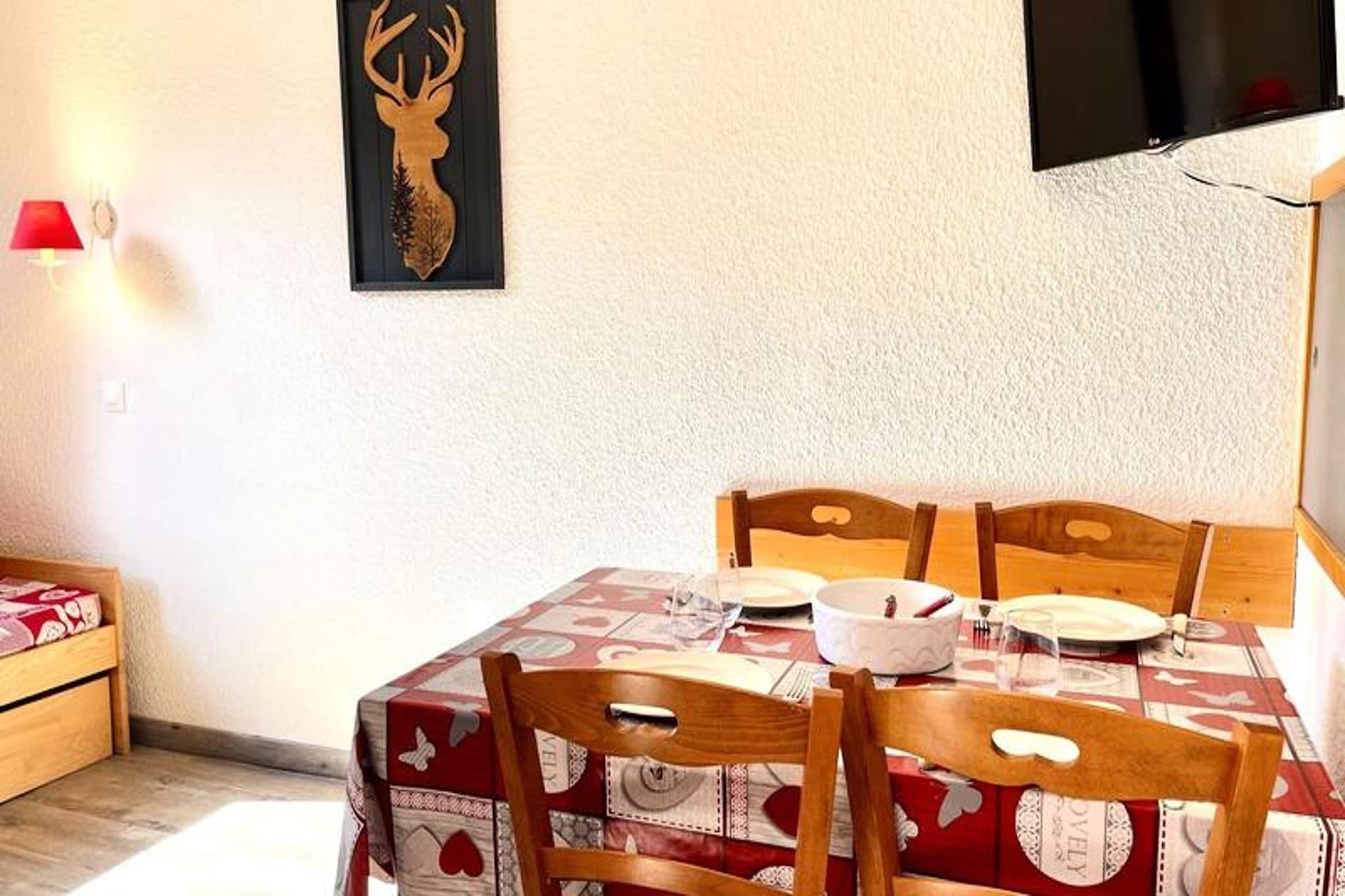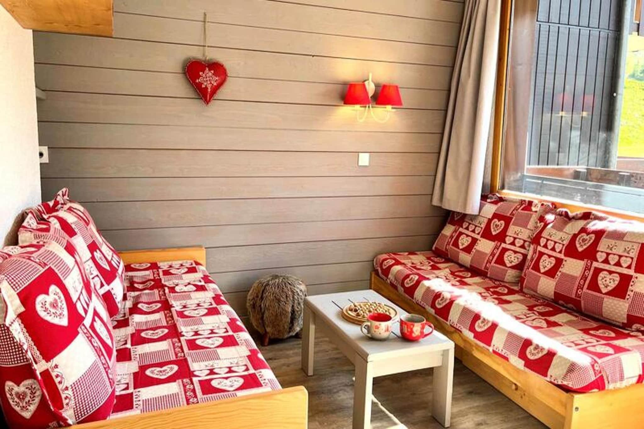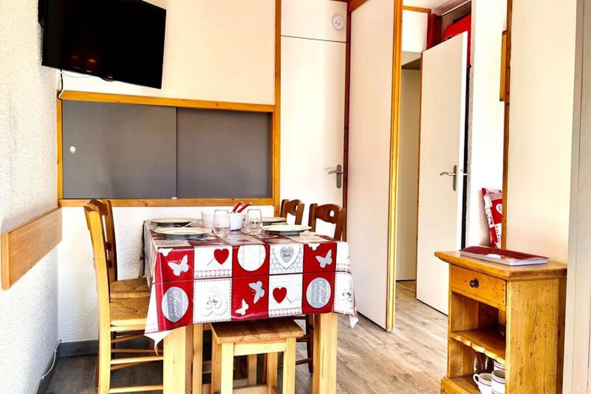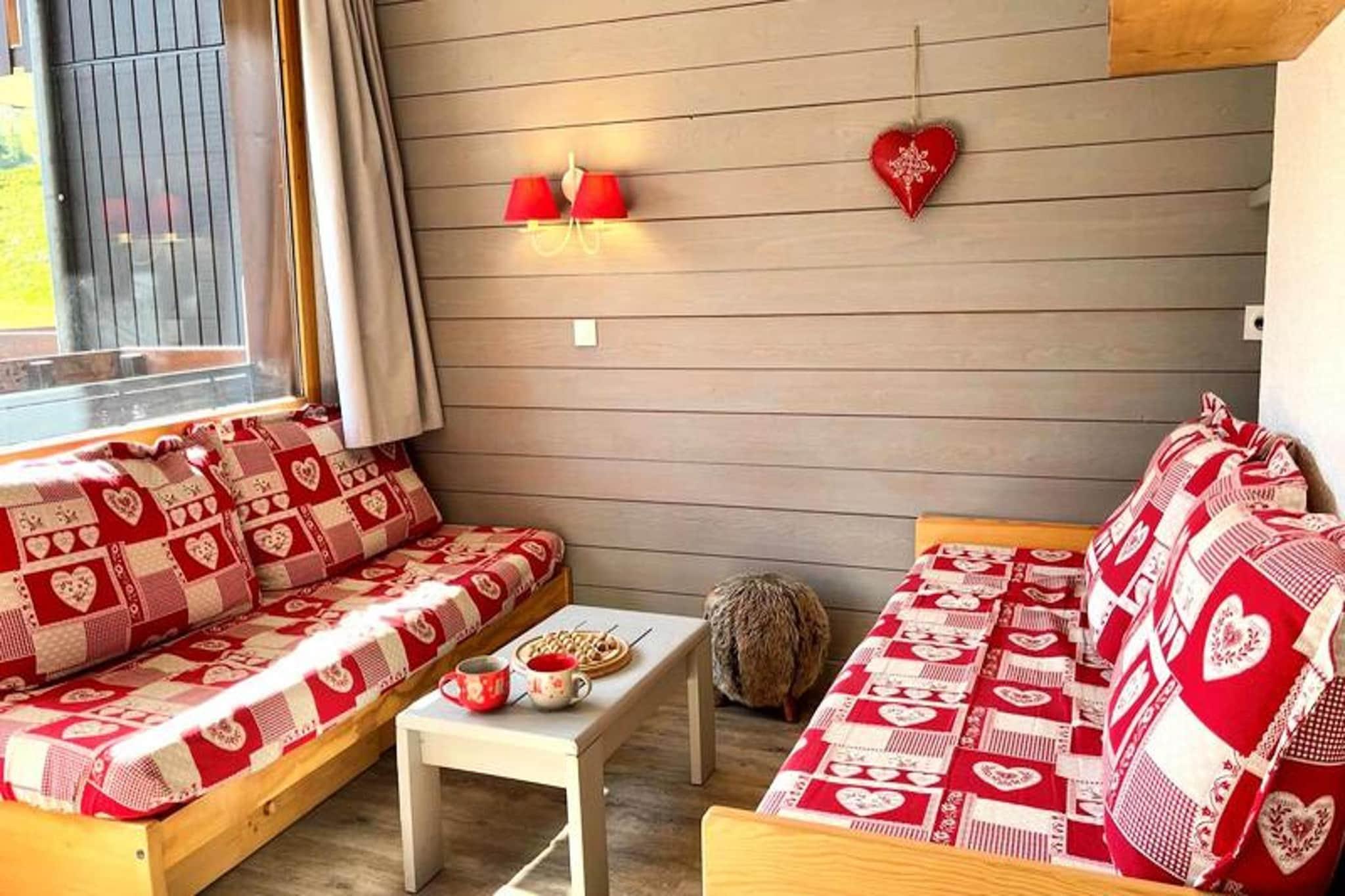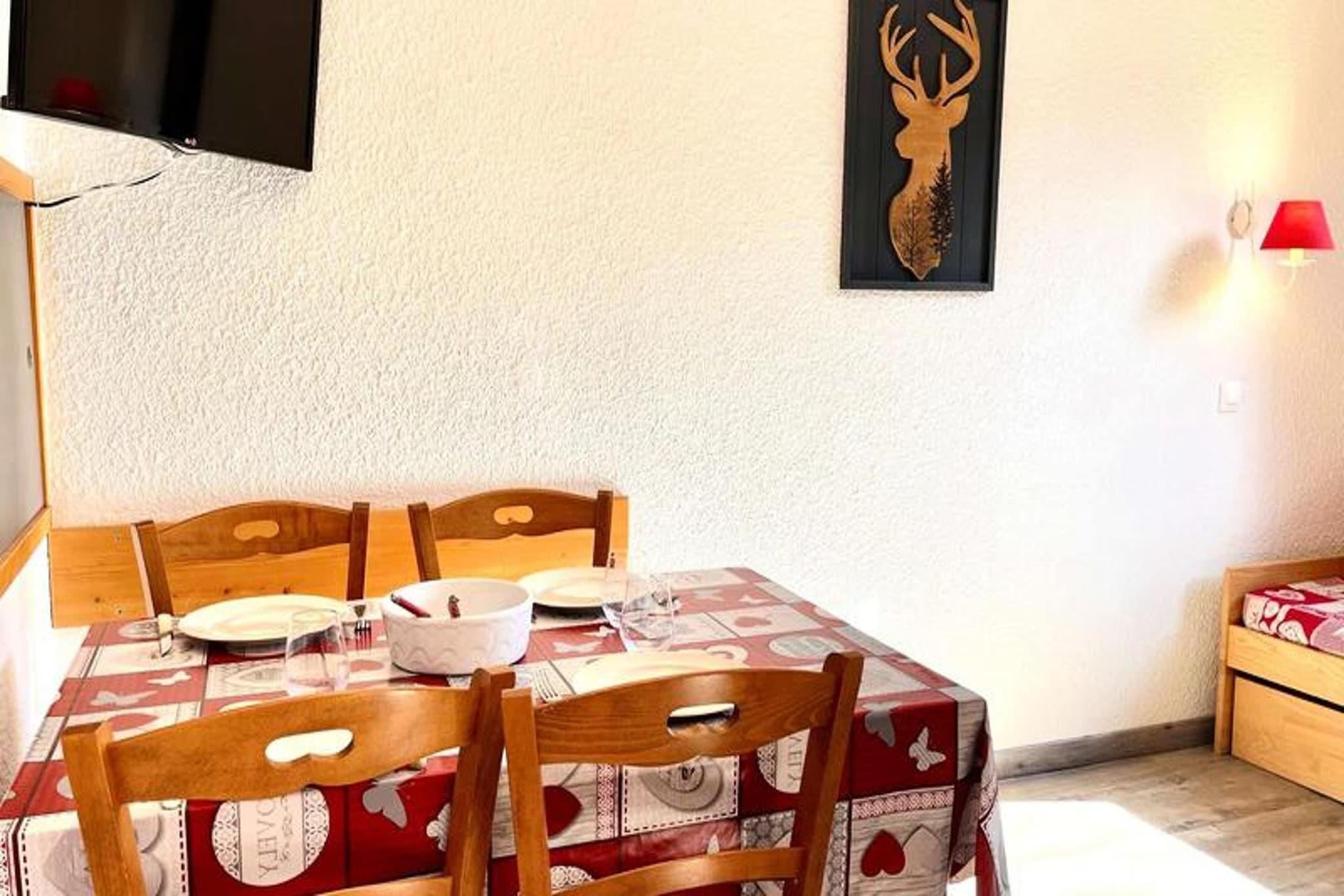 This cozy divisible studio apartment is designed to accommodate up to 4 people. The living area features 4 benches with pull-out beds, all equipped with duvets for added comfort. The apartment is non-smoking and does not allow pets. It offers a TV for entertainment and is ideal for small families or groups. Linen and cleaning are available upon request for an additional fee, and the tourist tax is not included in the rental price. Located in the hamlet of Crève Cœur, the apartment is just 5 minutes from the ESF lessons and the Piou Piou club, and only 3 minutes from the local shops. It is situated right at the foot of the slopes, making it a perfect base for skiers and snowboarders. The area also offers nearby cafes and markets where guests can enjoy local food and shop for essentials. The studio is equipped with a separate kitchenette, including 2 induction hobs, a microwave, a Senseo coffee maker, a kettle, and a toaster. A dishwasher and a combined washing machine and dryer are also provided for your convenience. The bathroom is complemented by a separate toilet. The apartment also features a balcony with a table and 4 chairs, perfect for enjoying a meal outdoors. Appliances like a fondue/raclette machine and a croque monsieur maker are available to enhance your stay.