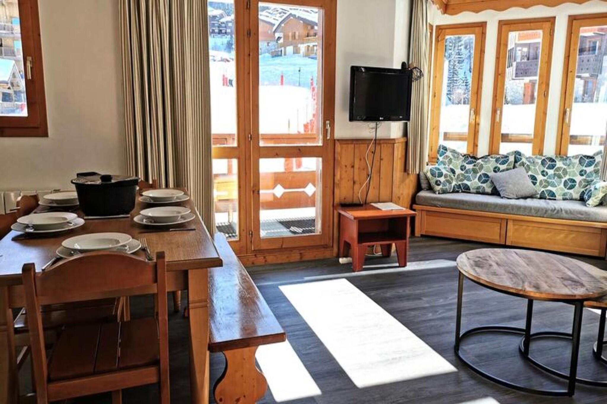 This 3-room apartment accommodates up to 7 people, ideal for families or groups. The living room features a bench seat, trundle bed, and a single bed, while the two bedrooms have two single beds in one room and a double bed in the other. All beds come with duvets. The apartment includes two bathrooms (one with a bathtub and another with a shower), and two toilets, one independent. It is a non-smoking property, and pets are allowed with conditions for an additional fee. Linen and cleaning services are available at an extra cost. Located in the hamlet of La Forêt, the apartment is just 5 minutes from the ESF course departures and the Piou Piou club, perfect for families. The resort center and shops are 3 minutes away, and the slopes are only 2 minutes from the apartment, providing excellent access for skiers. The balcony offers a refreshing mountain view. The apartment includes an open kitchen with a fridge, dishwasher, oven, microwave, coffee maker, kettle, toaster, and blender. A Samsung Veloce vacuum cleaner is also available. After a day on the slopes, unwind in the two bathrooms. The apartment is accessible by elevator from the Teppes P1 covered car park and features heating for your comfort throughout your stay.
