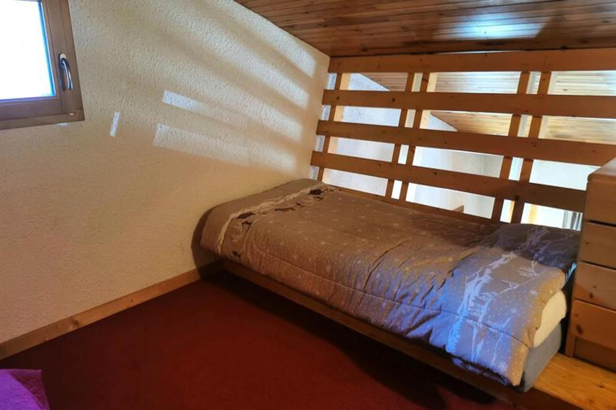 This duplex apartment, with a real surface area of 47 m², is designed to accommodate 6 people. It features a bedroom with a single bed and bunk beds, while the mezzanine includes a double bed and a single bed, all furnished with duvets. The apartment is non-smoking, pets are allowed under certain conditions for an additional fee, and linen and cleaning can be arranged for an extra cost. The tourist tax is not included in the rental price, and the apartment is equipped with a TV and heating. Situated in the hamlet of Bourg Morel, this apartment offers excellent access to local amenities. It is just 5 minutes from the ESF lessons, 1 minute from the Piou Piou club, and 3 minutes from the slopes. The apartment is also located at the foot of the shops, making it a convenient base for visitors. Nearby cafes, markets, and attractions ensure that everything you need is within easy reach. The apartment features a kitchenette open to the living room, equipped with a Zanussi fridge, a combined MO/Grill oven, Scholtès 3-burner electric hob, and a Whirlpool 6th sense dishwasher. Additional amenities include an electric coffee maker, Nespresso machine, kettle, toaster, and a raclette machine for 8 people. The apartment also includes a bathroom, a separate toilet, and a balcony.