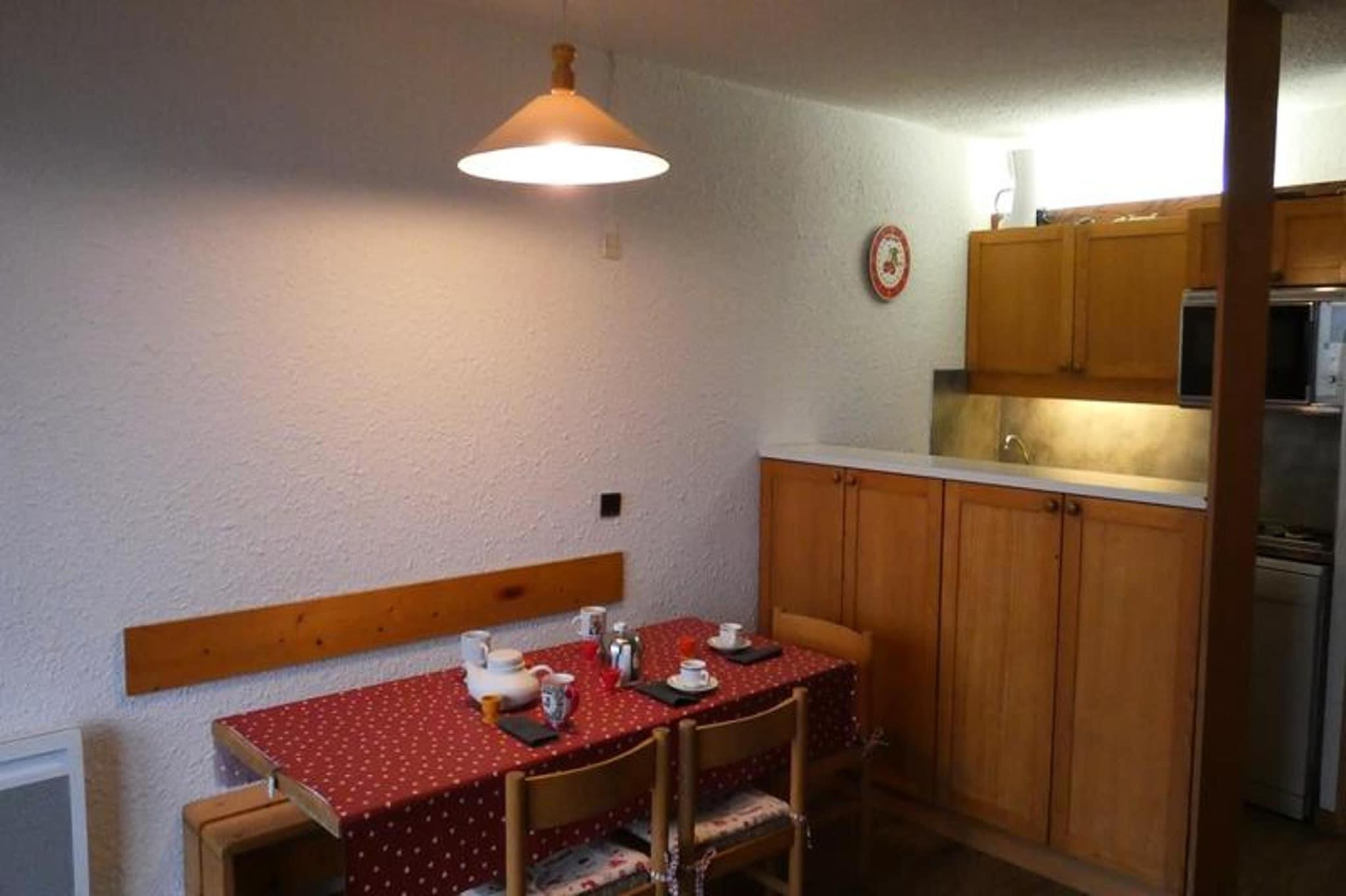 This 2-room apartment, classified as 3 stars, is designed to accommodate up to 5 people, making it a perfect choice for small families or groups. The living room features a bench seat and a pull-out bed, while the bedroom is equipped with bunk beds and an additional pull-out bed. All beds come with duvets for added comfort. The apartment is non-smoking and does not allow pets. Linen and cleaning services are not included, but can be arranged for an additional fee. The apartment also includes a TV and heating to ensure a cozy stay. Ideally located in the hamlet of Crève Coeur, the apartment is just a 5-minute walk from the ESF lessons, the Piou Piou club, and the pedestrian street. The shops of Crève Coeur are also nearby, offering easy access to everything you might need during your stay. The slopes are just a stone’s throw away, making it convenient for guests to hit the slopes in no time. Local cafes and markets are within easy reach, providing an excellent variety of refreshments and essentials. The apartment boasts a fully equipped kitchen with electric hobs, a traditional oven, a fridge, and a dishwasher for added convenience. It also features a coffee maker, kettle, and blender, perfect for preparing meals or enjoying drinks in the comfort of your space. The bathroom is fitted with all necessary amenities, while the separate toilet ensures privacy and convenience. A raclette machine is also available, ideal for cozy meals during your stay.