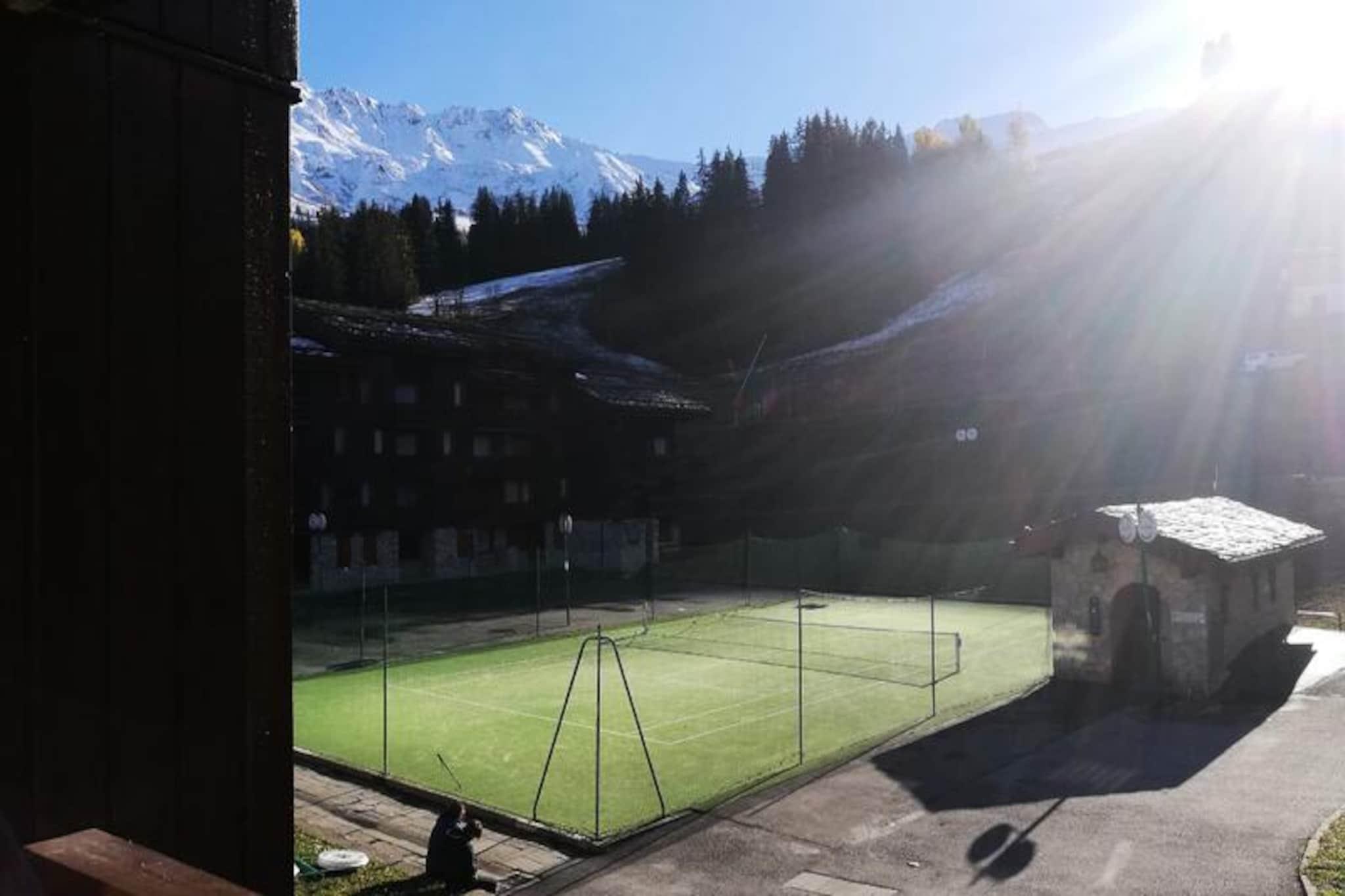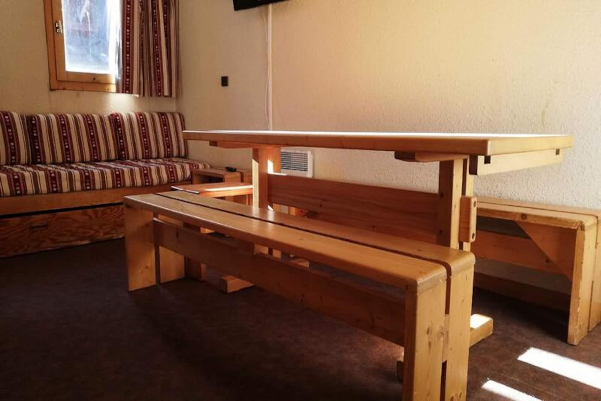 Beliggende i det fredfyldte Mottet-område i Valmorel, tilbyder dette charmerende studie en idyllisk alpin tilflugtssted for både skientusiaster og familier. Med pisterne og den franske skiskole kun få skridt væk, kan du starte din dag med at glide gennem uberørt sne uden besværet med lange pendlerture. Den gågadebegrænsede landsby sikrer en fredelig atmosfære, mens den sydvendte balkon tilbyder en betagende udsigt over de omkringliggende bjerge, der inviterer dig til at nyde roen i de franske alper. Uanset om du er her for vintersport eller sommervandreture, er denne beliggenhed perfekt til at fordybe dig i naturens skønhed. \n\nStudioet er omhyggeligt designet til at rumme op til tre gæster og har en funktionel skillevæg for ekstra privatliv. Det fuldt udstyrede køkken inkluderer opvaskemaskine, mikrobølgeovn, elektrisk komfur, køleskab og kaffemaskine, hvilket gør det nemt at tilberede måltider efter en dag med eventyr. Komfortable sovepladser med tre enkeltsofaer sikrer afslappende nætter, mens badeværelset med badekar og separat toilet gør dit ophold mere bekvemt. Selvom Wi-Fi ikke er inkluderet, kompenserer lejlighedens hyggelige atmosfære og fantastiske udsigt mere end rigeligt og skaber et sandt tilflugtssted fra hverdagens travlhed. Kæledyr er velkomne mod et mindre gebyr, hvilket gør det til et godt valg for dyreelskere. \n\nBeliggende kun 200 meter fra butikker, der er tilgængelige via Télèbourg-jernbanen, finder du alt, hvad du behøver, inden for rækkevidde. Den underjordiske parkeringsmulighed anbefales kraftigt til dem, der ankommer i bil. Om sommeren forvandles Valmorel til et paradis for vandrere og naturelskere med stier, der snor sig gennem frodige landskaber og tilbyder panoramaudsigt over Tarentaise-dalen. Uanset om du søger spændende skiløjper eller fredelige bjergture, er dette studie din port til uforglemmelige alpine oplevelser.