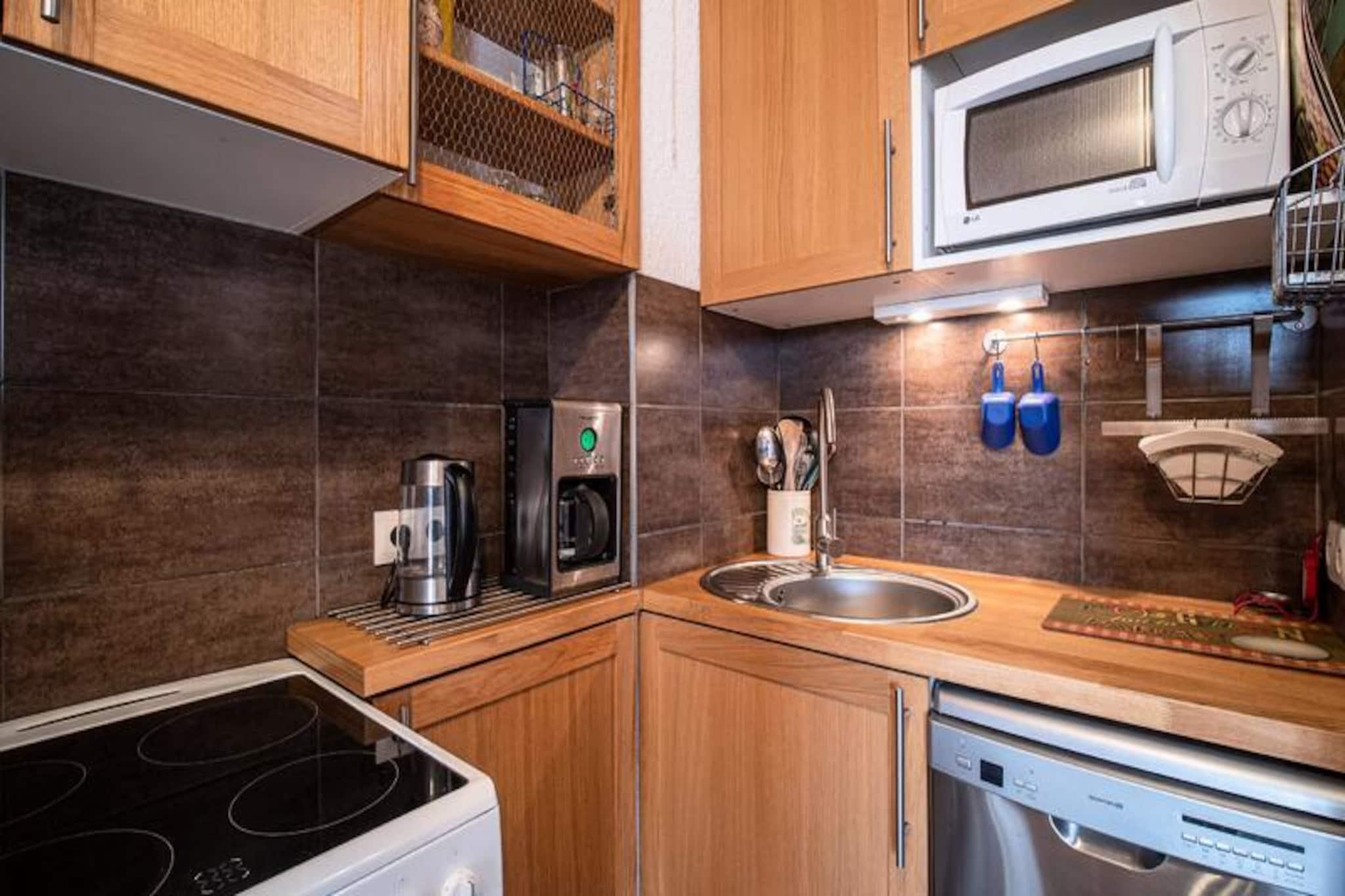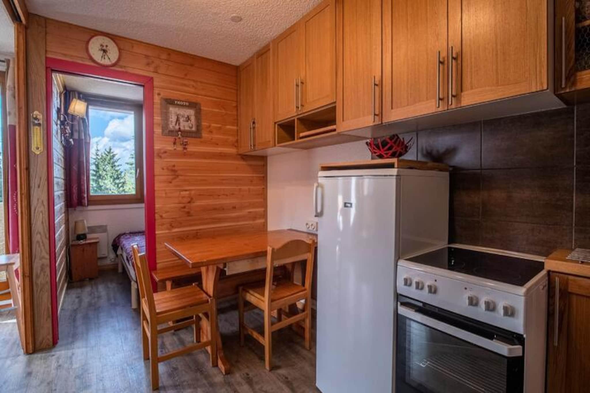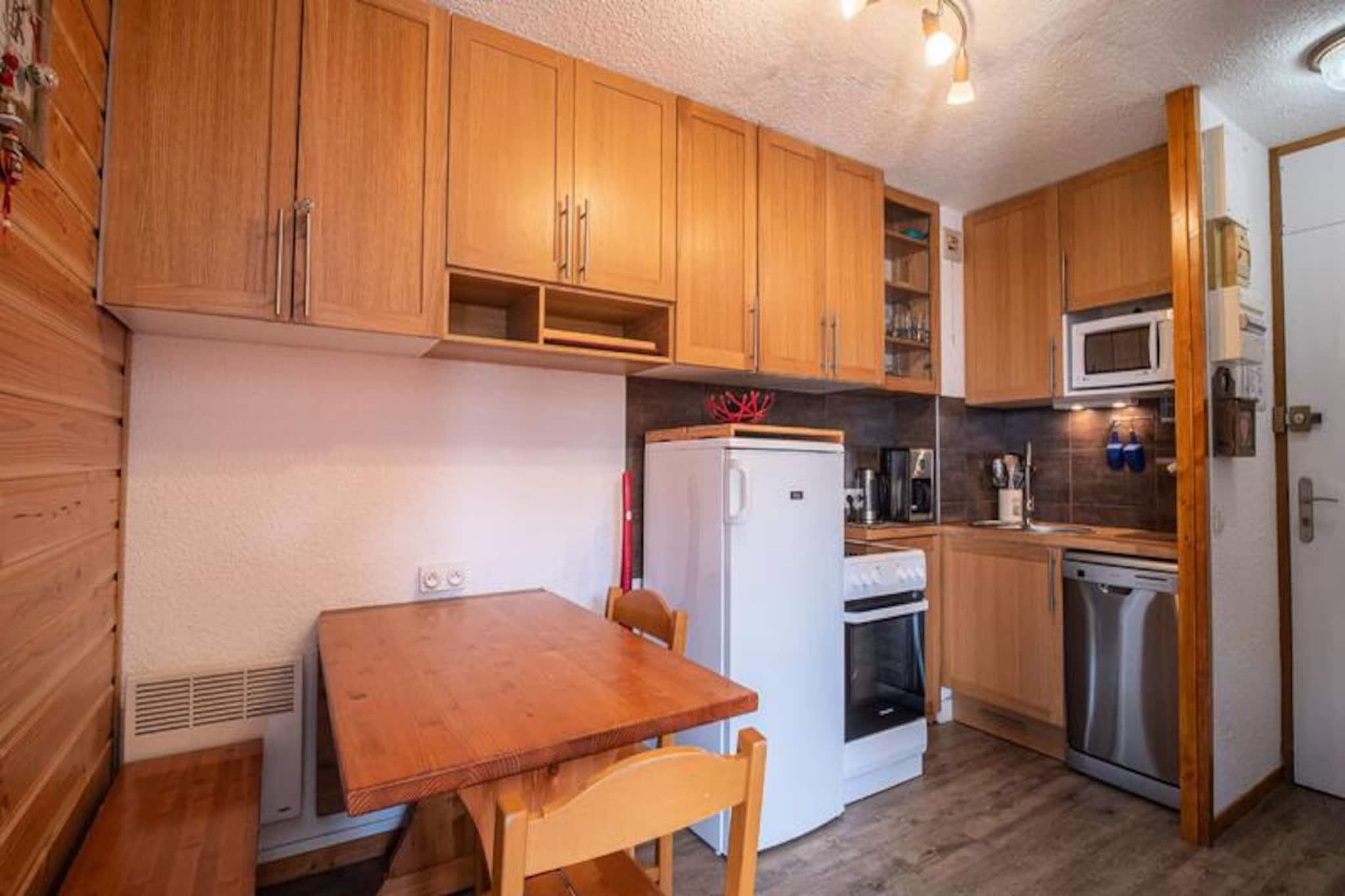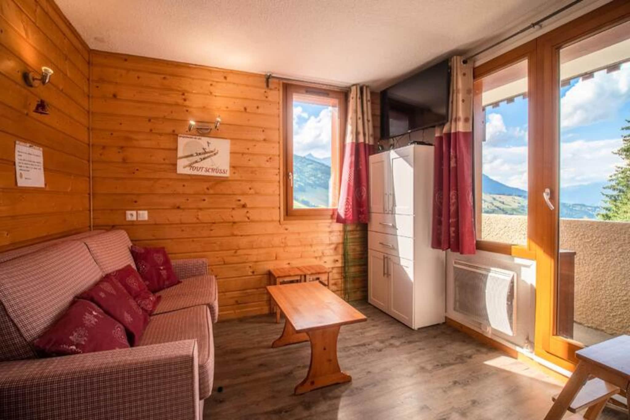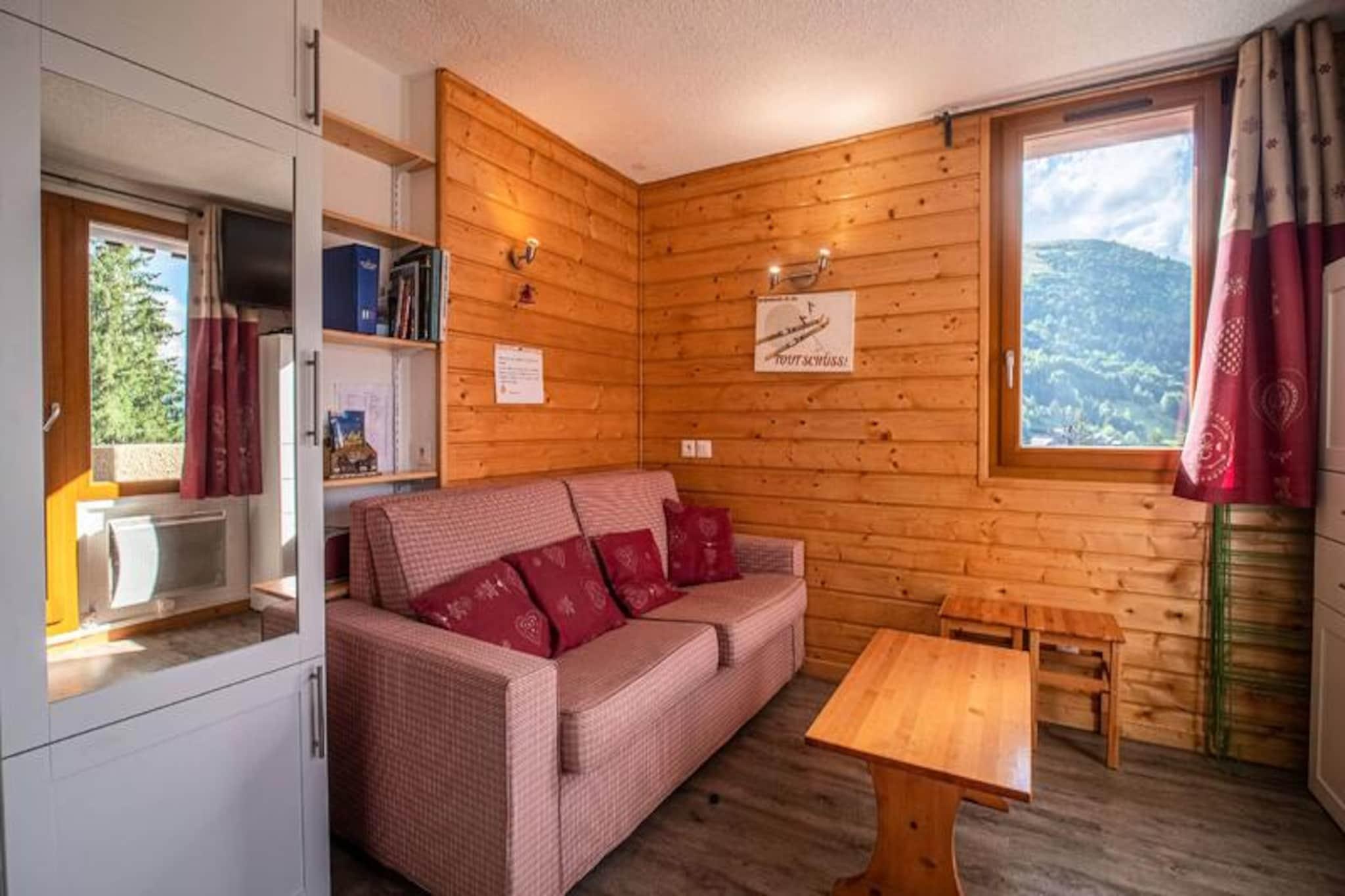 I hjertet af den maleriske landsby Crève Coeur i Valmorel tilbyder denne charmerende toværelses lejlighed et hyggeligt alpint tilflugtssted med uovertruffen bekvemmelighed. Forestil dig at træde ud af din dør og finde skiløjperne kun få meter væk, med butikker og essentielle faciliteter lige i nærheden. Den sydvestvendte balkon tilbyder en fantastisk, uhindret udsigt over de omkringliggende bjerge, hvilket gør det til det perfekte sted at slappe af efter en dag med eventyr i de franske alper. Uanset om du er her for spændingen ved skiløb eller roen i bjerglivet, placerer denne lejlighed dig i centrum af det hele. \n\nIndvendigt er lejligheden omhyggeligt designet til komfort og funktionalitet. Køkkenet, der åbner ud til stuen, er udstyret med moderne apparater, herunder keramiske kogeplader, opvaskemaskine, ovn og køleskab, hvilket sikrer, at det er en leg at tilberede måltider. Stuen har en komfortabel Rapido sovesofa og et fjernsyn, hvilket skaber et indbydende rum at slappe af. En sovealkove med en dobbeltseng tilbyder et fredeligt tilflugtssted, mens det separate brusebad og toilet øger bekvemmeligheden. Lejligheden har også et skirum til dit udstyr og adgang til bilen lige foran boligen, hvilket gør dit ophold så problemfrit som muligt.\n\nBoligen,\