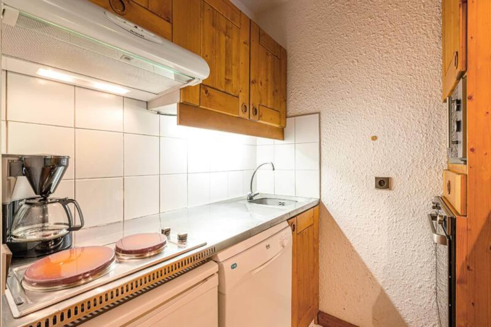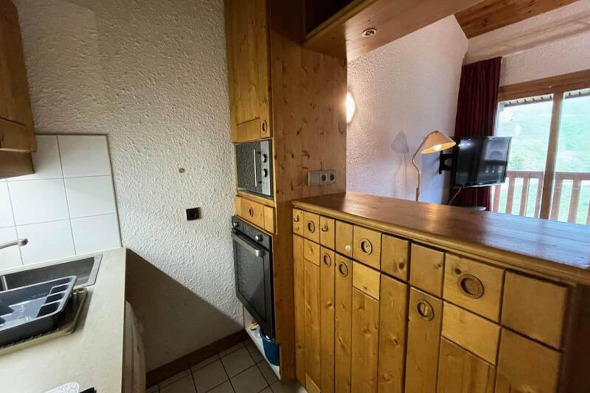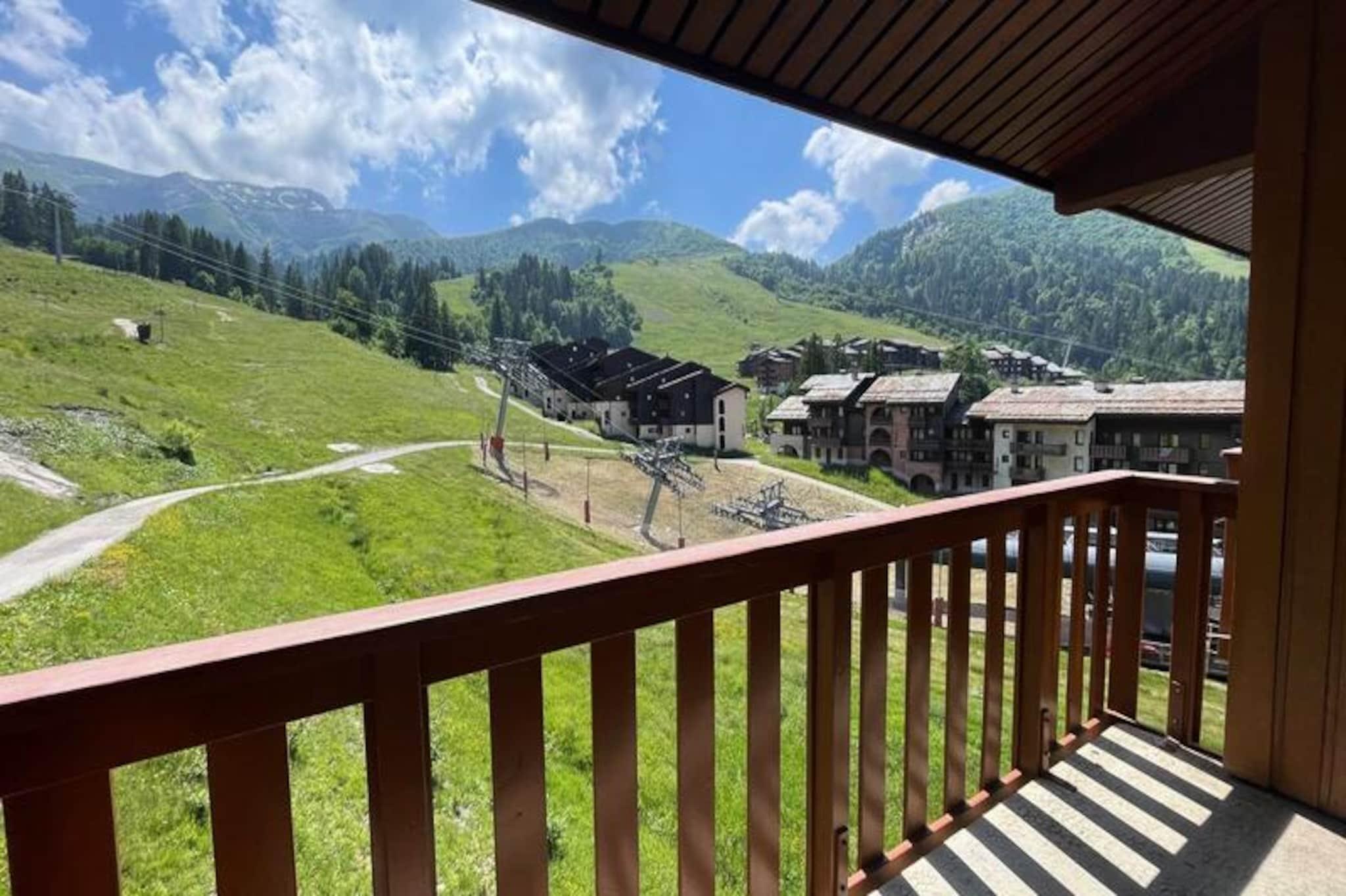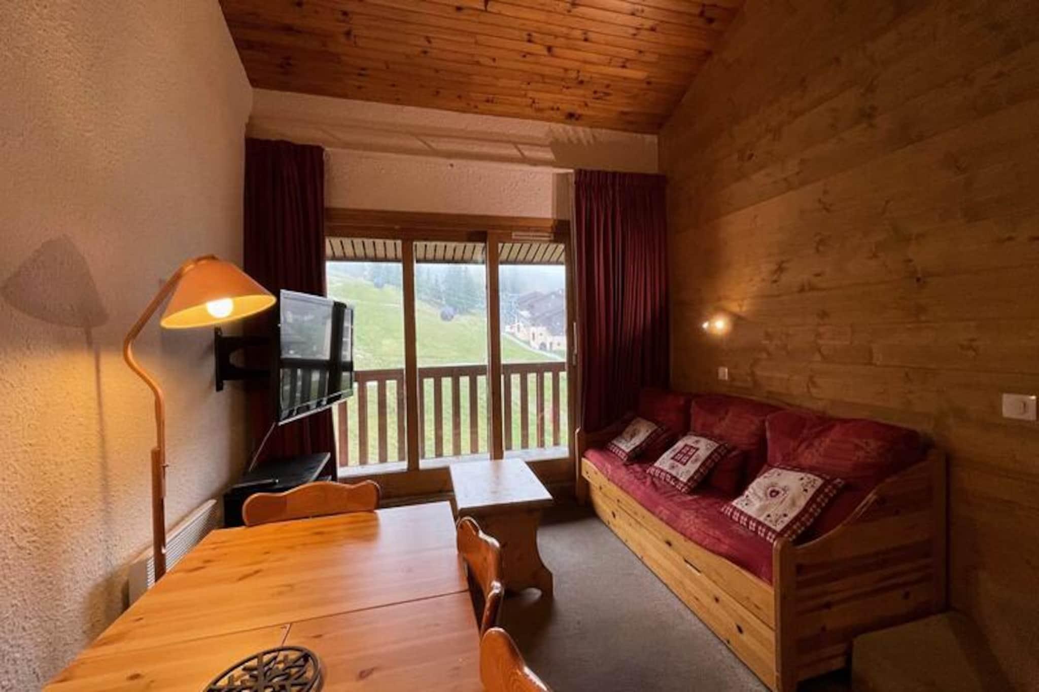 Højt over Valmorels maleriske skråninger tilbyder denne indbydende lejlighed en perfekt blanding af komfort og bekvemmelighed til din alpine ferie. Beliggende på 5. sal i Le Pierrafort-residensen, kan den prale af ski-in/ski-out adgang, hvilket sikrer, at du kan træde direkte ud på sneen og starte din eventyrlige dag. Den sydvendte balkon tilbyder en fantastisk udsigt over pisterne, hvilket gør det til et ideelt sted at nippe til din morgenkaffe eller slappe af efter en dag på pisterne. Uanset om du er her for vintersport eller sommervandreture, sætter den betagende natur tonen for et uforglemmeligt ophold. \n\nIndenfor er lejligheden på 43 m² og er omhyggeligt designet til at rumme op til seks gæster. Den lyse og funktionelle planløsning omfatter tre separate soveområder: en stue med en enkelt sovesofa og en udtræksseng, et hyggeligt soveværelse med to enkeltsenge og en mezzanin med to ekstra enkeltsenge. Køkkenet er fuldt udstyret med elektrisk kogeplade, opvaskemaskine, ovn og mikrobølgeovn, hvilket gør det nemt at tilberede solide måltider til at genoplade efter dine eventyr. Yderligere faciliteter inkluderer et badeværelse med vaskemaskine og et separat toilet, hvilket sikrer bekvemmelighed under hele dit ophold. Bemærk venligst, at Wi-Fi ikke er inkluderet, og lejligheden er røgfri og kæledyrsfri.\n\nLe Pierrafort-residensen er perfekt beliggende i Crève Coeur-distriktet, kun 50 meter fra butikker og Télébourg-skiliften og 300 meter fra ESF-skiskolen. Der er betalt parkering lige foran residensen, hvilket gør det nemt for gæster at komme og gå. Crève Coeur-området er forbundet med feriestedets centrum og landsbyen Mottet via Télébourg-svævebanen, hvilket giver adgang til en række faciliteter, herunder et bageri, et minimarked og en sportsbutik.\n\nUanset om du søger spændende skiløjper, naturskønne vandrestier eller blot et hyggeligt tilflugtssted i hjertet af de franske alper, er denne lejlighed den perfekte base for dit Valmorel-eventyr. Med sin uovertrufne beliggenhed og charmerende atmosfære er det et sted, hvor minder skabes året rundt.
