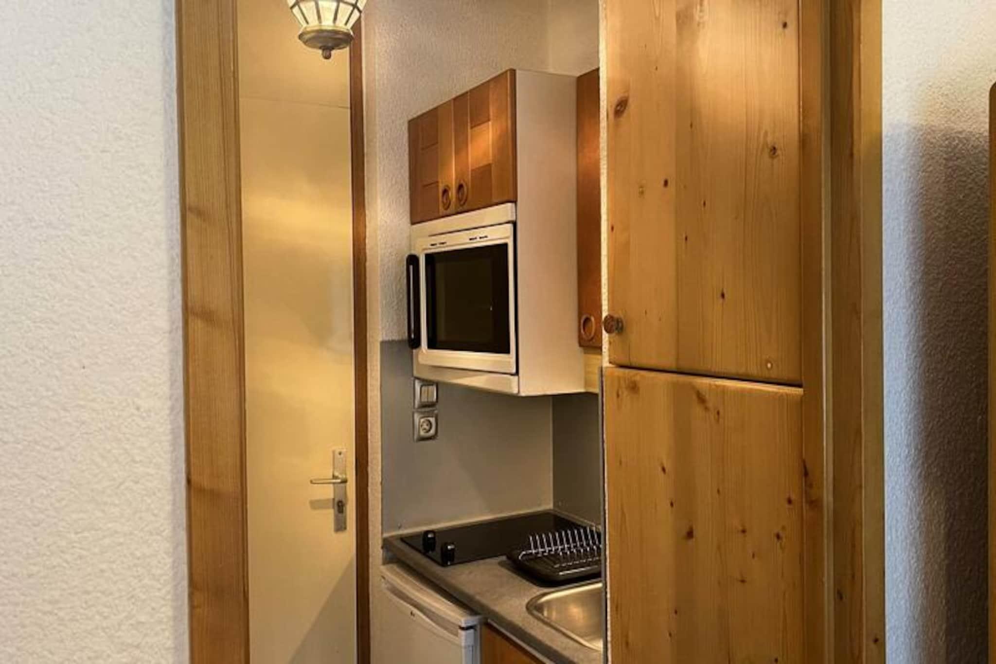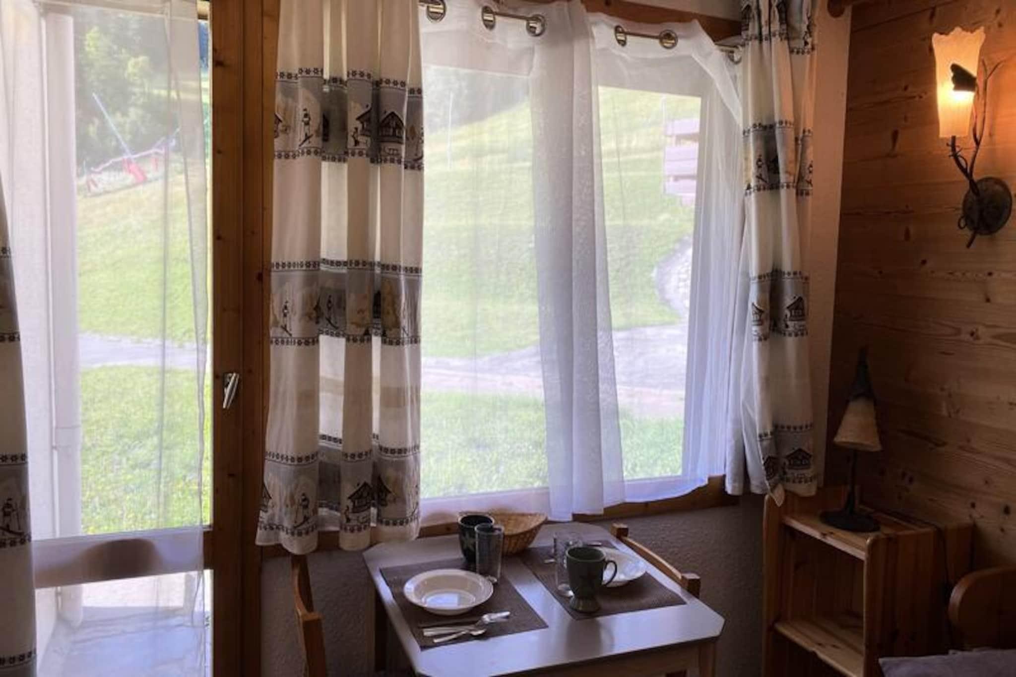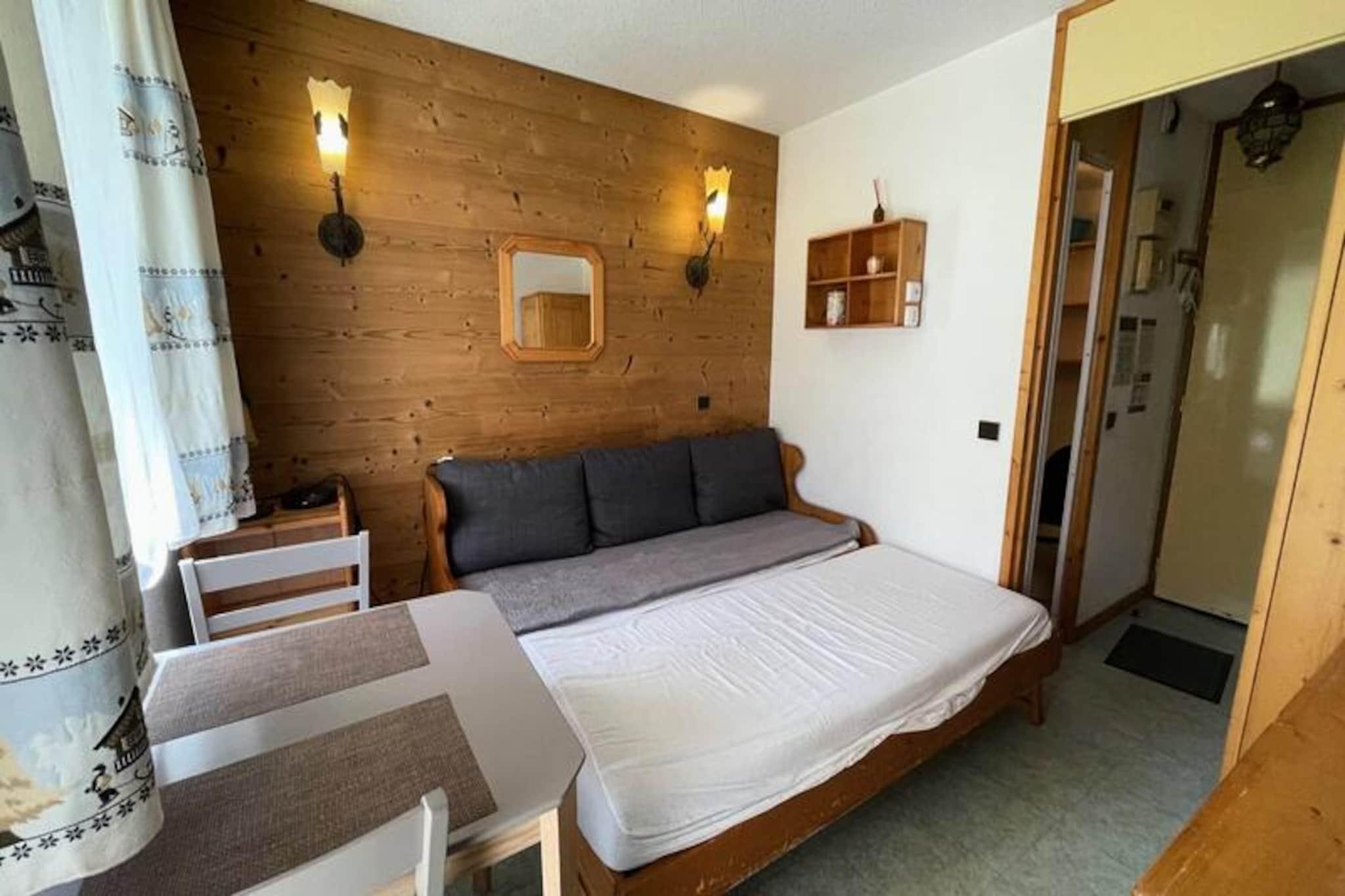 Forestil dig at vågne op til den friske bjergluft og træde ud på din private terrasse for at nyde den fredfyldte, uhindrede udsigt over de franske alper. Denne hyggelige studiolejlighed på 13 m², beliggende i hjertet af Mottet-området i Valmorel, er det perfekte tilflugtssted for to skiløbere, der søger en bekvem og komfortabel alpin ferie. Med skiløjperne og ESF-skiskolen kun få skridt væk, begynder din eventyrdag i det øjeblik, du forlader hoveddøren. Det gåvenlige kvarter sikrer et fredeligt og sikkert miljø, ideelt for både familier og par. \n\nIndvendigt er lejligheden omhyggeligt designet til at maksimere plads og komfort. Opholdsstuen har en enkeltseng og en udtræksseng, der giver fleksible sovemuligheder. Tekøkkenet er udstyret med keramisk kogeplade og mikrobølgeovn, perfekt til at tilberede hurtige måltider efter en dag på pisterne. Brusebadeværelset med toilet er kompakt, men funktionelt, og den østvendte terrasse tilbyder et roligt sted at slappe af med en varm drink, mens du ser solopgangen over bjergene. Yderligere faciliteter inkluderer et skiskab til dit udstyr og muligheden for at medbringe din lodne ledsager mod et lille tillæg. \n\nUd over lejligheden tilbyder Mottet-området uovertruffen adgang til pisterne og skiskolen, hvilket gør det til en favorit blandt ivrige skiløbere og børnefamilier. Télèbourg-svævebanen forbinder dig ubesværet til butikkerne og det livlige centrum af Valmorel, hvor du kan udforske charmerende butikker, hyggelige restauranter og afterski-aktiviteter. For dem, der ankommer i bil, er der parkeringskælder tilgængelig efter forudgående reservation. \n\nUanset om du er her for at grave dig gennem frisk puddersne, nyde naturskønne alpine vandreture eller blot slappe af i de betagende omgivelser, tilbyder denne studiolejlighed alt, hvad du behøver for en uforglemmelig bjergferie.