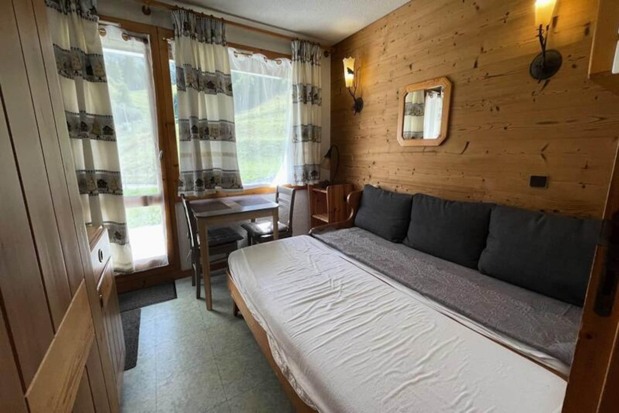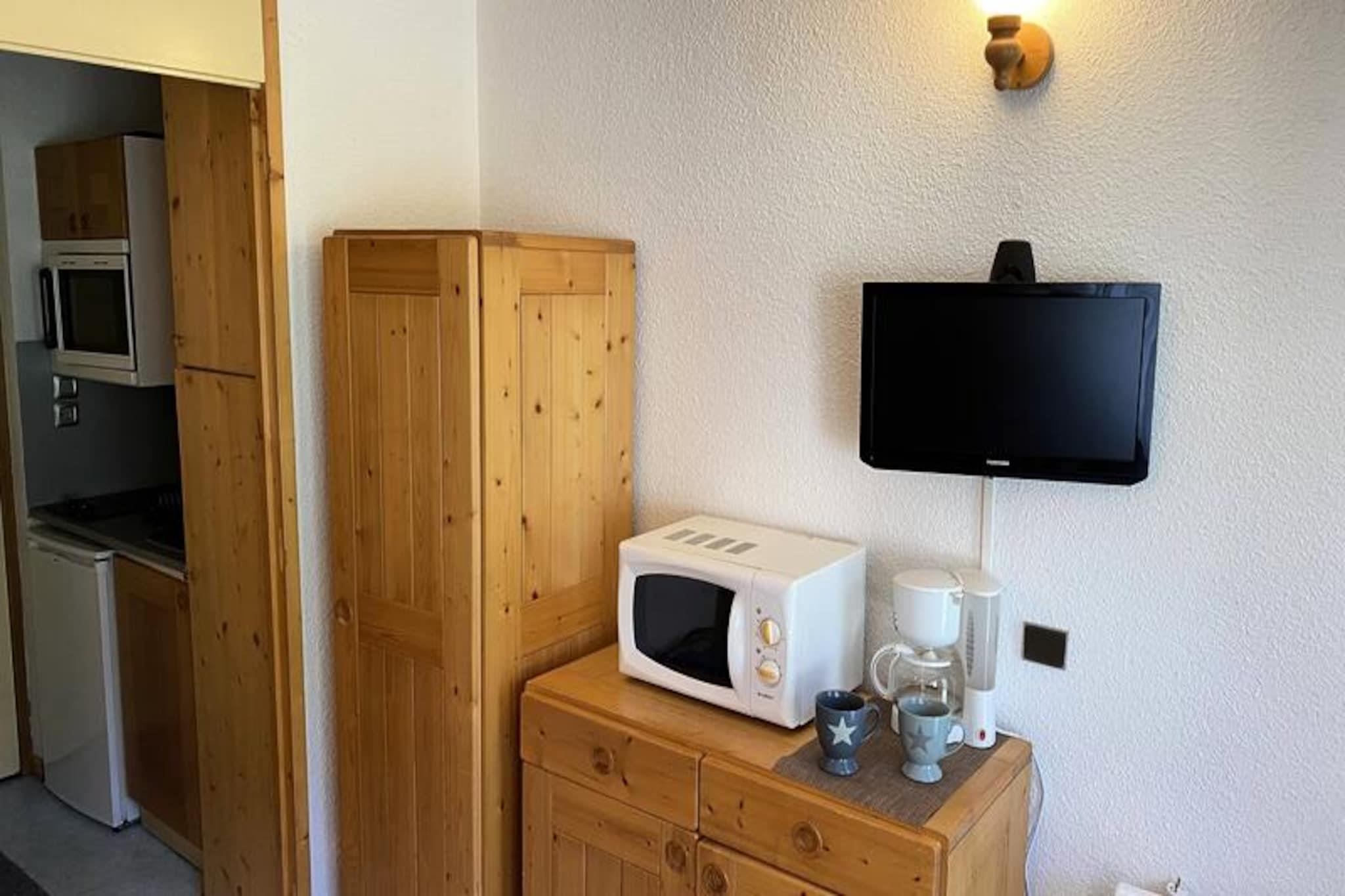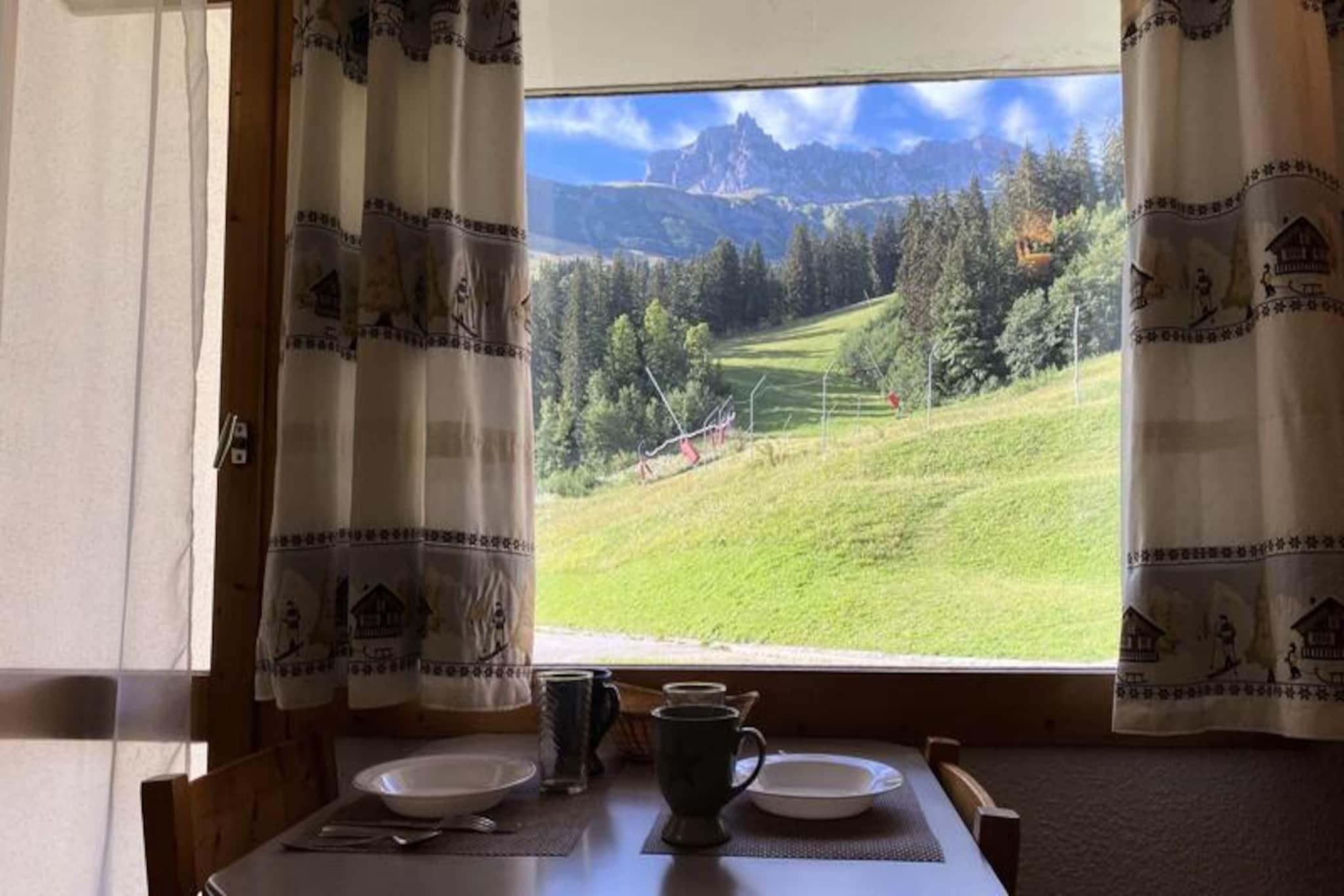 Forestil dig at vågne op til den friske bjergluft og træde ud på din private terrasse for at nyde den fredfyldte, uhindrede udsigt over de franske alper. Denne hyggelige studiolejlighed på 13 m², beliggende i hjertet af Mottet-området i Valmorel, er det perfekte tilflugtssted for to skiløbere, der søger en bekvem og komfortabel alpin ferie. Med skiløjperne og ESF-skiskolen kun få skridt væk, begynder din eventyrdag i det øjeblik, du forlader hoveddøren. Det gåvenlige kvarter sikrer et fredeligt og sikkert miljø, ideelt for både familier og par. \n\nIndvendigt er lejligheden omhyggeligt designet til at maksimere plads og komfort. Opholdsstuen har en enkeltseng og en udtræksseng, der giver fleksible sovemuligheder. Tekøkkenet er udstyret med keramisk kogeplade og mikrobølgeovn, perfekt til at tilberede hurtige måltider efter en dag på pisterne. Brusebadeværelset med toilet er kompakt, men funktionelt, og den østvendte terrasse tilbyder et roligt sted at slappe af med en varm drink, mens du ser solopgangen over bjergene. Yderligere faciliteter inkluderer et skiskab til dit udstyr og muligheden for at medbringe din lodne ledsager mod et lille tillæg. \n\nUd over lejligheden tilbyder Mottet-området uovertruffen adgang til pisterne og skiskolen, hvilket gør det til en favorit blandt ivrige skiløbere og børnefamilier. Télèbourg-svævebanen forbinder dig ubesværet til butikkerne og det livlige centrum af Valmorel, hvor du kan udforske charmerende butikker, hyggelige restauranter og afterski-aktiviteter. For dem, der ankommer i bil, er der parkeringskælder tilgængelig efter forudgående reservation. \n\nUanset om du er her for at grave dig gennem frisk puddersne, nyde naturskønne alpine vandreture eller blot slappe af i de betagende omgivelser, tilbyder denne studiolejlighed alt, hvad du behøver for en uforglemmelig bjergferie.