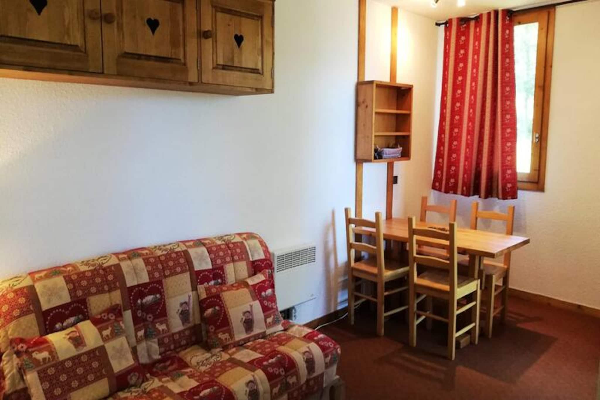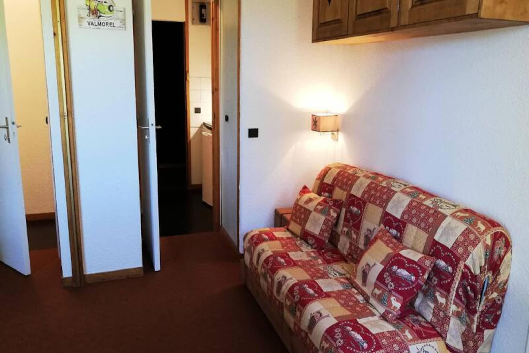 I det fredfyldte La Forêt-kvarter i Valmorel tilbyder denne charmerende studiolejlighed et hyggeligt alpint tilflugtssted kun 100 meter fra pisterne. Omgivet af betagende udsigt over bjergene og i fredelige omgivelser er det den perfekte base for både skiløbere og naturelskere. Uanset om du er her for at sno dig gennem uberørt sne eller udforske de naturskønne stier, lover denne beliggenhed en forfriskende ferie. \n\nDen 27 m² store lejlighed, der ligger på tredje sal i La Cachette-residensen, er omhyggeligt designet til komfort og funktionalitet. Opholdsstuen er smart opdelbar med to sovesofaer, der kan rumme op til fire gæster. Et veludstyret køkken med opvaskemaskine, elektrisk kogeplade, mikrobølgeovn og raclettegrill inviterer dig til at tilberede solide måltider efter en dag med eventyr. Den vestvendte balkon tilbyder uhindret udsigt, hvilket gør den til et ideelt sted at slappe af med en varm drink, mens solen går ned over bjergene. Yderligere faciliteter inkluderer et skirum, et separat badeværelse og en spiseplads med plads til fire. Bemærk venligst, at Wi-Fi ikke er inkluderet, og lejligheden er røgfri og ikke tilgængelig for personer med nedsat mobilitet.\n\nValmorels La Forêt-kvarter er et roligt paradis, men alligevel bekvemt tæt på alt, hvad der sker. Lanchettes-stoleliften og Planchamps-svævebanen er inden for rækkevidde, mens en naturskøn 10-minutters gåtur langs en fodgængersti fører dig til feriestedets centrum, hvor butikker, restauranter og en børnehave venter. Om vinteren kan du nyde problemfri adgang til pisterne, og om sommeren kan du udforske de frodige alpine landskaber og den pulserende lokale kultur.\n\nUanset om du søger spændende udendørseventyr eller et fredeligt tilflugtssted i hjertet af de franske alper, tilbyder denne studiolejlighed den perfekte blanding af komfort, bekvemmelighed og charme. Oplev magien i Valmorel og skab uforglemmelige minder i denne idylliske bjergferie.