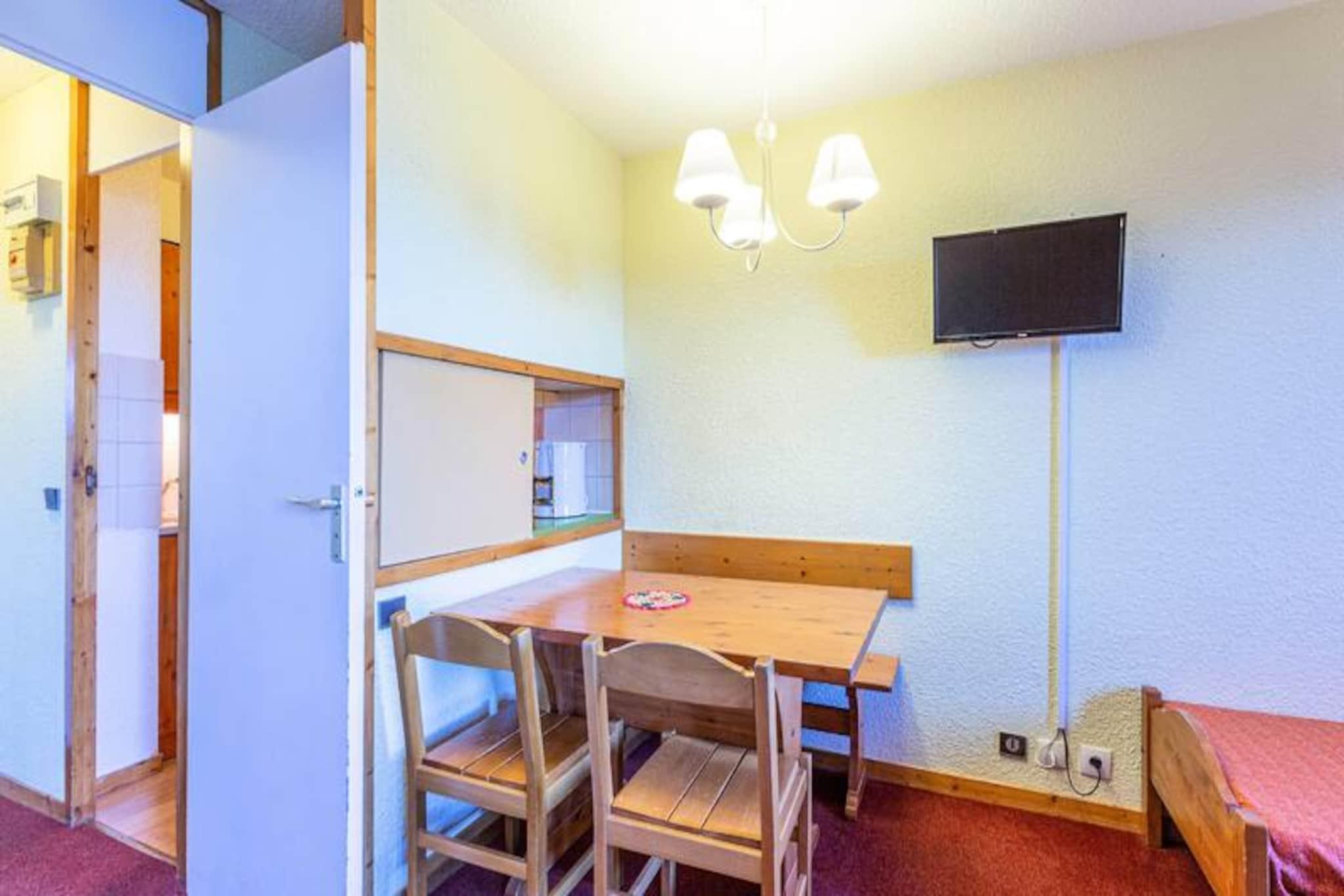 Beliggende i den naturskønne landsby Crève Coeur i Valmorel tilbyder denne charmerende studiolejlighed et hyggeligt tilflugtssted for op til fire gæster. Med skiløjper kun få skridt væk og den nærmeste skilift og butikker kun 100 meter fra din dør, er denne beliggenhed en drøm for vintersportsentusiaster. Lejlighedens nordvendte terrasse tilbyder en fantastisk udsigt over dalen og inviterer dig til at nyde den rolige alpine atmosfære efter en dag med eventyr. Uanset om du er her for at stå på ski, vandre eller bare slappe af, kombinerer denne bolig bekvemmelighed med autentisk Savoyard-charme. \n\nIndvendigt er det 27 m² store studio omhyggeligt designet med en flytbar skillevæg, der deler stuen i to soveområder, der begge har komfortable enkeltsenge. Tekøkkenet er udstyret med moderne bekvemmeligheder, herunder opvaskemaskine, elektrisk komfur og mikrobølgeovn, hvilket sikrer, at du har alt, hvad du behøver for at tilberede måltider under dit ophold. Et separat badeværelse og toilet bidrager til det praktiske, mens lejlighedens varme, velholdte interiør gør den til et indbydende sted at slappe af. Bemærk venligst, at Wi-Fi ikke er inkluderet, og lejligheden er røgfri og ikke tilgængelig for gæster med nedsat mobilitet. \n\nDet omkringliggende område er rigt på bekvemmeligheder, herunder et bageri, et minimarked og en sportsbutik inden for gåafstand. Crève Coeur-området har gode forbindelser til feriestedets centrum og landsbyen Mottet via Télébourg-svævebanen, hvilket gør det nemt at udforske den bredere Valmorel-region. For dem, der ankommer i bil, er der betalt parkering foran boligen. \n\nUanset om du søger spændende dage på pisterne eller fredelige aftener med udsigt over alperne, tilbyder denne studiolejlighed i Le Pierrer-residensen den perfekte balance mellem komfort, charme og nærhed til alle de nødvendige faciliteter for en uforglemmelig bjergferie.