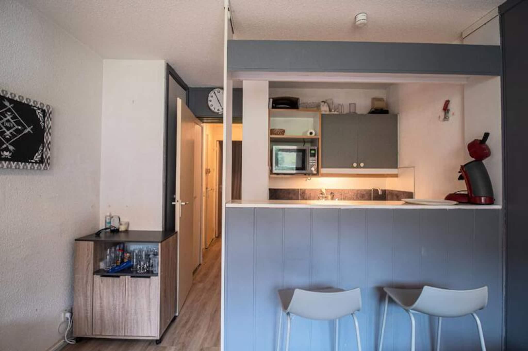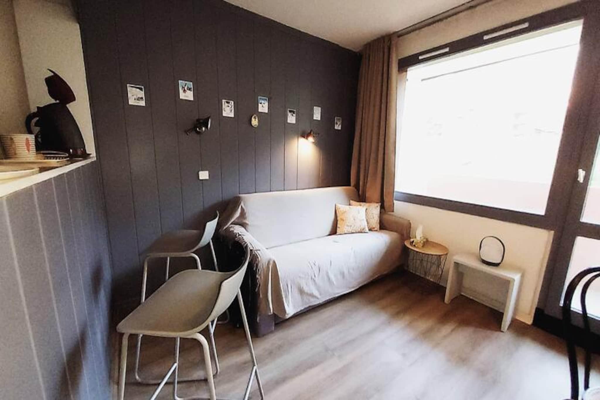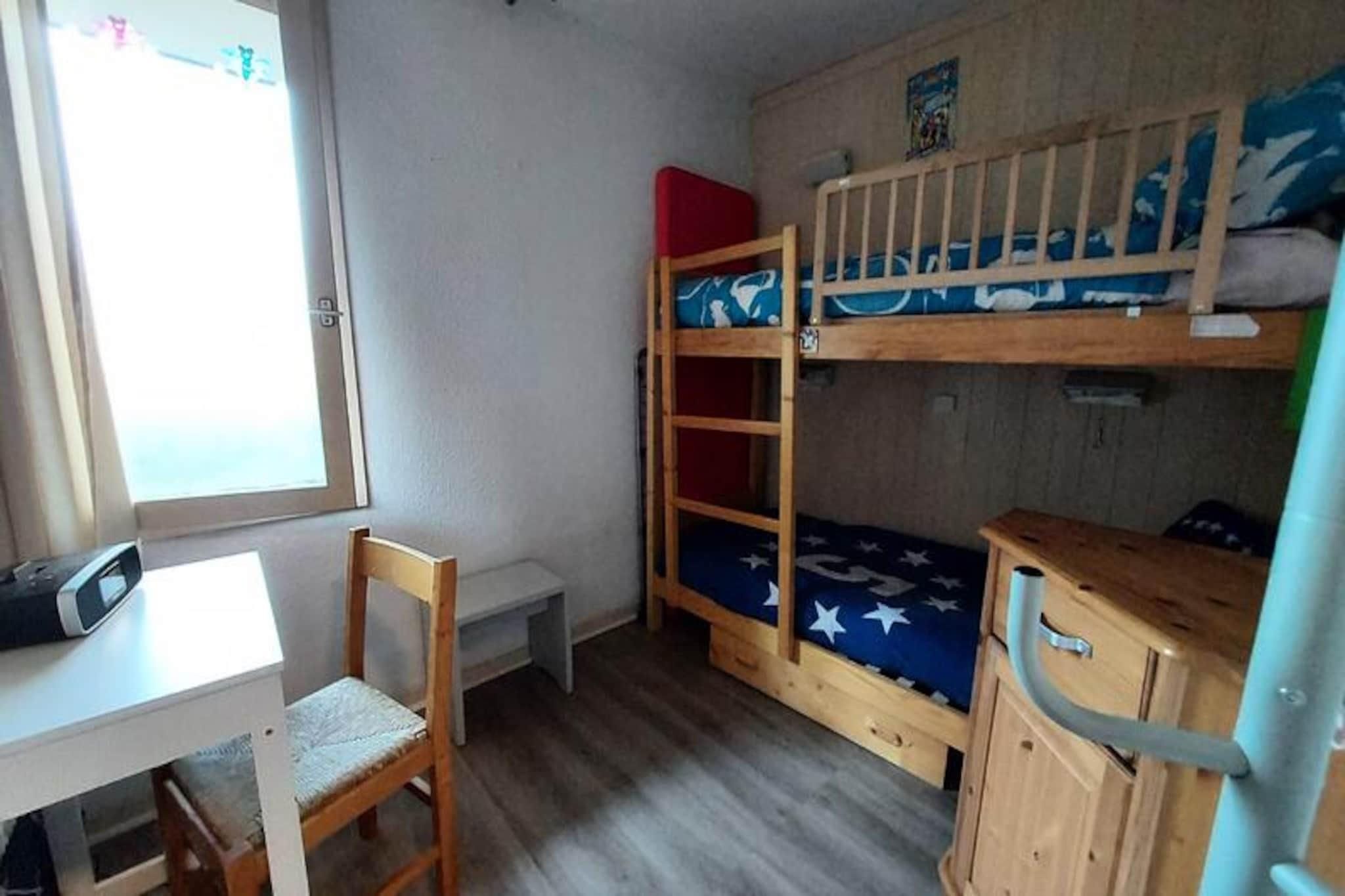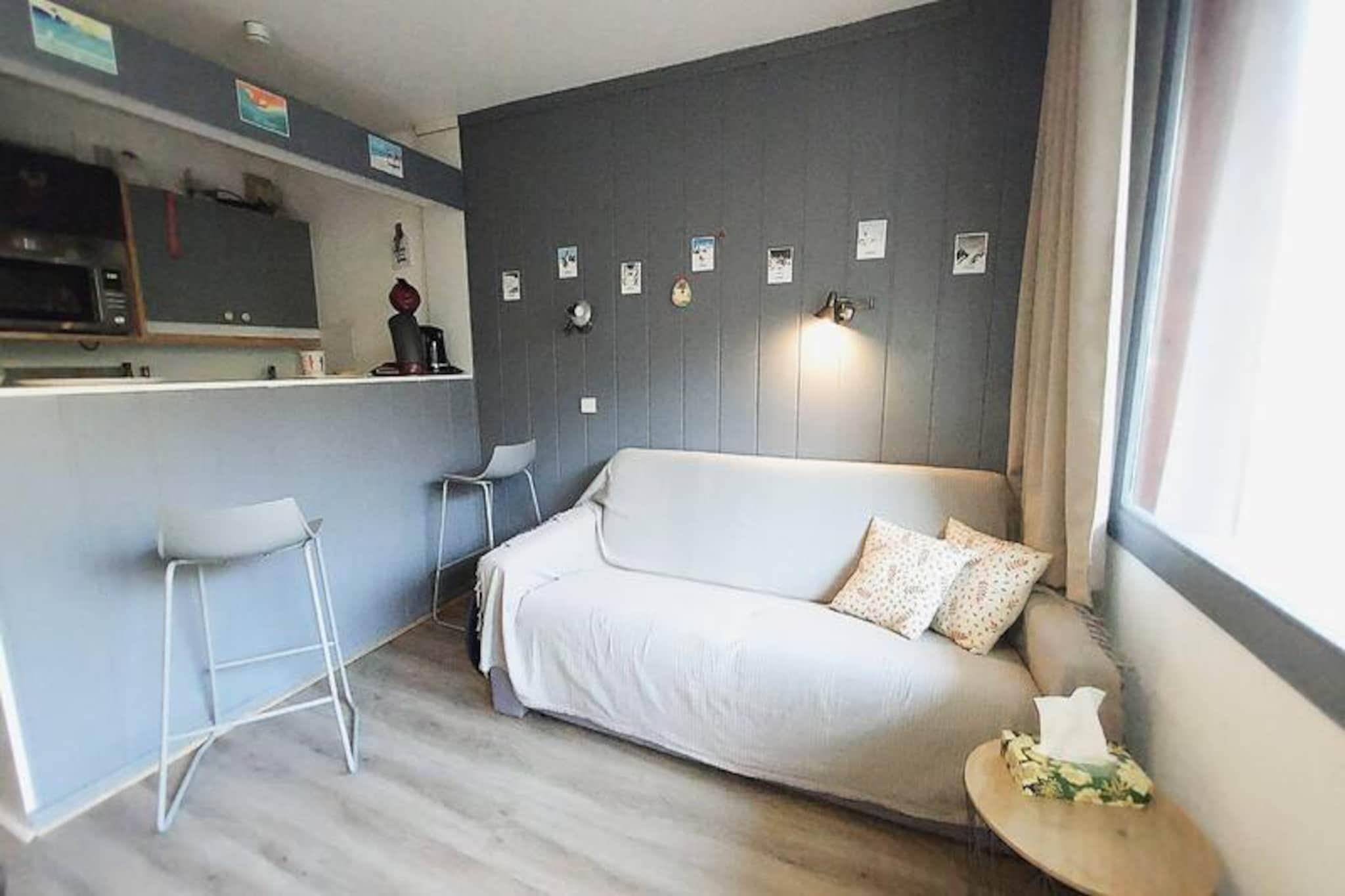 Forestil dig at vågne op til den fredfyldte skønhed i de franske alper, hvor frisk bjergluft og betagende udsigter sætter tonen for din dag. Denne charmerende lejlighed på 28 m², beliggende i det rolige Fontaine-distrikt i Valmorel, tilbyder den perfekte alpine flugt for par eller små familier. Med Lanchettes-stoleliften kun 100 meter væk kan du træde ud af døren og ud på pisterne på få øjeblikke, hvilket gør den til et paradis for skientusiaster, der søger bekvemmelighed og komfort. \n\nLejligheden har et hyggeligt åbent køkken udstyret med opvaskemaskine, keramisk kogeplade, multifunktionsovn, køleskab og endda en raclette-grill til autentiske alpine spiseoplevelser. Stuen inviterer dig til at slappe af med en komfortabel dobbeltsovesofa og et tv, mens det separate soveværelse med køjesenge tilbyder et hyggeligt tilflugtssted for afslappende nætter. En sydvendt balkon tilbyder en fantastisk udsigt over bjergene, perfekt til at nyde din morgenkaffe eller et aftenglas vin. Yderligere faciliteter inkluderer et skirum og et brusebad med separat toilet, hvilket sikrer praktisk ophold.\n\nDenne bolig ligger i den fredelige landsby La Fontaine og tilbyder direkte adgang til pisterne, kun 600 meter til fods fra lokale butikker. Uanset om du udforsker den pulserende landsbyatmosfære eller forkæler dig selv med afterskiing, er alt hvad du behøver inden for rækkevidde. Om sommeren forvandles regionen til et paradis for vandrere og naturelskere med endeløse stier og maleriske landskaber at opdage.\n\nVælg denne dejlige lejlighed til din næste alpine ferie, og oplev den perfekte blanding af ro, eventyr og autentisk bjergcharme.