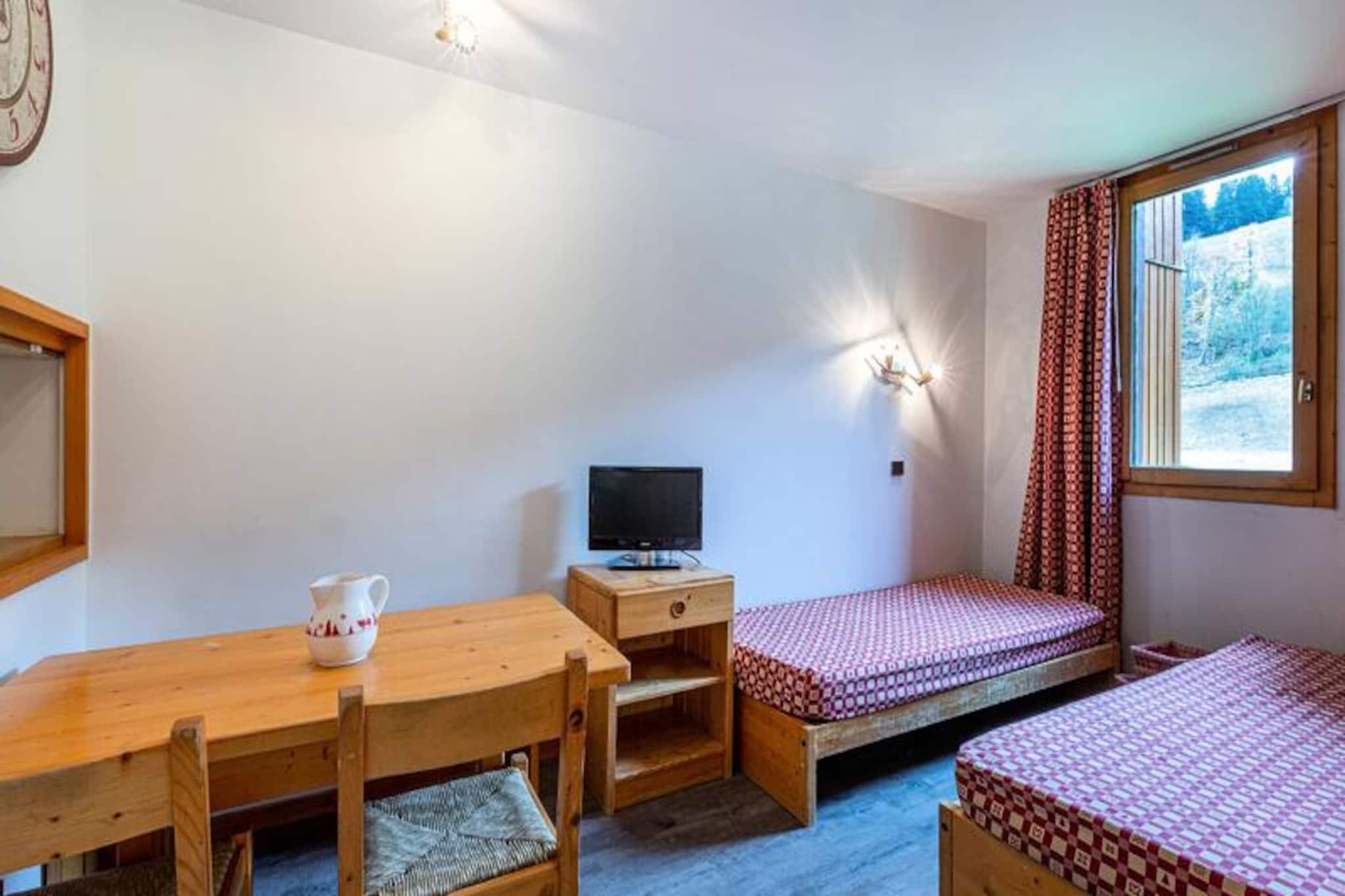 Beliggende på kanten af ??Valmorels maleriske skråninger inviterer dette charmerende studie dig til at fordybe dig i de franske alpers skønhed. Med sin sydvendte balkon, der tilbyder en betagende udsigt over de omkringliggende bjerge, føles hvert øjeblik her som en fredfyldt flugt ud i naturen. Uanset om du er her for spændingen ved skiløb eller den fredelige atmosfære i alpelivet, tilbyder dette studie det perfekte tilflugtssted til din ferie. Renoveret i 2014 kombinerer det moderne komfort med varmt, funktionelt design for at sikre et mindeværdigt ophold. \n\nDet 27 m² store studie er omhyggeligt designet til at rumme op til fire gæster. Opholdsstuen har fire enkeltsofaer, hvilket giver fleksibilitet for familier eller venner, der rejser sammen. Et separat køkken er udstyret med opvaskemaskine, keramisk kogeplade og mikrobølgeovn, hvilket gør madlavning til en leg efter en dag med eventyr. Badeværelse og toilet er bekvemt adskilt, og studiet er lyst og indbydende overalt. Gæsterne sætter især pris på den nemme adgang til pisterne og skiskolen samt skiboksen for ekstra bekvemmelighed. Kæledyr er velkomne mod et mindre tillæg, hvilket bidrager til ejendommens familievenlige charme.\n\nBeliggende i det eftertragtede Mottet-område er ejendommen perfekt placeret for både skientusiaster og familier. Pisterne og skiskolen ligger kun få skridt væk, og feriestedets centrum med butikker og faciliteter er let tilgængeligt via Télèbourg-jernbanen. Det fodgængervenlige område sikrer et sikkert og roligt miljø, mens der er parkeringskælder til rådighed for dem, der ankommer i bil. Om sommeren forvandles regionen til et paradis for vandrere og naturelskere med stier, der snor sig gennem frodige landskaber og tilbyder en fantastisk udsigt.\n\nUanset om du søger spændende vintersport eller et fredeligt sommerophold, lover dette studie i Valmorel en uforglemmelig alpin oplevelse. Kombinationen af ??komfort, bekvemmelighed og fantastiske omgivelser gør det til et perfekt valg til din næste ferie.