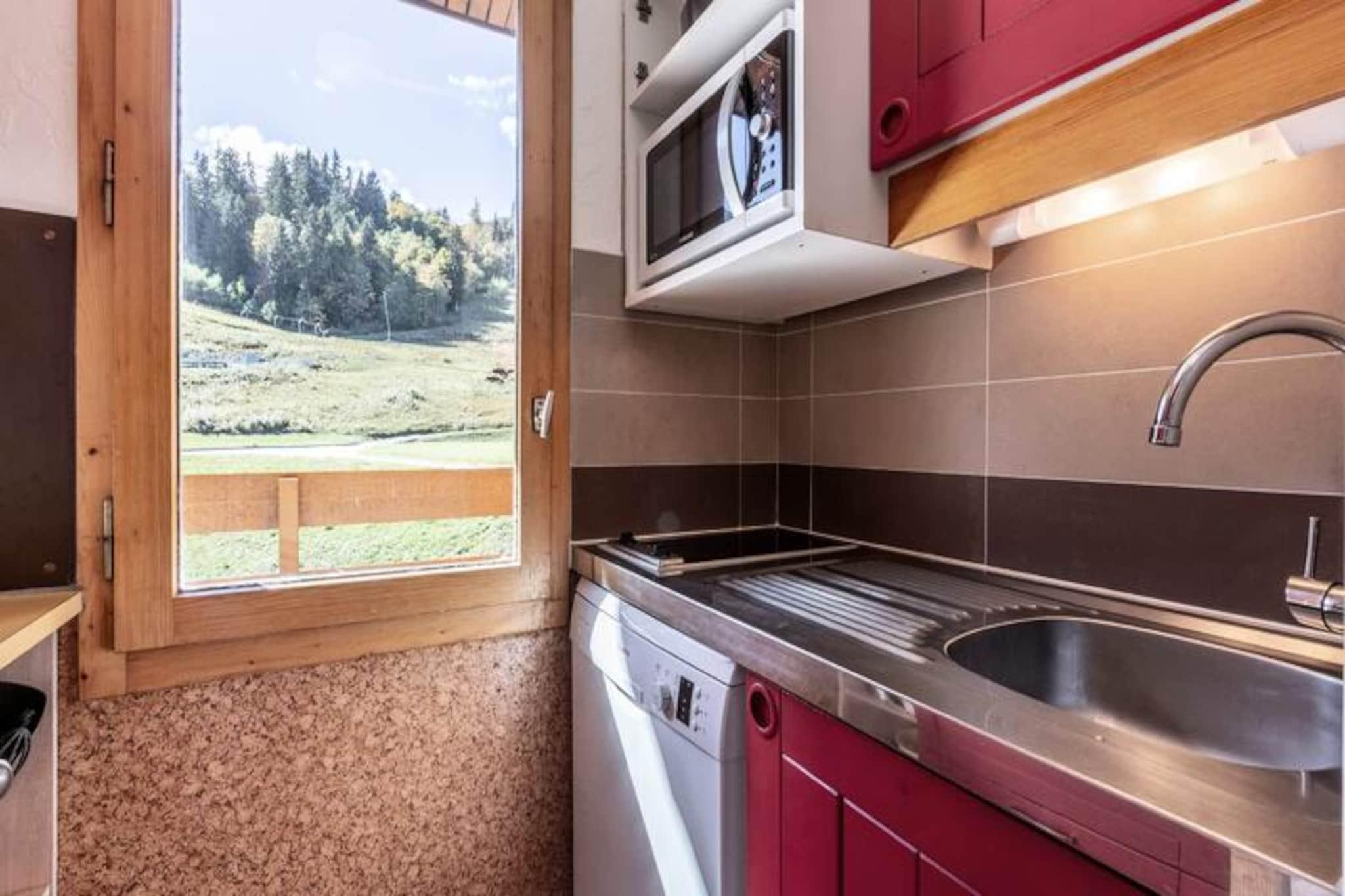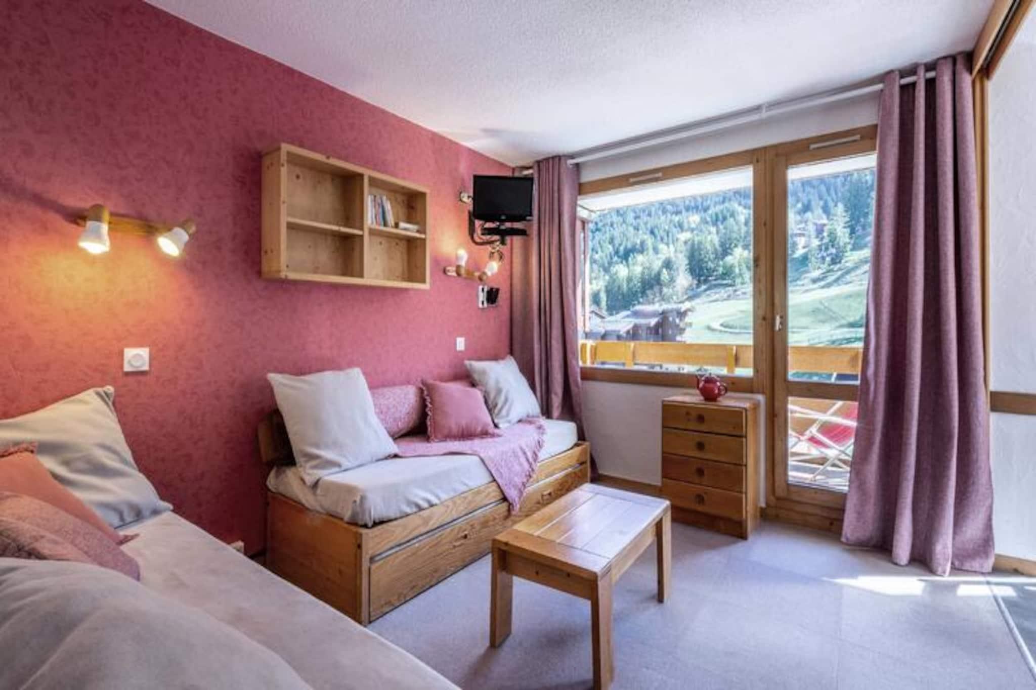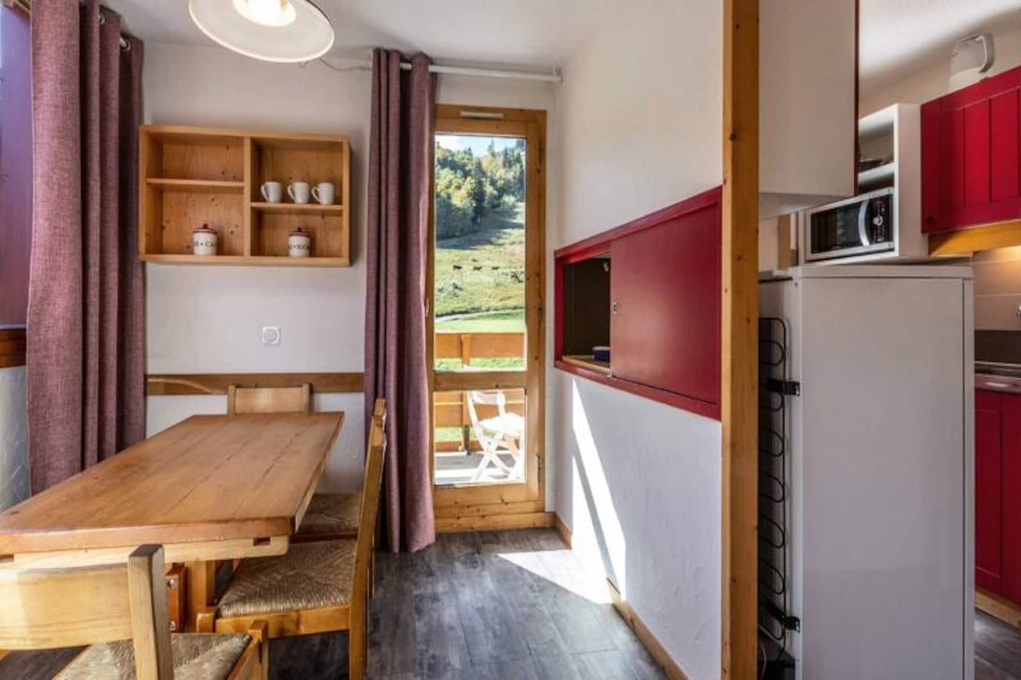 Hvor snedækkede tinder møder fredfyldt alpin charme, tilbyder denne lyse og indbydende lejlighed i Mottet-området i Valmorel det perfekte tilflugtssted for både skientusiaster og familier. Med pister og skiskole kun få skridt fra din dør kan du starte din dag ubesværet med at glide ned i den uberørte puddersne i Grand Domaine skiområdet. De dobbelte balkoner tilbyder en fantastisk udsigt over Valmorels pister og inviterer dig til at nyde de franske alpers skønhed, mens du soler dig i sollyset, der oversvømmer lejligheden hele dagen. \n\nIndenfor er lejligheden på 39 kvadratmeter og er omhyggeligt designet til komfort og praktisk anvendelighed. Stuen, smart opdelt af en aftagelig skillevæg, har to hyggelige enkeltsenge med nye madrasser, mens det separate soveværelse tilbyder en hyggelig dobbeltseng. Et fuldt udstyret køkken med opvaskemaskine og mikrobølgeovn gør madlavning til en leg, og det separate badeværelse og toilet sikrer bekvemmelighed for alle gæster. Skiboksen bidrager til at gøre dit ophold endnu nemmere, mens den kæledyrsvenlige politik betyder, at dine pelsede venner kan deltage i eventyret. \n\nResidensen La Roche Combe er ideelt beliggende med nem adgang til pisterne, skiskolen og feriestedets centrum, som kun ligger en kort køretur væk med Télébourg-jernbanen. Butikker, restauranter og afterski-aktiviteter ligger alle inden for gåafstand, hvilket gør det til en livlig, men rolig base for din alpeferie. Om sommeren forvandles området til et paradis for vandrere og naturelskere med stier, der snor sig gennem frodige landskaber og betagende udsigter. \n\nUanset om du er her for spændende vintersport eller fredelig sommerudforskning, lover denne lejlighed et mindeværdigt ophold i hjertet af de franske alper.