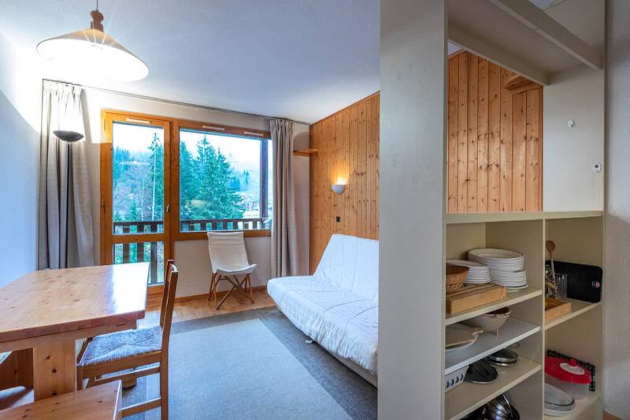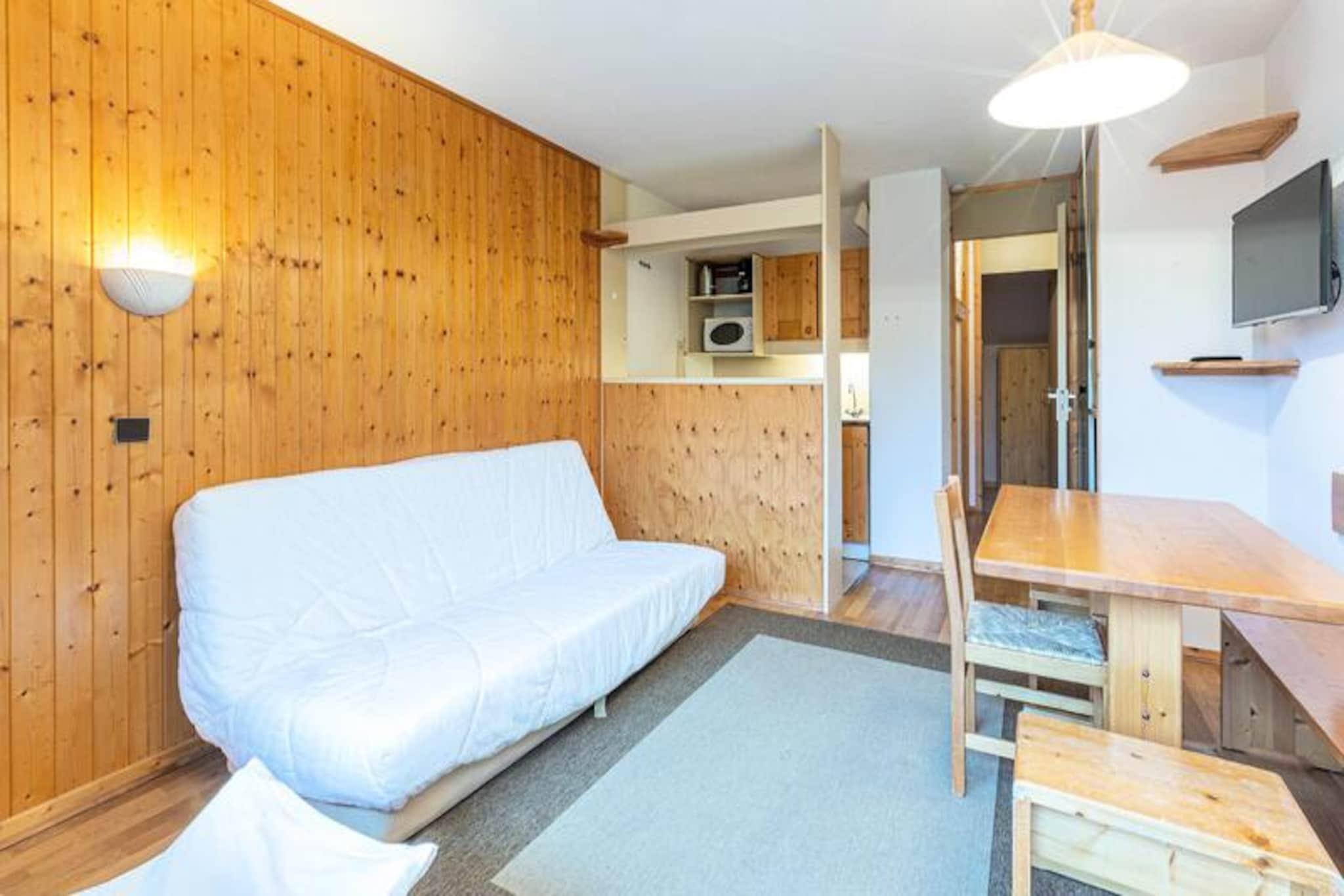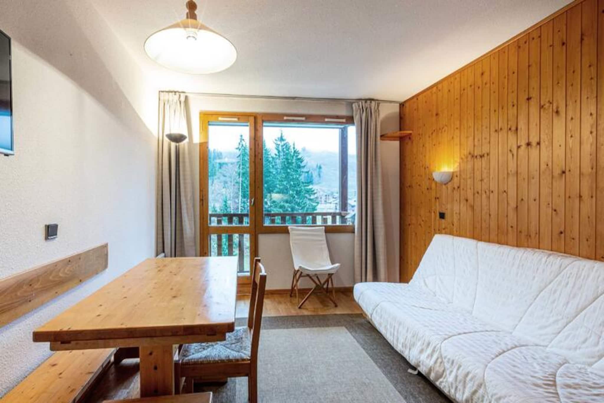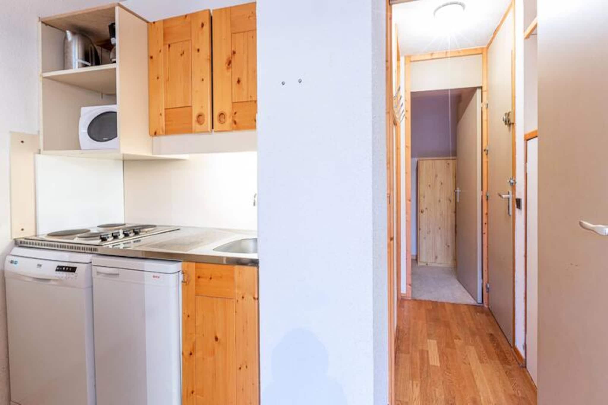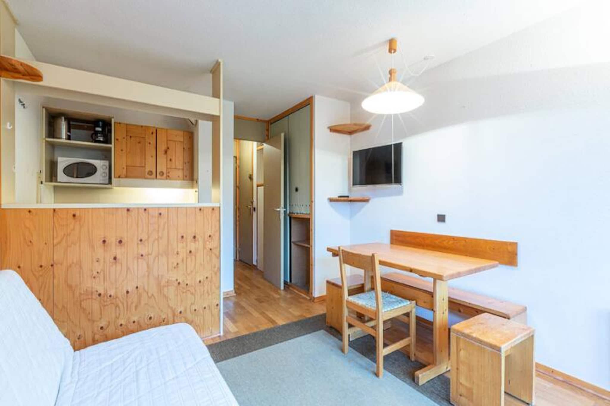 Denne hyggelige lejlighed ligger i det charmerende Crève Coeur-kvarter i Valmorel og tilbyder en dejlig alpin flugt kun få øjeblikke fra pisterne. Forestil dig at vågne op til solen, der kaster gyldne nuancer over de snedækkede tinder, træde ud på din sydvendte balkon for at indånde den friske bjergluft og gøre dig klar til en dag med eventyr med Côte Soleil-skiliften kun 50 meter væk og Pierrafort-gondolen en kort gåtur på 200 meter. Uanset om du er en erfaren skiløber eller en nybegynder, henvender beliggenheden sig til alle niveauer og sikrer en problemfri start på din dag på pisterne. \n\nIndenfor er lejligheden omhyggeligt møbleret for at give komfort og bekvemmelighed. Stuen har en sovesofa til to, mens det separate soveværelse tilbyder hyggelige køjesenge, hvilket gør den perfekt til familier eller små grupper. Det veludstyrede køkken har elektrisk kogeplade, opvaskemaskine, mikrobølgeovn og køleskab, så du kan tilberede solide måltider efter en spændende dag udendørs. Badeværelset er praktisk og funktionelt, og den sydvendte balkon tilbyder en fantastisk udsigt over feriestedet, hvilket skaber det perfekte sted at slappe af med en varm drink, mens solen går ned over bjergene. \n\nCrève Coeur-kvarteret er ideelt beliggende mellem feriestedets centrum og landsbyen Mottet, forbundet med Télébourg-svævebanen. Basisbutikker, herunder et bageri, et minimarked og en sportsbutik, ligger bekvemt i nærheden, hvilket sikrer, at du har alt, hvad du behøver, inden for rækkevidde. For dem, der ankommer i bil, er der betalt underjordisk parkering tilgængelig, og boligen har en elevator for nem adgang. \n\nDenne lejlighed er din port til den fortryllende Valmorel-oplevelse, der tilbyder en blanding af ro, bekvemmelighed og alpin charme. Uanset om du er her for spændingen ved skiløb eller roen i bjergene, lover hvert øjeblik at være uforglemmeligt.