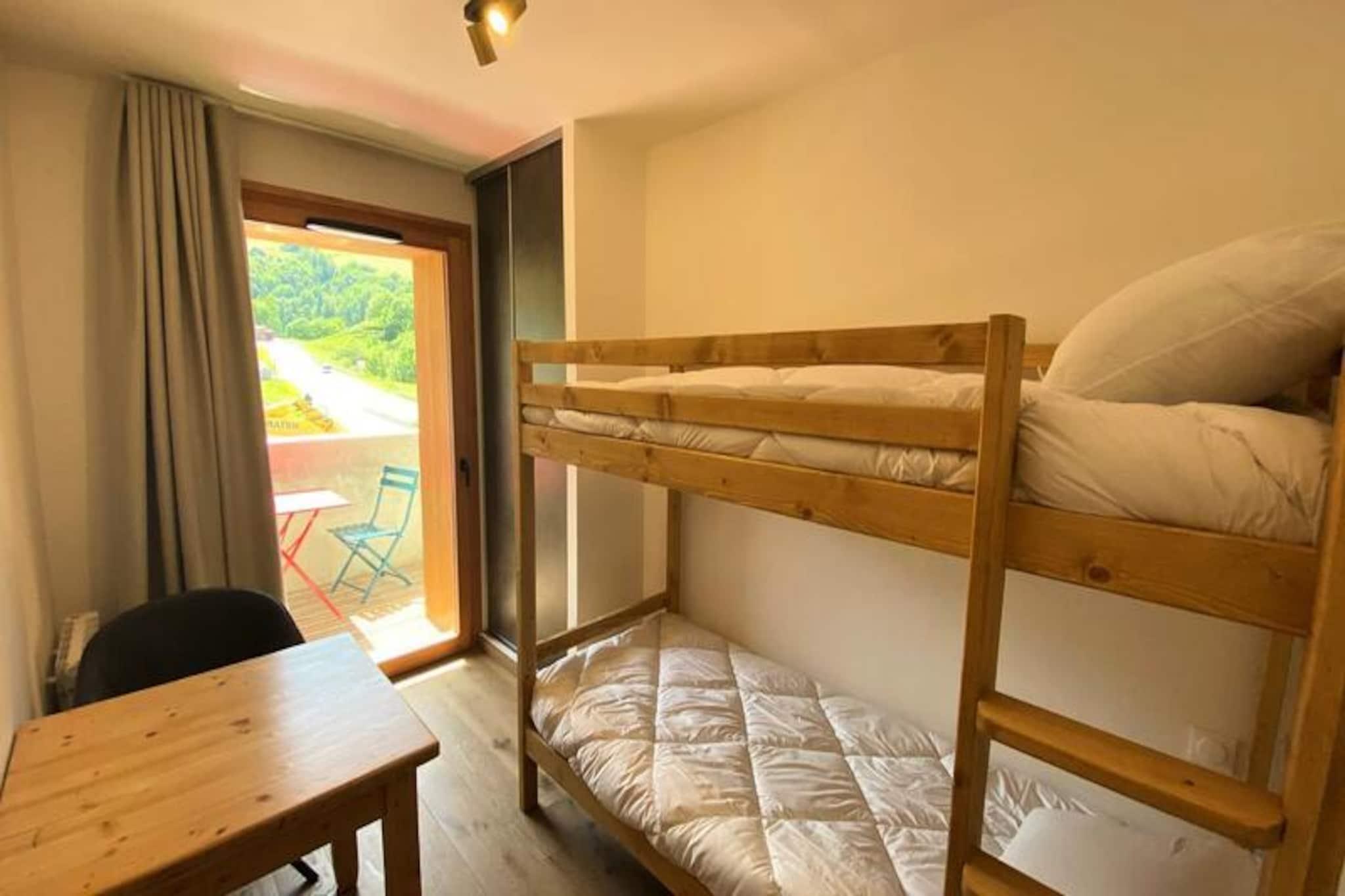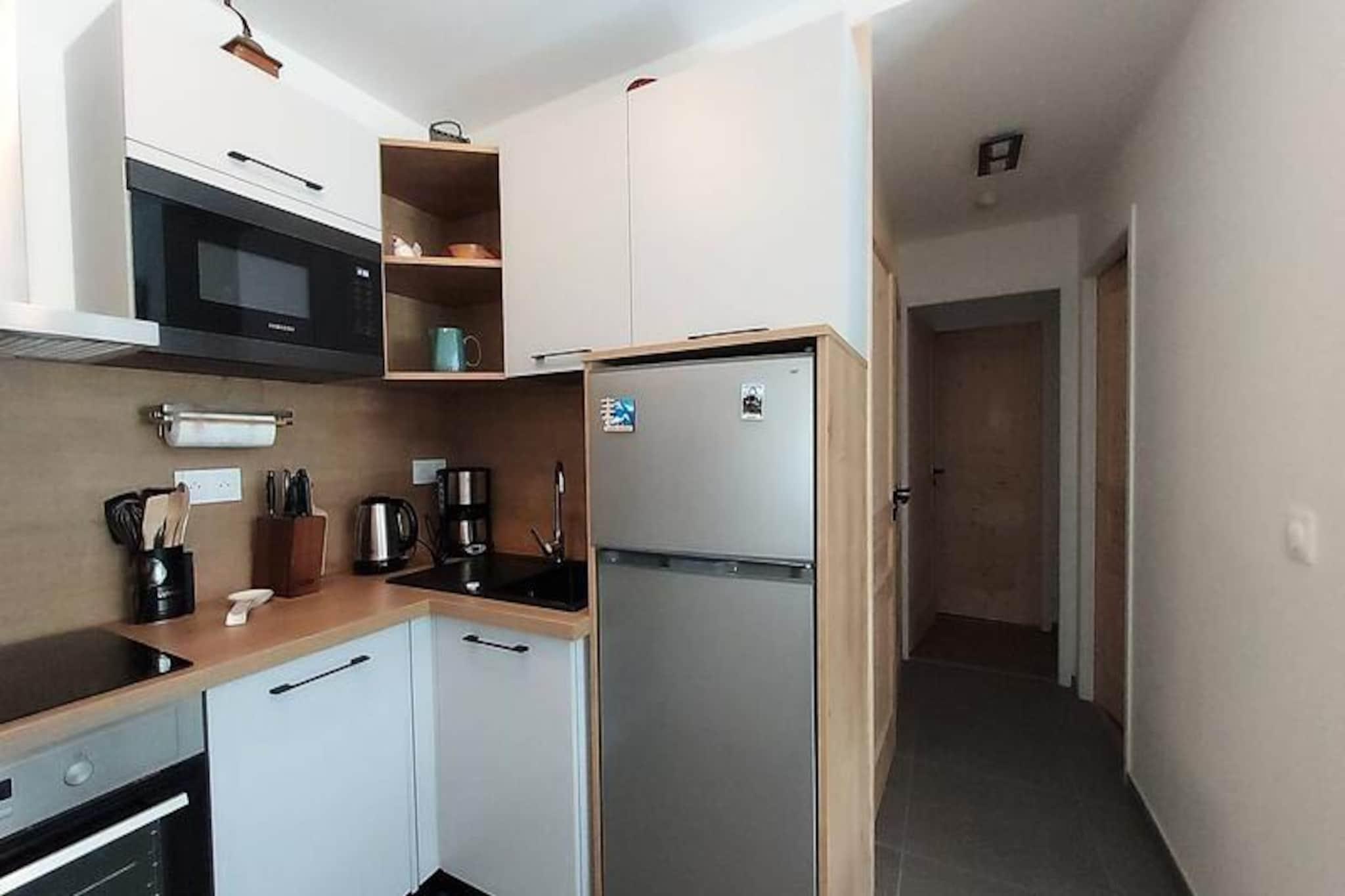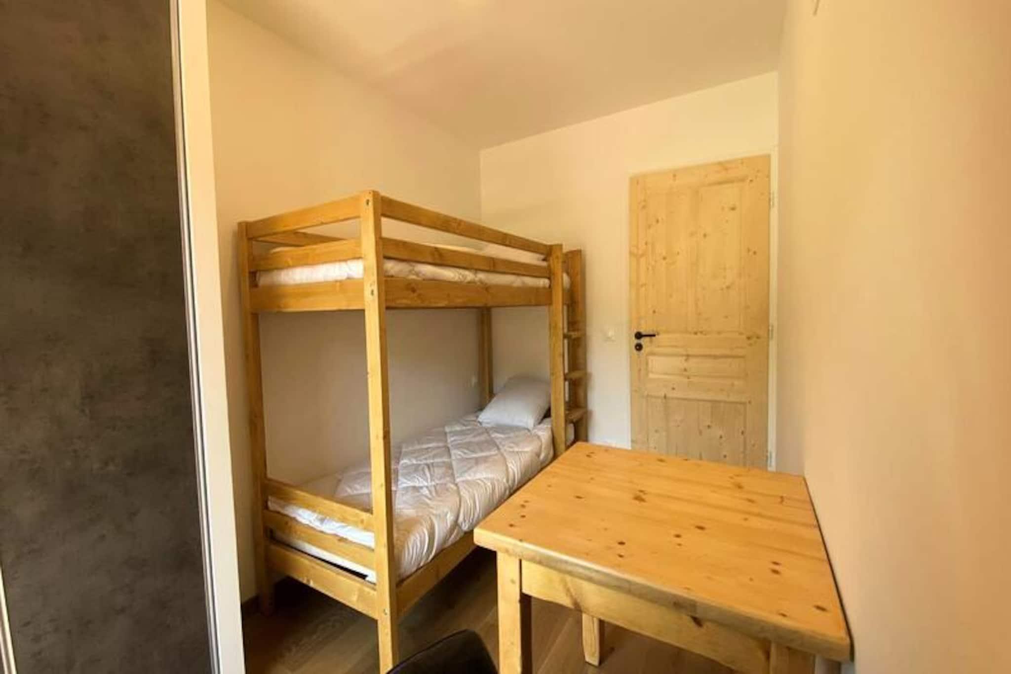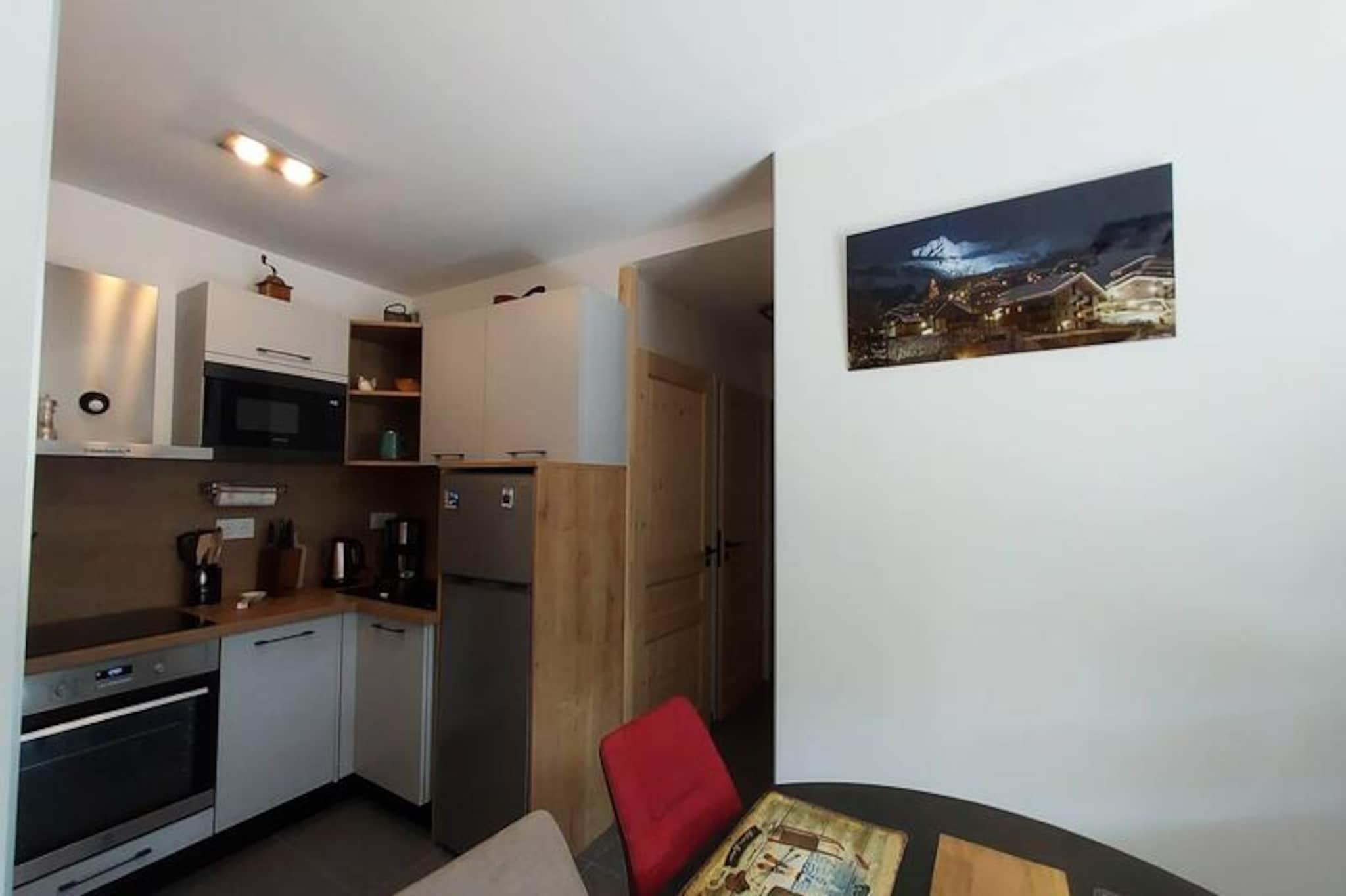 Højt over den maleriske Tarentaise-dal tilbyder denne helt nye lejlighed i Le Roc-La Charmette Residence et moderne alpint tilflugtssted for rejsende, der søger komfort og bekvemmelighed. Med elegant interiør og gennemtænkt design byder denne toværelses hyttelejlighed velkommen til op til seks gæster, hvilket gør den ideel til familier eller små grupper. De rolige omgivelser og nærheden til skiløjper i verdensklasse skaber en uforglemmelig bjergflugt, uanset om du besøger stedet for vintereventyr eller sommerudforskning. Det nærliggende gratis busstoppested sikrer nem adgang til regionens attraktioner, mens den fredelige atmosfære i boligen inviterer dig til at slappe af og lade op. Indenfor kan lejligheden prale af en fuldt udstyret stue med en 160 cm Rapido-sofa og tv, perfekt til hyggelige aftener efter en dag udendørs. Det åbne køkken har topmoderne apparater, herunder opvaskemaskine, almindelig ovn, mikrobølgeovn, induktionskogeplade, køleskab og fryser, hvilket gør madlavning til en leg. Soveværelset i hytten tilbyder charmerende køjesenge og adgang til balkonen, mens soveværelset har en luksuriøs 160 cm seng, eget brusebad med toilet og vaskemaskine. Træd ud på den rummelige 7,8 m² store balkon, hvor et bord og stole venter på dig, så du kan spise udendørs eller blot nyde den friske alpeluft. Gæsterne vil sætte pris på den ekstra bekvemmelighed ved en underjordisk parkeringsplads, skiboks og cykelopbevaring, der sikrer et problemfrit ophold. Selvom kæledyr ikke er tilladt, imødekommer boligen alle andre behov, med nærliggende faciliteter og tjenester tilgængelige for at forbedre din ferieoplevelse. Fra pisterne til stierne er denne lejlighed perfekt placeret til at udforske de franske alpers naturlige skønhed. Uanset om du snor dig gennem frisk puddersne eller vandrer under solrige himmelstrøg, er Le Roc-La Charmette Residence din port til uforglemmelige alpine eventyr.
