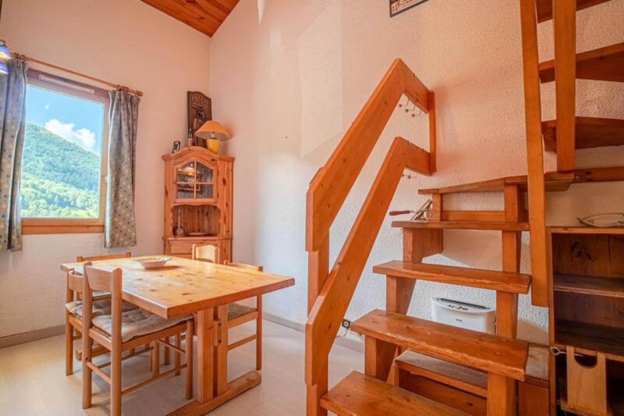 I hjertet af det charmerende Crève Coeur-område i Valmorel tilbyder denne dejlige toværelses duplexlejlighed et perfekt alpint tilflugtssted for familier og grupper. Med skiløjperne og butikkerne bogstaveligt talt lige uden for døren og skiliften kun 50 meter væk, blandes bekvemmelighed og eventyr problemfrit i disse idylliske bjergomgivelser. Vågn op til den friske bjergluft og nyd den fantastiske vestvendte balkonudsigt over feriestedet og de omkringliggende tinder. \n\nLejligheden er 47 m² stor og er omhyggeligt designet til komfort og funktionalitet. Stuen har to hyggelige enkeltsofaer, mens det største soveværelse tilbyder en blød 160 cm dobbeltseng. Lofts-mezzaninen tilføjer et strejf af charme med køjesenge, en enkeltseng og en ekstra seng, hvilket gør den ideel til op til syv gæster. Det åbne køkken og spiseplads er fuldt udstyret med opvaskemaskine, keramisk kogeplade og ovn, perfekt til at tilberede solide måltider efter en dag på pisterne. To badeværelser, inklusive et separat toilet og et brusebad med et ekstra toilet, sikrer praktisk anvendelighed for større grupper. Et skiskab er også tilgængeligt for din bekvemmelighed.\n\nResidensen \