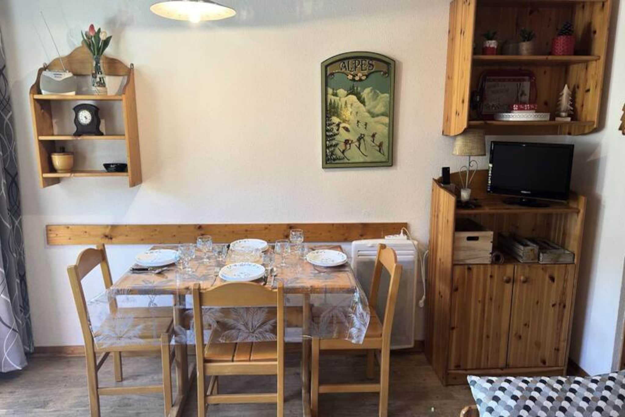 Højt over den maleriske landsby Fontaine tilbyder denne charmerende studiolejlighed et hyggeligt tilflugtssted for op til tre gæster, perfekt beliggende for dem, der søger en rolig alpin flugt. Forestil dig morgener fyldt med frisk bjergluft og aftener tilbragt med at kigge på de stjerneklare pister fra din private balkon. Uanset om du er her for spændingen ved skiløb eller naturens ro, placerer denne ejendom dig lige i hjertet af begivenhederne, samtidig med at den bevarer en fredelig atmosfære. \n\nLejligheden har et gennemtænkt designet åbent køkken og opholdsstue, komplet med moderne bekvemmeligheder såsom køleskab, opvaskemaskine og raclettegrill til solide måltider efter en dag med eventyr. Stuen er møbleret med en komfortabel sovesofa og to køjesenge, alle udstyret med hyggelige dyner for at sikre afslappende nætter. Et kompakt, men funktionelt badeværelse bidrager til bekvemmeligheden, mens balkonen inviterer dig til at slappe af og nyde den alpine udsigt. Kæledyr er velkomne under visse betingelser, hvilket gør dette til et godt valg for familier eller par, der rejser med pelsede venner. \n\nDenne studiolejlighed ligger ved foden af ??pisterne, kun 10 minutter fra ESF-skiskolen og Piou Piou-børneklubben, hvilket gør den ideel for både begyndere og erfarne skiløbere. Der ligger butikker en kort 8-minutters gåtur væk, hvilket sikrer nem adgang til fornødenheder og lokale delikatesser. Om vinteren lokker pisterne med til endeløse skiløbseventyr, mens sommeren forvandler området til et paradis for vandreture og udforskning af de omkringliggende stier. \n\nUanset om du er tiltrukket af bjergenes tiltrækningskraft eller den bekvemme beliggenhed, lover denne studiolejlighed et mindeværdigt ophold i de franske alper. Book din ferie i dag og fordyb dig i Fontaines skønhed og charme.