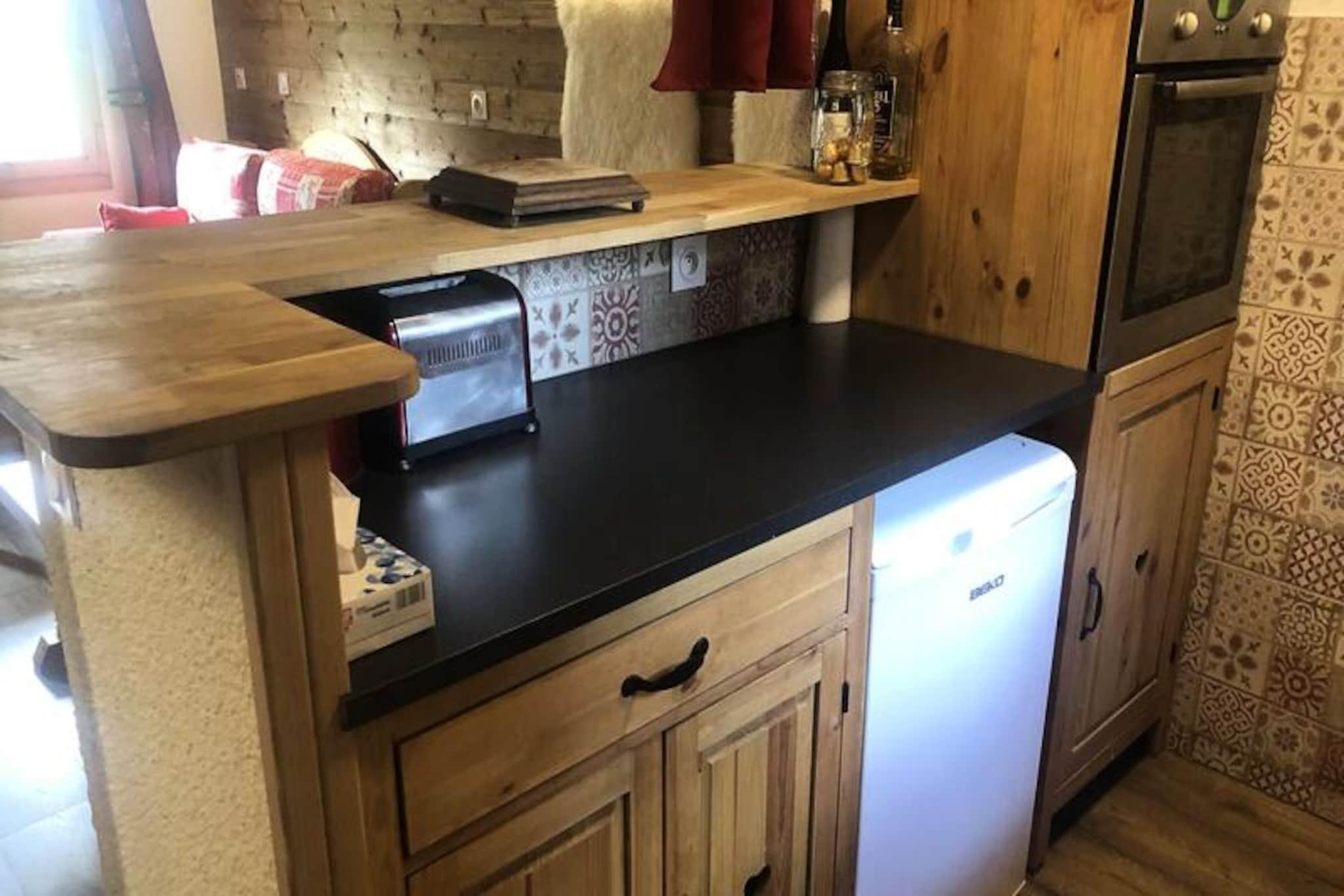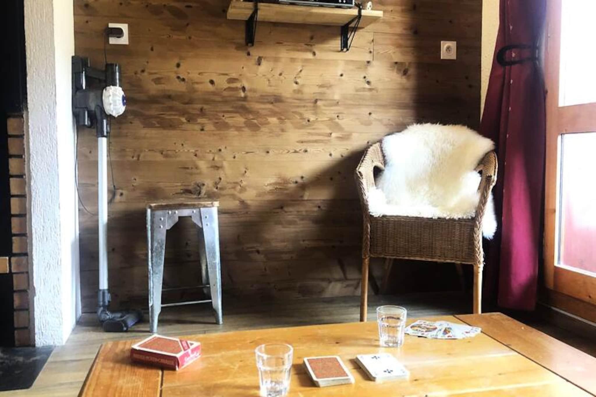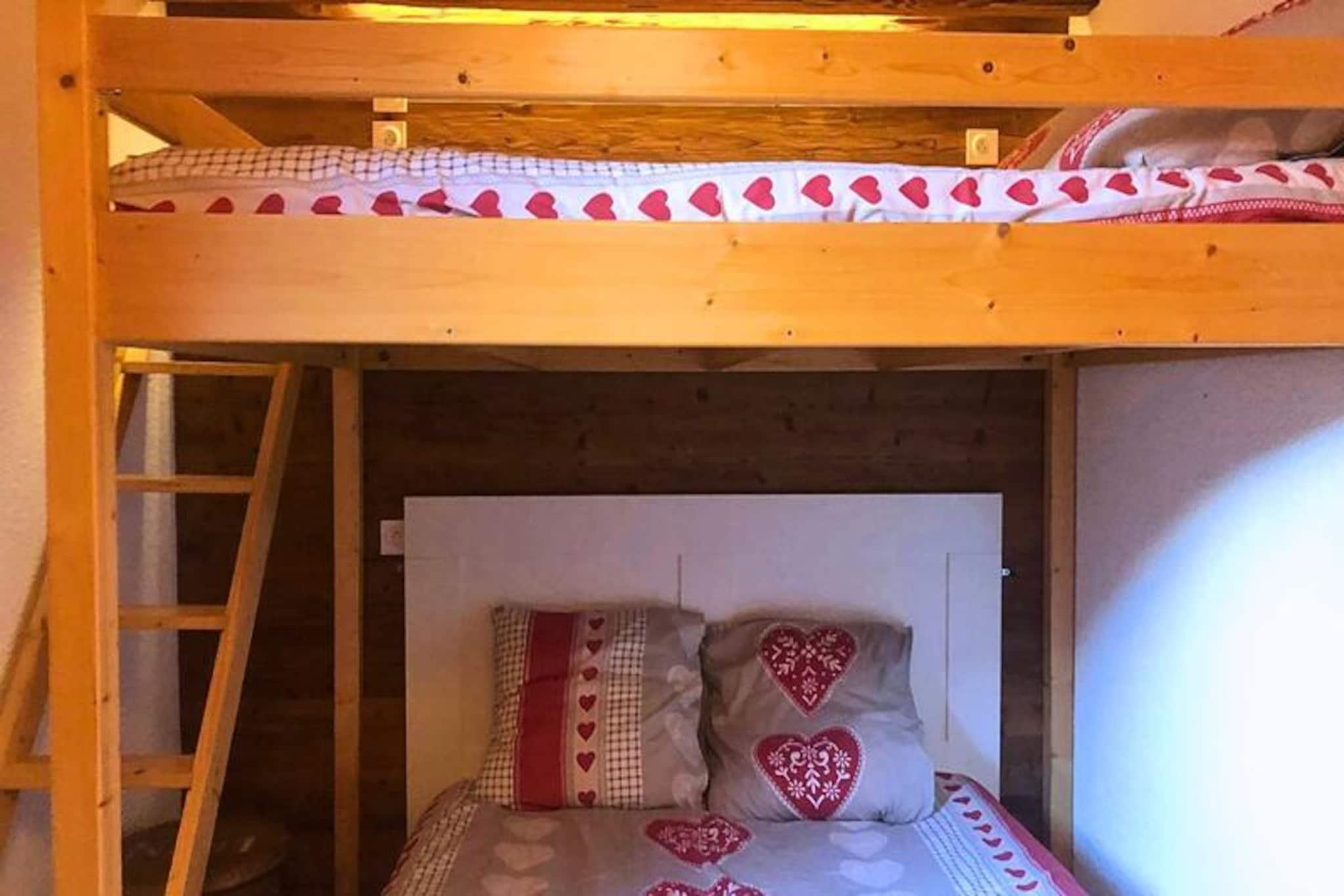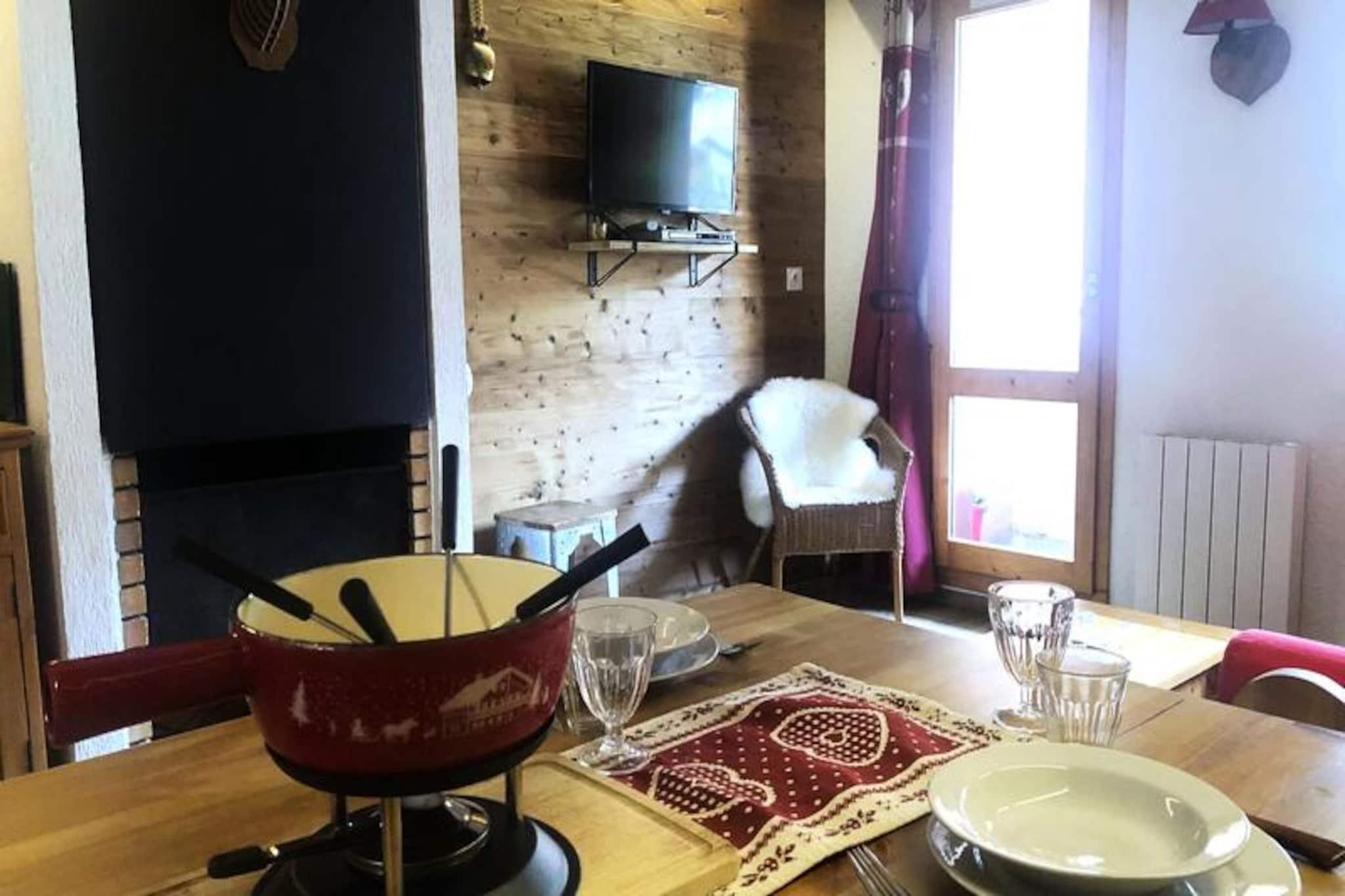 I den charmerende landsby Le Bourg tilbyder denne hyggelige toværelses lejlighed et dejligt alpint tilflugtssted for familier eller små grupper. Forestil dig at vågne op til den friske bjergluft, træde ud på din private balkon og kigge ud på de rolige snedækkede pister kun få skridt væk. Med sin varme atmosfære og gennemtænkte faciliteter er denne lejlighed den perfekte base for en uforglemmelig skiferie i de franske alper. Lejligheden har komfortabel plads til 4 til 6 gæster og har et lyst åbent køkken og opholdsstue med en knitrende pejs, hvor man kan slappe af efter en dag på pisterne. Soveværelset er udstyret med to dobbeltkøjesenge, mens stuen tilbyder en sovesofa til ekstra soveplads. Et fuldt udstyret køkken inkluderer alt fra mikrobølgeovn og ovn til raclette- og fonduesæt, hvilket sikrer hyggelige aftener fyldt med lækre måltider. Moderne bekvemmeligheder som tv, dvd-afspiller og højhastigheds-WiFi gør dit ophold endnu mere behageligt. Denne ejendom ligger ved foden af ??pisterne, kun 5 minutters gang fra ESF-skiskolen og Piou Piou-børneskiklubben, hvilket gør den ideel for familier. I nærheden finder du butikker og restauranter, der kan opfylde alle dine behov. Uanset om du står på ski om vinteren eller vandrer om sommeren, byder det omkringliggende område på uendelige muligheder for eventyr og afslapning. Vælg denne lejlighed på grund af dens uovertrufne beliggenhed, indbydende atmosfære og løftet om at skabe dyrebare minder i hjertet af Alperne.