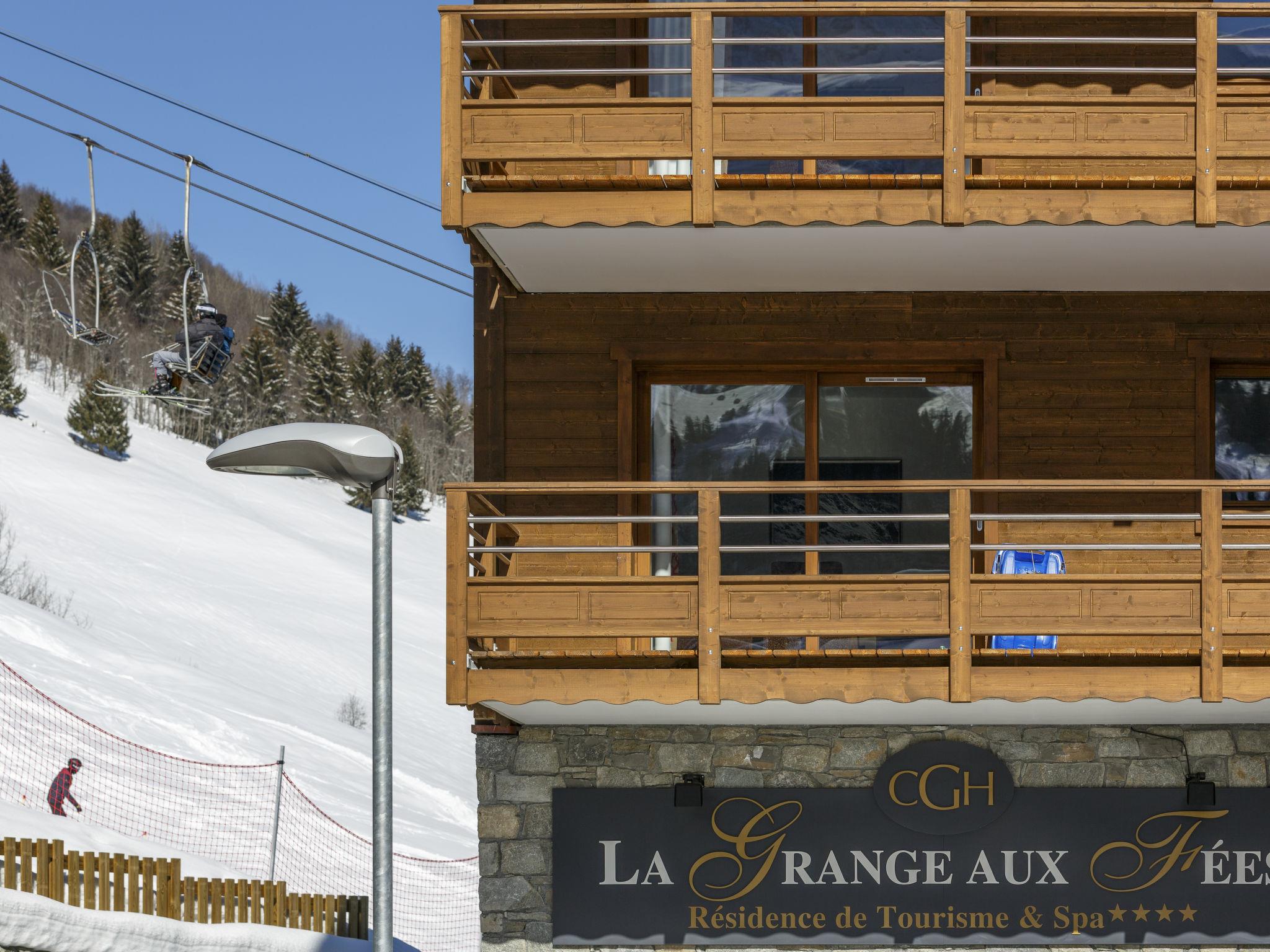 "CGH Rés&Spa Le Grange aux Fées 5*", 3-room apartment 50 to 60 m2. Comfortable and tasteful furnishings: living/sleeping room with 1 double sofabed, dining table and satellite TV. Exit to the balcony. 1 room with 2 beds. 1 room with 1 french bed. Kitchenette (oven, dishwasher, 4 ceramic glass hob hotplates, toaster, kettle, electric coffee machine, steamer). Bath/WC. Heating. Balcony. Balcony furniture. Facilities: telephone, hair dryer. Internet (WiFi, free). Please note: maximum 1 pet/ dog allowed. Smoke alarm, fire extinguisher. This type of flat can also be laid out on 2 levels.