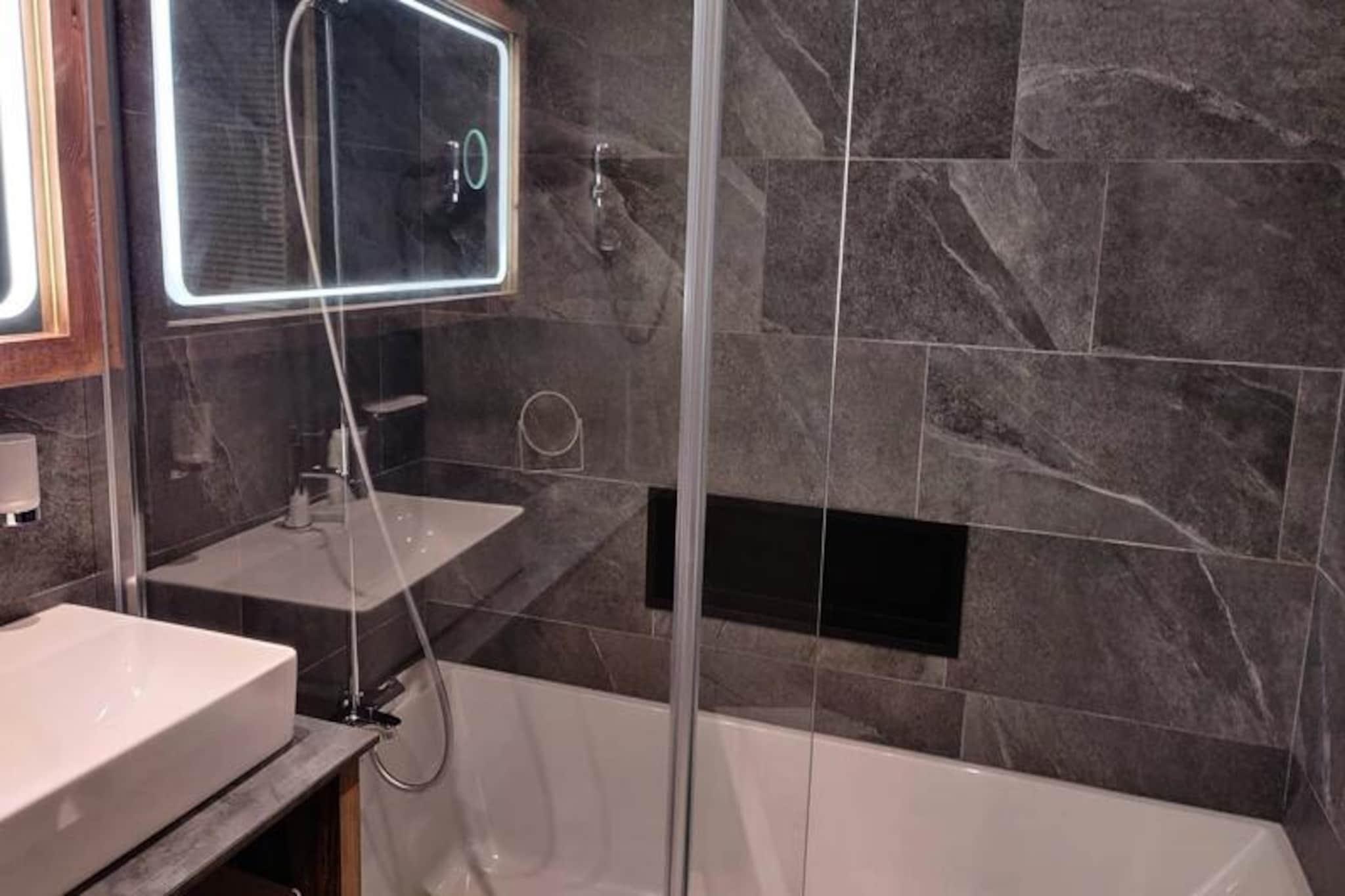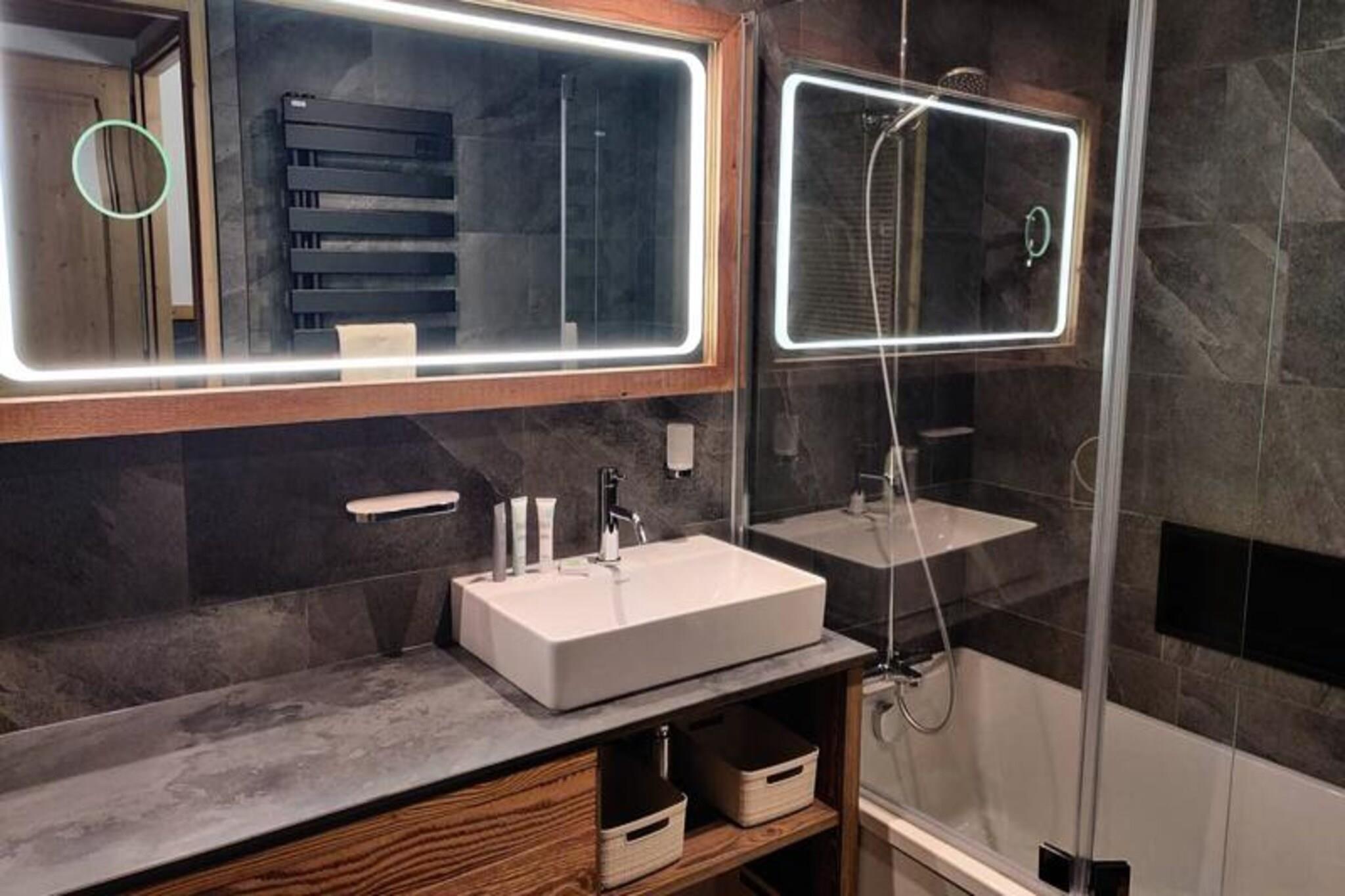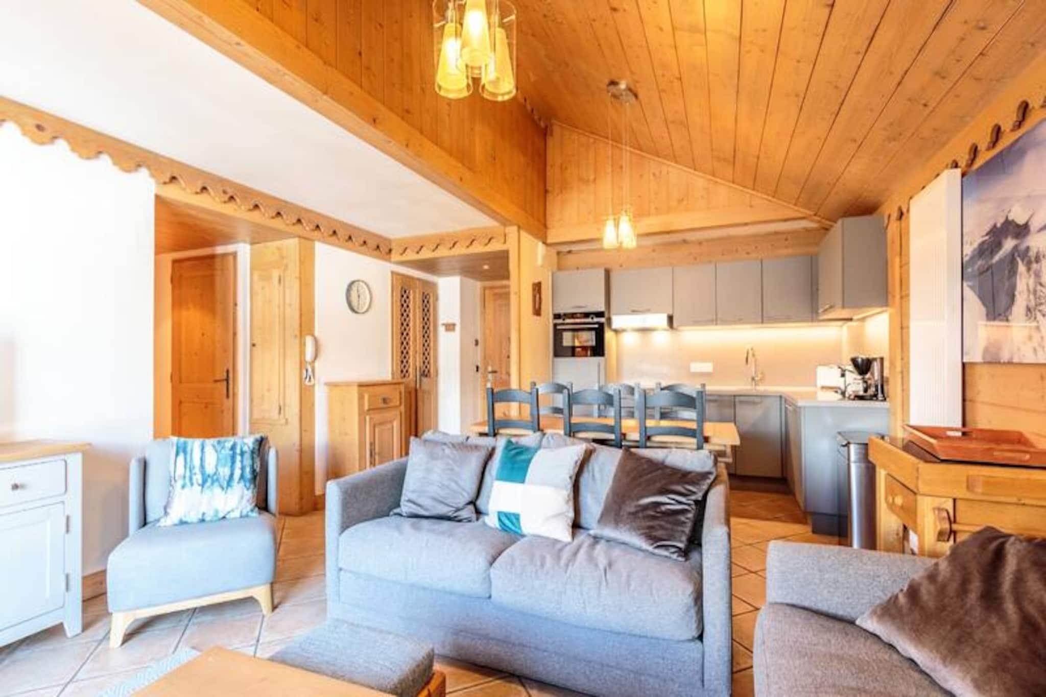 Højt over den maleriske Belleville-dal, hvor den friske alpine luft forfrisker sanserne, tilbyder denne luksuriøse lejlighed på 77 m² et uforglemmeligt tilflugtssted for op til 8 gæster. Fra det øjeblik du træder ud på den sydvestvendte balkon, vil panoramaudsigten over pisterne og den charmerende landsby nedenfor betage dig og sætte tonen for en virkelig magisk bjergflugt. Denne ejendom, der ligger i den prestigefyldte Les Chalets du Gypse-residens, kombinerer moderne komfort med autentisk chaletcharme, hvilket sikrer et ophold, der både er forkælende og afslappende. Indenfor inviterer den rummelige stue dig til at slappe af efter en dag på pisterne med sit hyggelige siddeområde og satellit-tv. Det åbne køkken er fuldt udstyret med high-end apparater, herunder en Nespresso-maskine, keramisk kogeplade og opvaskemaskine, hvilket gør madlavning til en leg. De tre soveværelser i chalet-stil tilbyder et fredeligt tilflugtssted, hvor soveværelset har eget brusebad og direkte adgang til balkonen. Ekstra sovepladser i stuen sikrer rigelig plads til alle. Med gennemtænkte detaljer som skibokse med støvletørrer, gratis Wi-Fi og inkluderet sengetøj er hver eneste detalje blevet tænkt over for din komfort. Ud over lejligheden tilbyder boligen et væld af faciliteter, der kan forbedre dit ophold. Nyd gratis adgang til wellness-området med opvarmet indendørs pool, sauna, hammam, jacuzzi og fitnessrum. Forkæl dig selv med en massage eller behandling mod et ekstra gebyr, eller slap blot af på den store terrasse og nyd solen. Concierge-service på stedet, levering af bageri og partnerskab med skishop gør din ferie endnu mere behagelig, mens den charmerende landsby Saint Martin de Belleville tilbyder en rolig kulisse med sin rige kulturarv og indbydende atmosfære. Beliggende i hjertet af det verdensberømte skiområde Les 3 Vallées, er denne lejlighed en indgang til 600 km sammenhængende pister, der tilbyder uendelige muligheder for skiløb og snowboarding. Om sommeren forvandles regionen til et paradis for vandrere, cyklister og naturelskere. Uanset om du søger eventyr eller ro, lover denne ejendom en uforglemmelig alpin oplevelse, der blander luksus, komfort og bjergenes tidløse skønhed.