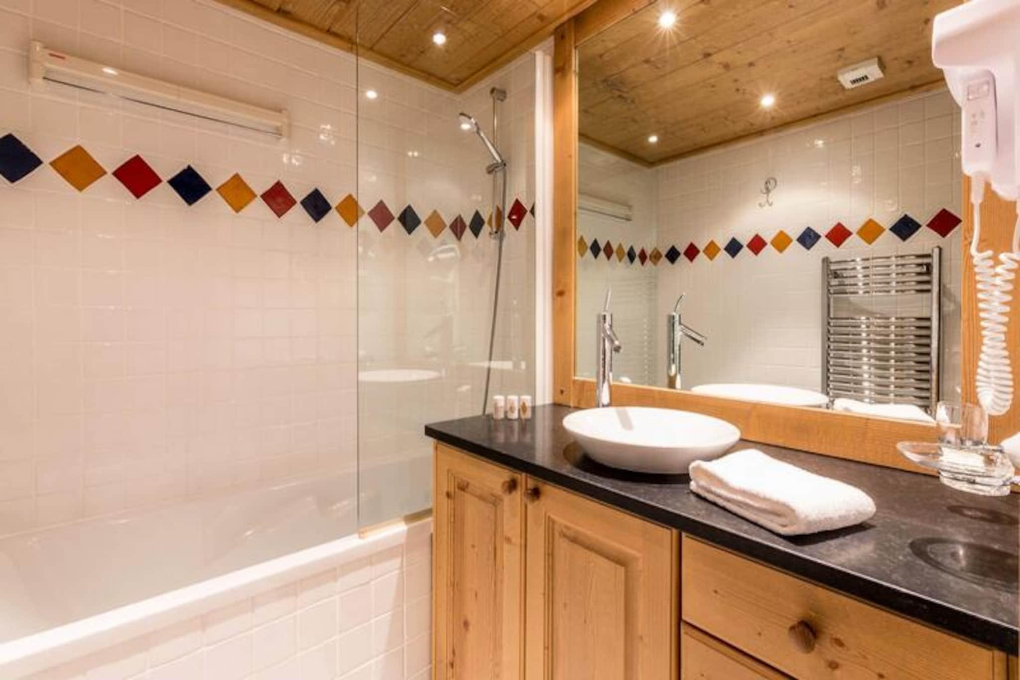 I den maleriske landsby Saint Martin de Belleville tilbyder denne luksuriøse lejlighed med 2 soveværelser en rolig oase med uovertrufne faciliteter. Forestil dig at vågne op til en betagende udsigt over pisterne og den charmerende landsby fra din sydvestvendte balkon, hvor den friske bjergluft forfrisker dine sanser. Dette er et sted, hvor moderne komfort møder alpin charme og skaber de perfekte rammer for en uforglemmelig ferie i hjertet af skiområdet Les 3 Vallées. Lejligheden på 67 m² er omhyggeligt designet med hyggelig indretning i chaletstil og moderne detaljer. Den rummelige stue inviterer dig til at slappe af efter en dag med eventyr, mens det fuldt udstyrede åbne køkken gør det nemt at tilberede måltider med familie eller venner. De to soveværelser tilbyder afslappende tilflugtssteder: det ene med en dobbeltseng og eget brusebad, og det andet med to enkeltsenge. Der er ekstra soveplads i stuen med en udtrækssovesofa. Moderne bekvemmeligheder såsom vaskemaskine, Bluetooth-højttaler og skibokse med støvletørrer sikrer et problemfrit ophold. Gæsterne har gratis adgang til boligens wellness-område med opvarmet indendørs pool, sauna, hammam, jacuzzi og fitnessrum. Efter at have stået på ski eller udforsket landsbyen kan I forkæle jer selv med en beroligende massage eller slappe af i solariet. Boligen tilbyder også concierge-service, mulighed for at levere bageri og partnerskaber med lokale skibutikker for ekstra bekvemmelighed. Saint Martin de Belleville er en skjult perle i Alperne, der blander autentisk charme med adgang til skisportsstedet Les 3 Vallées i verdensklasse. Uanset om I er her for de uberørte pister, den rolige natur eller landsbyens rige kulturarv, er denne lejlighed den perfekte base for en foryngende bjergferie.