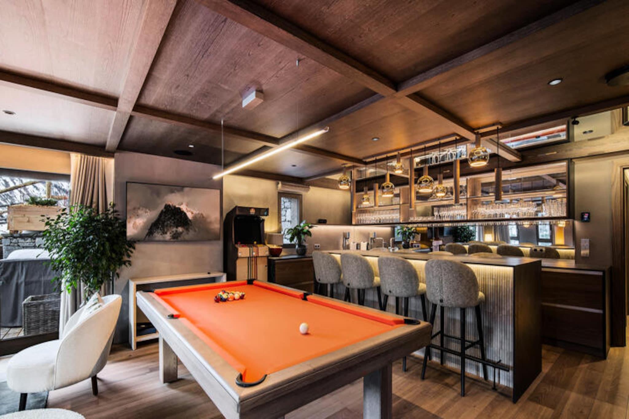 I den maleriske landsby Saint-Martin-de-Belleville, hvor alpin charme møder moderne luksus, ligger en ekstraordinær hytte designet til uforglemmelige ophold. Denne 630 m² store oase er et mesterværk af elegance og komfort, der tilbyder en betagende udsigt over bjergene og en rolig atmosfære, perfekt til familier eller grupper på op til 14 gæster. Forestil dig at vågne op til den friske bjergluft, forkæle dig selv med luksuriøse faciliteter og skabe minder i omgivelser, der føles som et privat tilflugtssted, men alligevel er tæt på landsbyens pulserende hjerte. Fordelt på fire etager kan hytten prale af en række exceptionelle funktioner. Stueetagen byder dig velkommen med et skirum og et fitnesscenter, der sikrer bekvemmelighed og fitness under dit ophold. Første etage er et fristed for afslapning med en opvarmet indendørs pool, et nordisk bad, en sauna, et dampbad og endda en privat biograf. Den overdækkede terrasse og vinkælderen tilføjer et strejf af elegance, mens baren indbyder til hyggelige aftener. Anden etage tilbyder fire dobbeltværelser med eget badeværelse og en sovesal med fire senge, hvilket sikrer, at alle nyder privatliv og komfort. De øverste etager rummer en rummelig opholdsstue med pejs, en spisestue, et fuldt udstyret køkken og et bibliotek, alt sammen designet til at forbedre din alpine ferie. Denne hytte ligger kun få øjeblikke fra pisterne og lokale butikker og er den perfekte base for at udforske det berømte skiområde Les Trois Vallées. Uanset om du begiver dig ud på pisterne, nyder gourmetmåltider tilberedt af din private kok eller blot slapper af i det nordiske bad under stjernerne, er hvert øjeblik her skabt til forkælelse. Med daglig rengøring, en dedikeret hyttemanager og en shuttle-service inden for resortet er dit ophold lige så ubesværet, som det er luksuriøst. Vælg denne hytte for en uovertruffen alpin oplevelse, hvor hver eneste detalje er omhyggeligt udvalgt for at sikre afslapning, eventyr og værdsatte minder i hjertet af de franske alper.