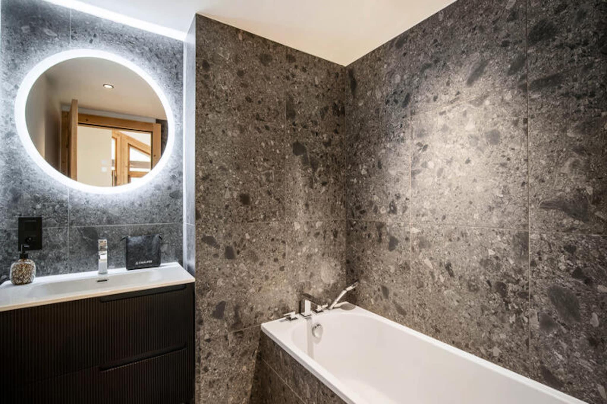 I den maleriske landsby Le Bettaix, beliggende mellem Saint-Martin de Belleville og Les Menuires, tilbyder denne fantastiske duplexlejlighed en drømmeagtig alpin flugt. Med sin misundelsesværdige beliggenhed ved foden af ??pisterne har du direkte adgang til det verdensberømte Les 3 Vallées, det største skiområde på planeten. Forestil dig at vågne op til den friske bjergluft, træde ud på din private terrasse og begive dig direkte ud på de uberørte pister for en uforglemmelig dag med skiløb eller snowboarding. \n\nDenne nybyggede duplex er omhyggeligt designet til at rumme op til 12 gæster, hvilket gør den perfekt til familier eller vennegrupper. Stueetagen har tre elegante dobbeltværelser, hver med eget brusebad, og to med adgang til balkon. Et dedikeret wellness-område med sauna og tv-/spilstue inviterer dig til at slappe af efter en aktiv dag. Første sal kan prale af et hyggeligt børneværelse med to enkeltsenge og en køjeseng, et ekstra dobbeltværelse og en rummelig stue, der åbner ud til en terrasse med havemøbler. Det semi-åbne køkken er fuldt udstyret, så I kan tilberede solide måltider, som I kan nyde sammen. Moderne faciliteter såsom et skirum med støvlevarmer, et vaskerum og Wi-Fi sikrer et behageligt og bekvemt ophold.\n\nLe Bettaix er i sig selv en charmerende og rolig landsby, der tilbyder et fredeligt tilflugtssted, mens den kun ligger en kort køretur fra de livlige feriesteder Les Menuires og Saint-Martin de Belleville. Uanset om du udforsker de store skråninger i Les 3 Vallées, forkæler dig selv med lokalt Savoyard-køkken eller blot nyder den betagende alpine udsigt, placerer denne ejendom dig i hjertet af det hele. Med sin blanding af luksus, komfort og uovertruffen beliggenhed lover denne duplex en uforglemmelig bjergferie i enhver sæson.
