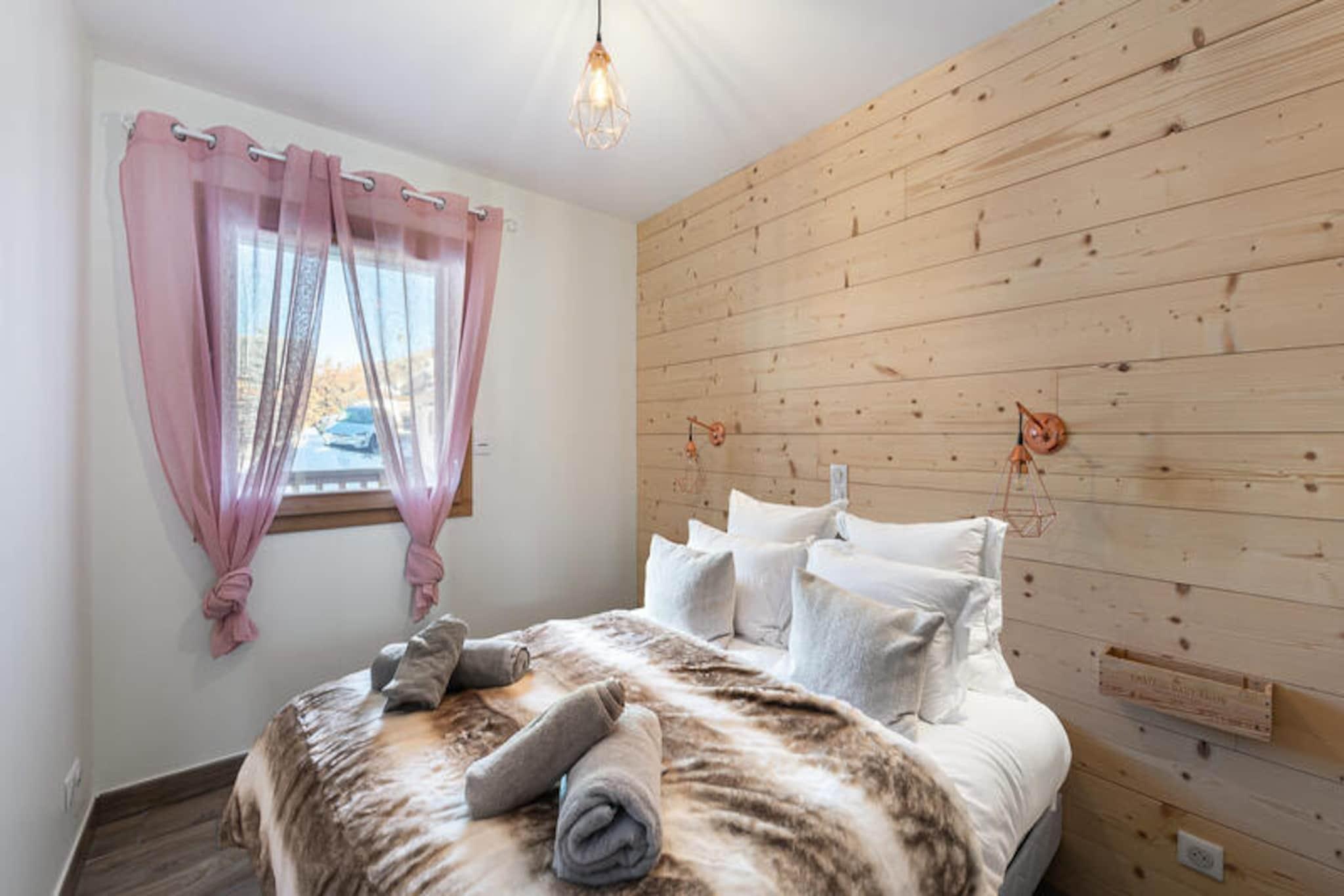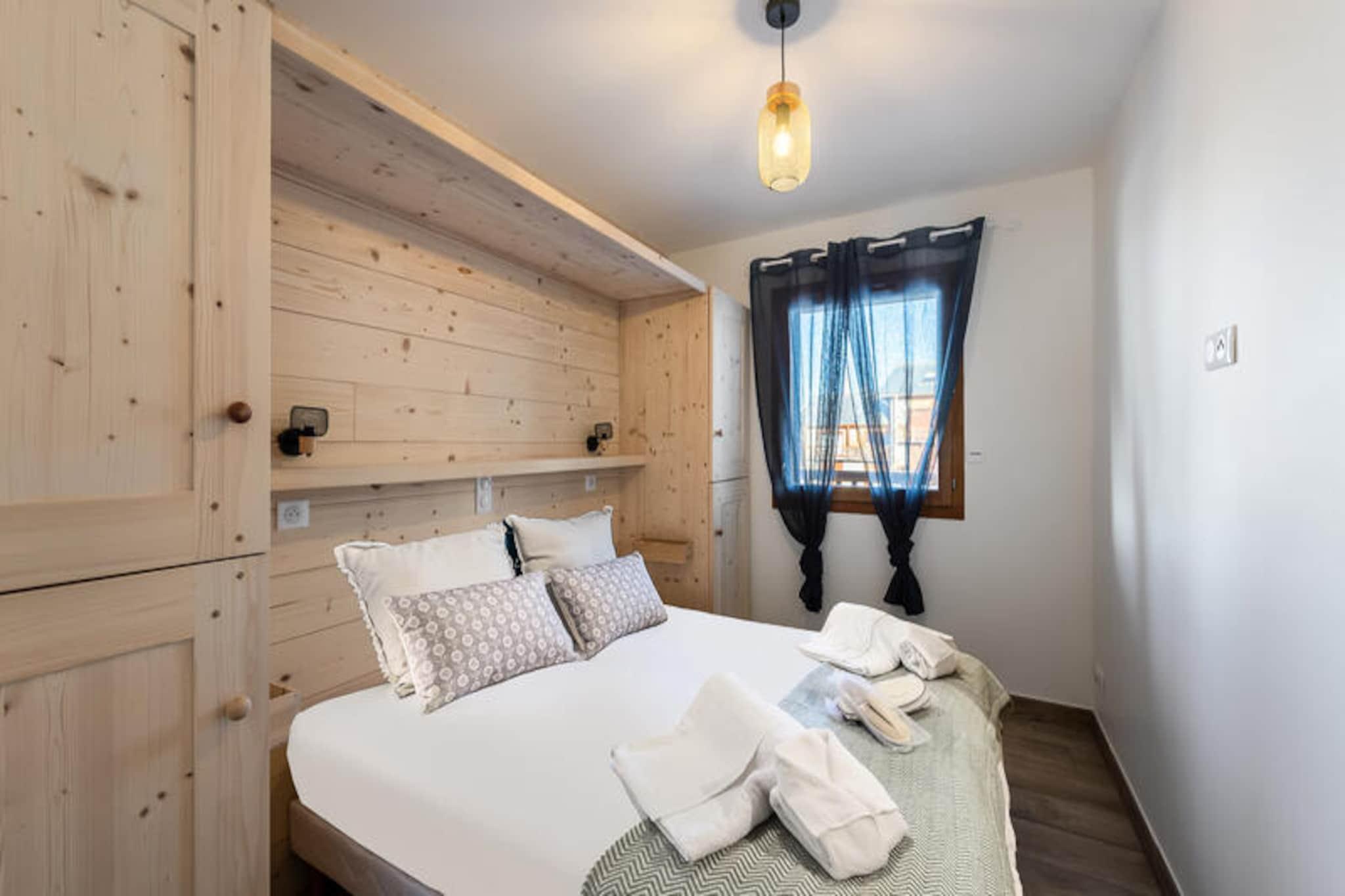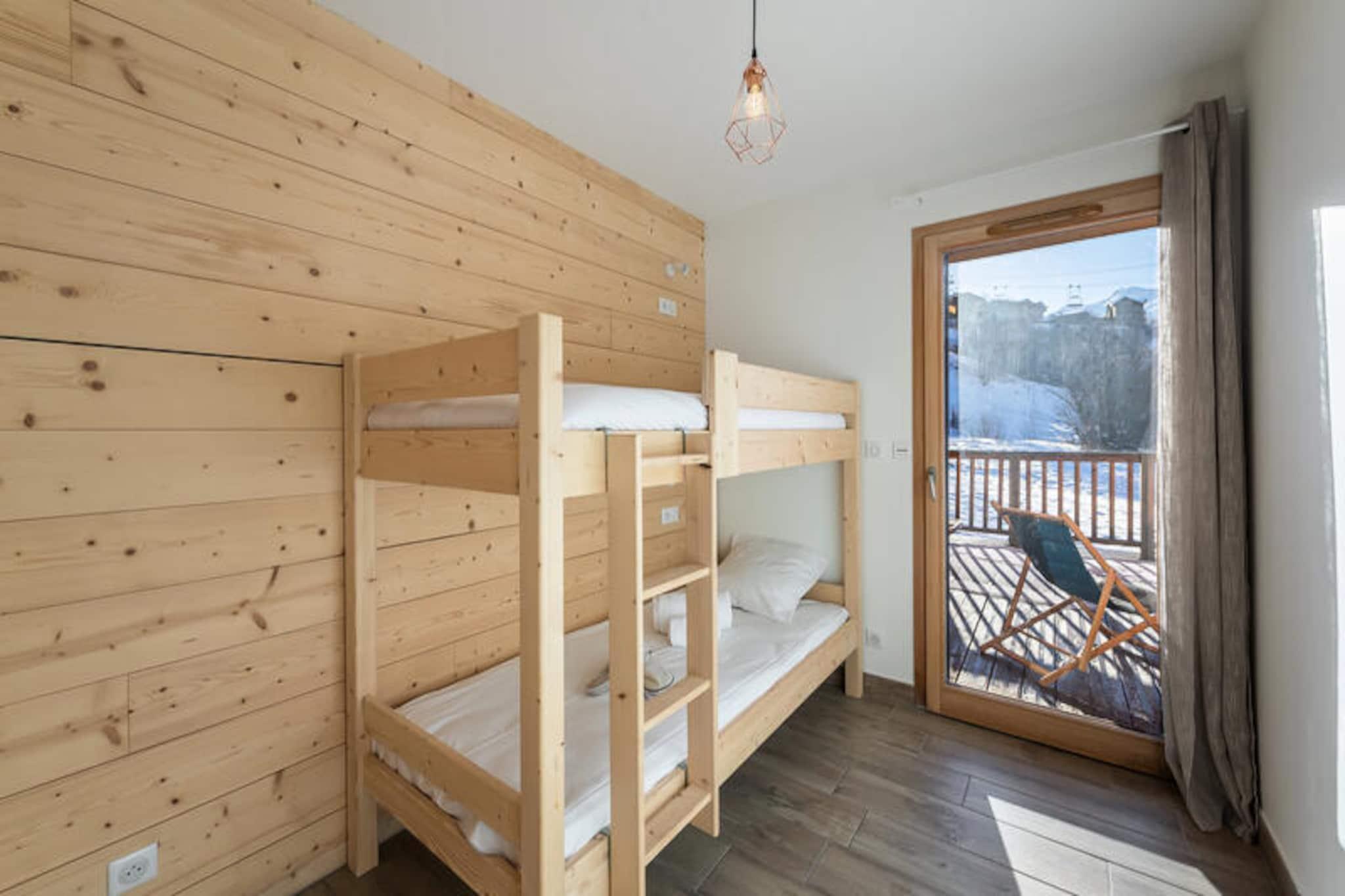I den fredfyldte landsby Levassaix, kun 1 km fra det pulserende Les Menuires, tilbyder Etoile 4-lejligheden et exceptionelt alpint tilflugtssted, hvor moderne luksus møder bjergenes charme. Med betagende udsigt og ægte ski-in/ski-out-adgang er denne bolig et paradis for både vintersportsentusiaster og naturelskere. Forestil dig at vågne op til den friske bjergluft, træde ud på din rummelige terrasse og kigge ud på de snedækkede tinder, før du tager direkte ud på pisterne for en dag med eventyr. \n\nDenne lejlighed, der har fået 5 Gold Snowflakes-vurderinger, er designet til både komfort og elegance og har plads til op til 8 gæster. Den har to dobbeltværelser med eget badeværelse med bruser, et tredje dobbeltværelse og et hyggeligt køjesengsværelse, der er perfekt til børn. Den åbne opholdsstue kan prale af et fuldt udstyret køkken, en indbydende stue og en spiseplads, der er ideel til at dele måltider og historier efter en dag på pisterne. Yderligere faciliteter inkluderer et vaskerum, et skirum og en garage med parkeringsplads, hvilket sikrer bekvemmelighed under hele dit ophold. Levassaix tilbyder en rolig tilflugtssted kun få øjeblikke fra den livlige atmosfære i Les Menuires. Udforsk det vidtstrakte skiområde Les Trois Vallées, nyd lokal savoyardsk mad, eller slap blot af i din luksuriøse lejlighed. Uanset om du er her for spændingen ved skiløb eller roen i bjergene, er Etoile 4 din port til uforglemmelige alpine minder.