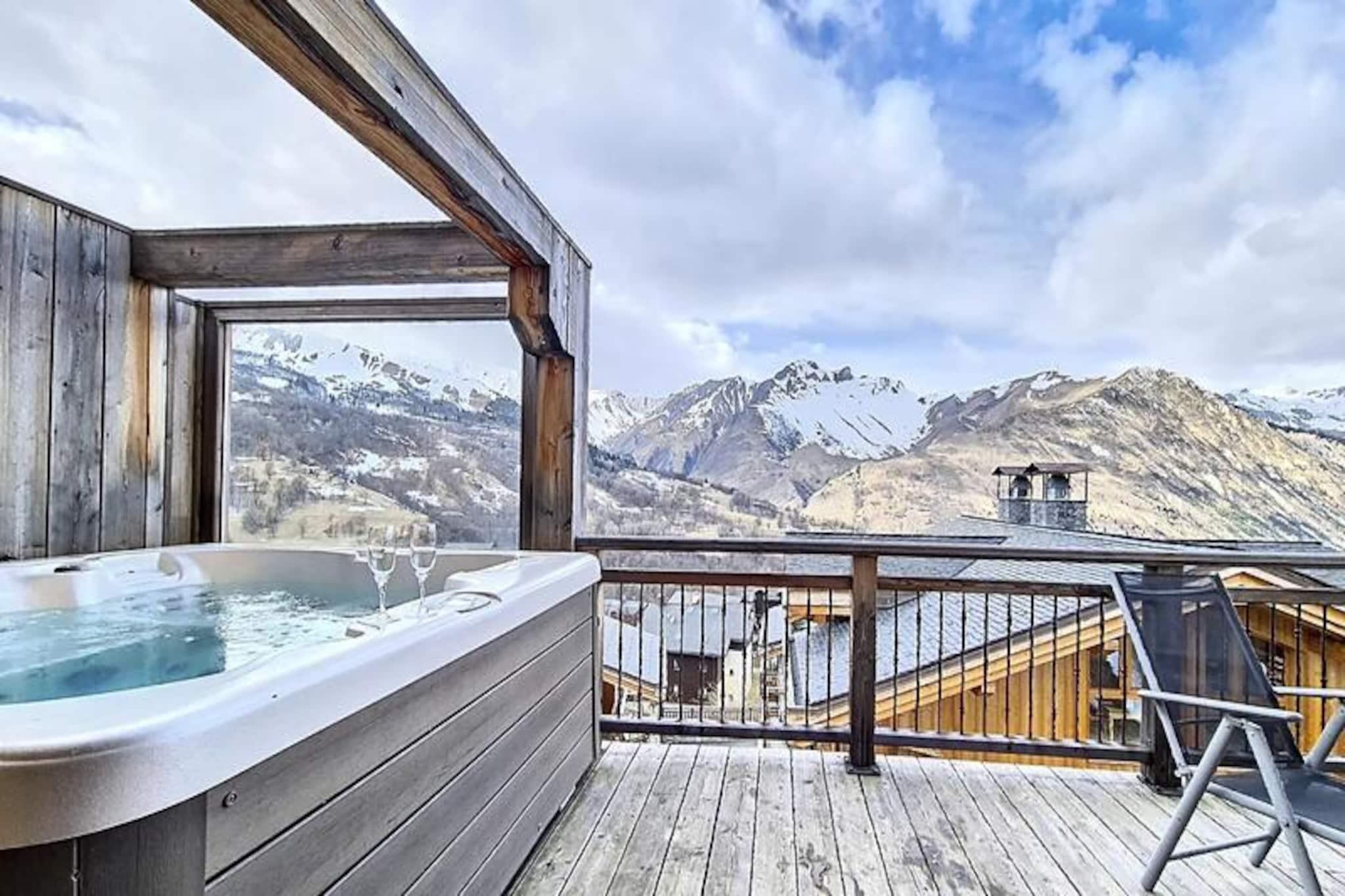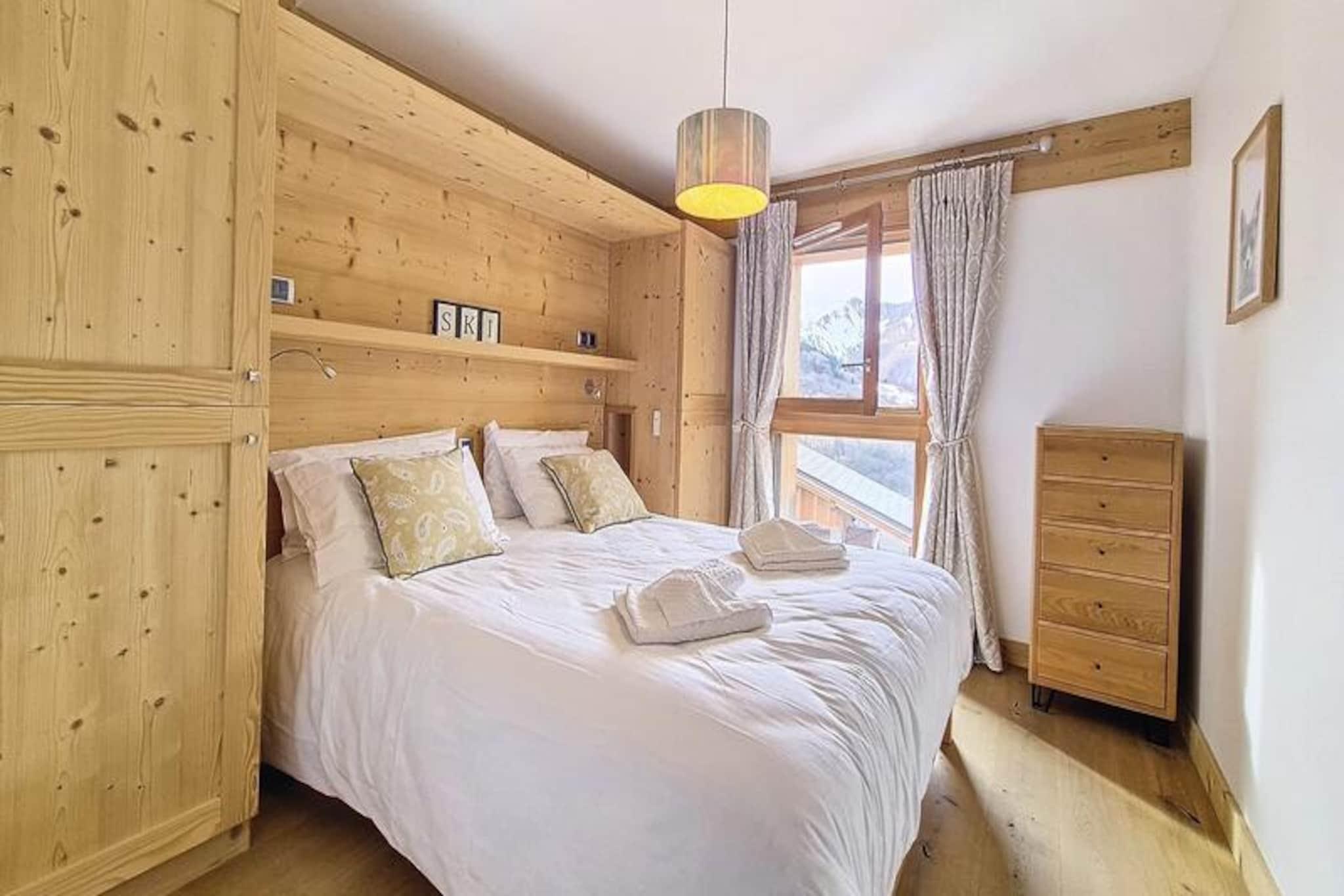 I hjertet af den maleriske landsby Caseblanche tilbyder skihytten CERF D'OR et uovertruffent alpint tilflugtssted kun få skridt fra Saint-Martin de Belleville-svævebanen. Forestil dig at vågne op til en betagende udsigt over de omkringliggende tinder, nippe til kaffe på den vestvendte terrasse og planlægge din dag i det verdensberømte skiområde Les Trois Vallées. Denne luksuriøse hytte kombinerer moderne elegance med hyggelig bjergcharme og skaber de perfekte rammer for uforglemmelige øjeblikke med familie og venner. Uanset om du slapper af i den udendørs jacuzzi eller varmer dig ved pejsen efter en dag på pisterne, er hver eneste detalje omhyggeligt designet til din komfort og nydelse. Hytten strækker sig over imponerende 200 m² på tre etager og er udstyret med en elevator for nem adgang. Den lyse opholdsstue på niveau 0 inviterer til afslapning med sit åbne køkken med avancerede apparater, en vinkælder og en indbydende lounge, der åbner ud til terrassen. Seks smukt indrettede soveværelser, hver med eget badeværelse, sikrer privatliv og afslappende nætter for op til 14 gæster. Yderligere faciliteter inkluderer en sauna, skibokse med støvle- og handsketørrer samt en privat garage til to køretøjer. Hytten er røgfri og kæledyrsfri, hvilket sikrer et uberørt miljø for alle gæster. Ud over hytten venter charmen ved Saint-Martin de Belleville. Udforsk den nærliggende sportsbutik og bjergbrasserie, eller begiv dig ud i det store skiområde Les Trois Vallées for endeløse eventyr. Om sommeren forvandler vandrestier og alpine enge området til et paradis for naturelskere. Med concierge-service er alle aspekter af dit ophold skræddersyet til perfektion. Vælg CERF D'OR for en luksuriøs ferie, hvor de franske alpers skønhed møder enestående komfort og bekvemmelighed.