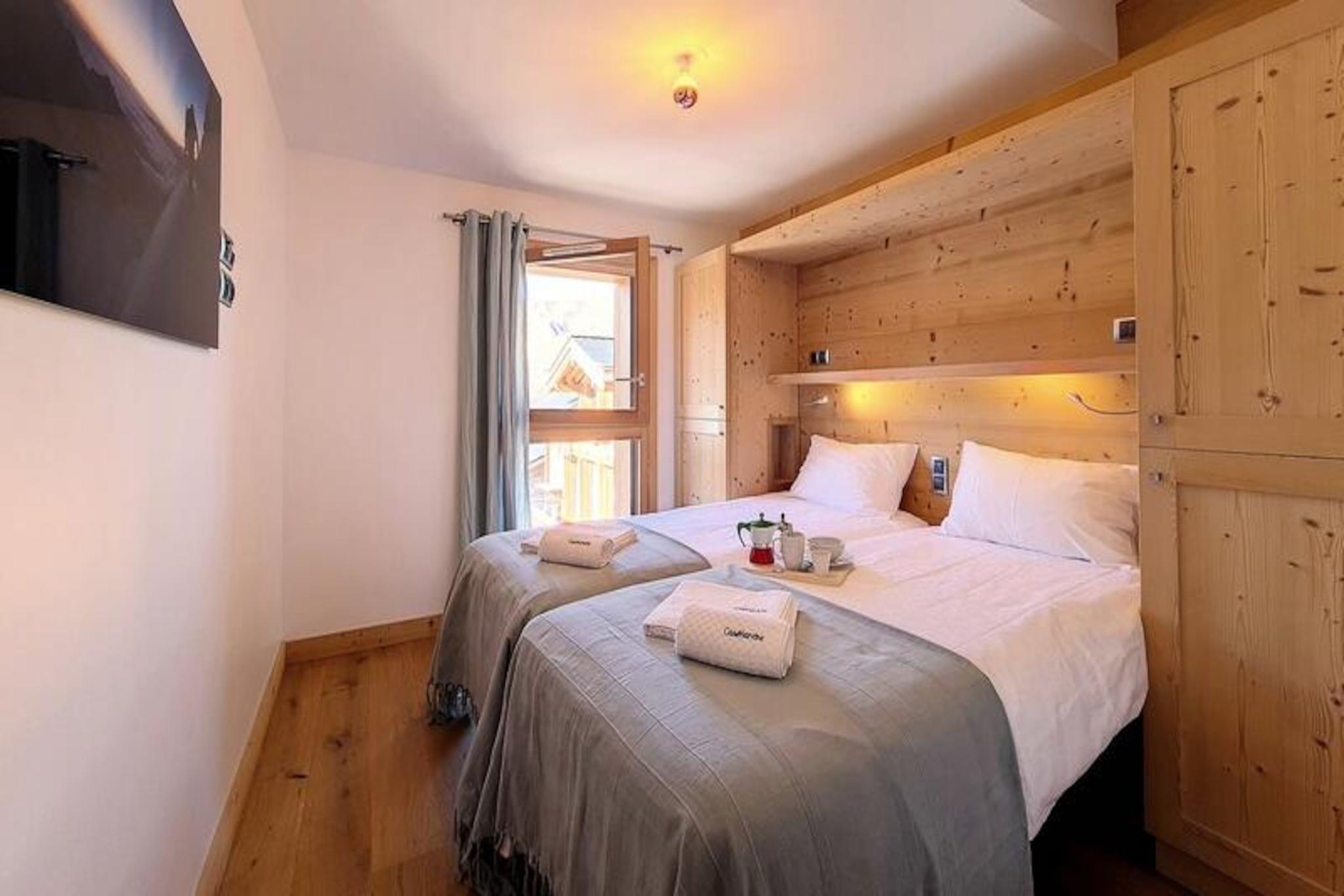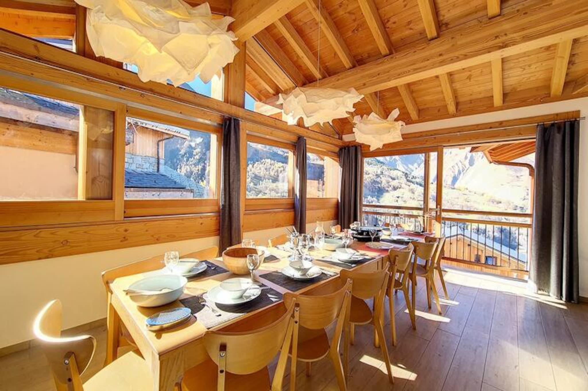 I den maleriske landsby Caseblanche, hvor alpin charme møder moderne luksus, inviterer Chalet LITOTE dig til at opleve en uforglemmelig bjergferie. Kun 50 meter fra Saint Martin-svævebanen tilbyder denne rummelige 200 m² store hytte direkte adgang til det verdensberømte skiområde Les Trois Vallées, hvilket gør det til en drømmedestination for vintersportsentusiaster. De rolige omgivelser kombineret med bekvemmelighederne ved nærliggende faciliteter skaber den perfekte balance mellem afslapning og eventyr. \n\nTræd indenfor og oplev en oase af komfort og stil. Hytten kan prale af syv soveværelser med eget badeværelse, hvilket sikrer privatliv og bekvemmelighed for op til 16 gæster. Hjertet i hjemmet er den hyggelige opholds- og spisestue med en knitrende pejs og en 15 m² stor balkon, der tilbyder en betagende udsigt over bjergene. Det fuldt udstyrede åbne køkken er perfekt til at tilberede solide måltider efter en dag på pisterne. Yderligere faciliteter inkluderer en sauna til ultimativ afslapning, en tv-stue til afslapning og skibokse med støvle- og handsketørrer for ekstra bekvemmelighed.\n\nUd over hytten tilbyder landsbyen Caseblanche en sportsbutik og et bjergbrasserie, mens gondolliften giver problemfri adgang til pisterne. Uanset om du cykler gennem frisk puddersne eller udforsker den charmerende landsby Saint-Martin-de-Belleville, er der noget for enhver smag. Om sommeren forvandles området til et paradis for vandrere og naturelskere med stier, der afslører Alpernes fantastiske skønhed.\n\nChalet LITOTE er mere end bare et sted at bo - det er en indgang til at skabe dyrebare minder med familie og venner. Fra de luksuriøse faciliteter til den uovertrufne beliggenhed er hver eneste detalje omhyggeligt designet for at sikre en virkelig exceptionel ferieoplevelse.