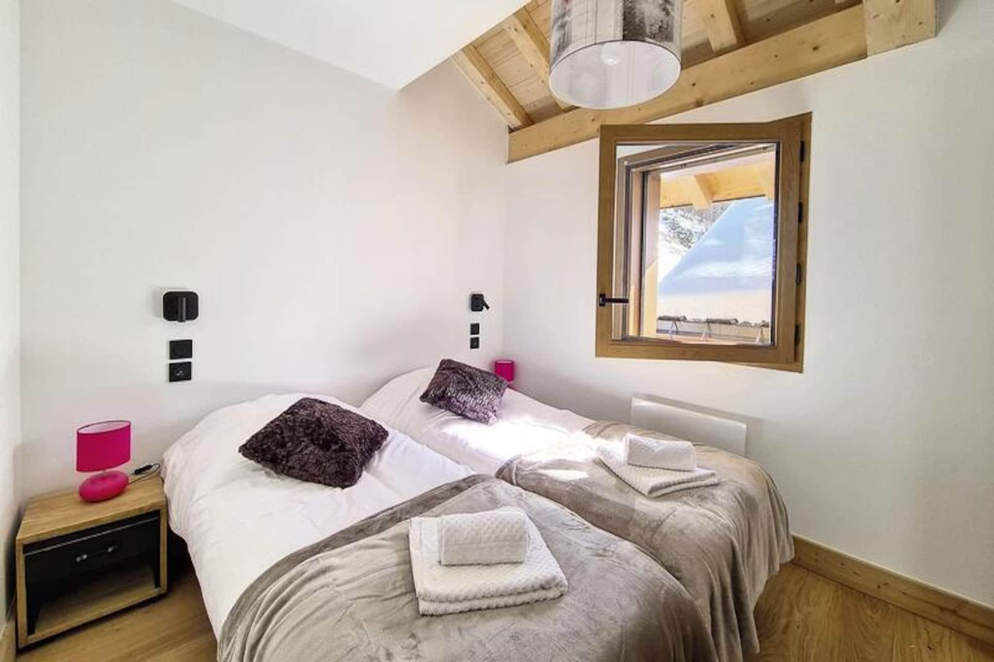 I den fredfyldte landsby Le Bettex, omgivet af den majestætiske Belleville-dal, tilbyder Chalet Ydilia et luksuriøst alpint tilflugtssted kun 400 meter fra Bettex-stoleliften. Her møder ro eventyr med direkte adgang til skisportsstedet Les Menuires i verdensklasse og charmen ved Saint Martin de Belleville kun 4 kilometer væk. Forestil dig at vågne op til panoramaudsigt over bjergene, indånde den friske alpine luft og træde ind i en dag med spændende udendørsaktiviteter eller fredelig afslapning. \n\nDenne nybyggede chalet, der strækker sig over 138 kvadratmeter på tre etager, er designet til at rumme op til 10 gæster i komfort og stil. Stueetagen har to soveværelser med eget badeværelse, herunder et dobbeltværelse og et værelse med to enkeltsenge, begge udstyret med tv og private badeværelser. En infrarød sauna til to tilføjer et strejf af forkælelse. Første sal kan prale af et åbent køkken og opholdsstue med en hyggelig pejs, en spiseplads og en terrasse med betagende udsigt over den omkringliggende dal. Et tredje soveværelse og et luksuriøst badeværelse med dobbelt håndvask og badekar fuldender denne etage. Øverste etage er et paradis for familier med et soveværelse i sovesalstil til fire personer, et legeområde til børn og et ekstra brusebad med separat toilet.\n\nChalet Ydilia er udstyret med moderne faciliteter, herunder WiFi, et skiskab med støvlevarmere og en parkeringsplads. Om vinteren kan gæsterne nyde den ekstra bekvemmelighed af redte senge ved ankomst og sengetøj. Chaleten tilbyder også betænksomme detaljer som brætspil, børnelegetøj og mulighed for levering af frisk brød.\n\nUanset om du udforsker de store skiløjper, vandrer på naturskønne stier eller blot slapper af ved pejsen, lover Chalet Ydilia et uforglemmeligt ophold i hjertet af de franske alper. Perfekt til familier og grupper, der søger både eventyr og afslapning, er denne chalet din port til alpin lyksalighed.