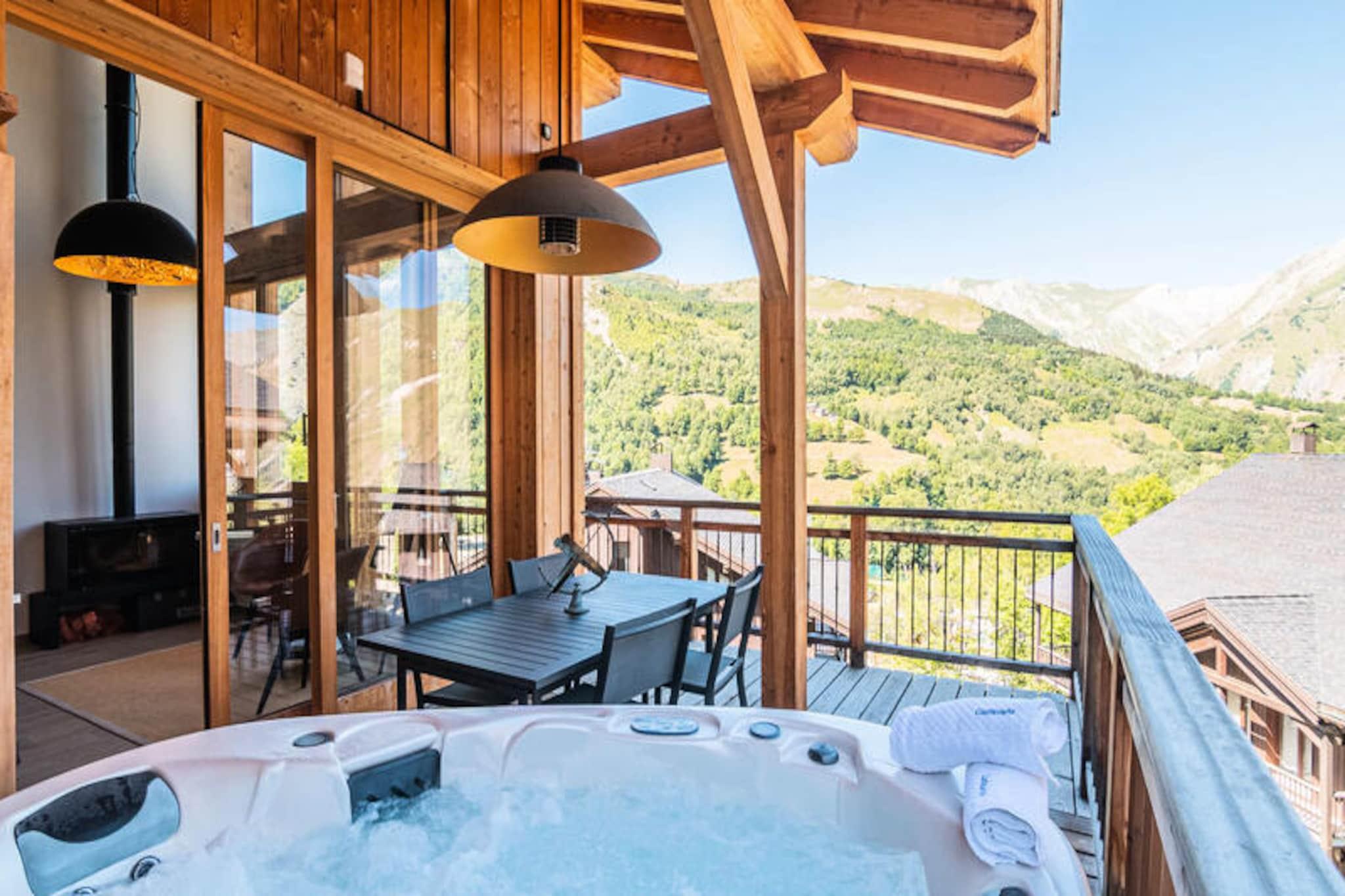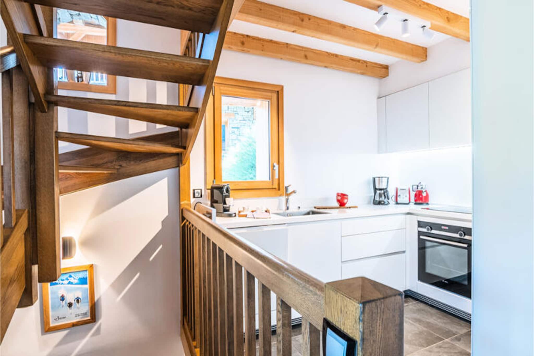 I den rolige landsby Caseblanche, hvor charmen fra alpin tradition møder moderne luksus, ligger det storslåede chalet Monte Corona. Kun 50 meter fra Saint Martin-gondolbanen tilbyder dette eksklusive tilflugtssted uovertruffen adgang til det berømte skiområde Les Trois Vallées, hvilket gør det til en drømmedestination for vintersportsentusiaster. Omgivet af betagende bjergudsigter inviterer chaleten dig til at fordybe dig i de franske alpers skønhed. \n\nDette smagfuldt møblerede chalet strækker sig over imponerende 130 m² og har plads til op til 10 gæster, hvilket sikrer både komfort og elegance. Stueetagen har en lys spiseplads med panoramaudsigt, der åbner ud til en 20 m² stor terrasse med privat jacuzzi og udendørs spiseplads. Det åbne køkken er fuldt udstyret med moderne apparater, herunder en Nespresso-maskine, perfekt til at lave din morgenkaffe. Første sal kan prale af en hyggelig 20 m² stor stue med en stor hjørnesofa, tv og spillekonsol, der tilbyder et varmt sted at slappe af efter en dag på pisterne. De nederste etager rummer fem smukt indrettede soveværelser, herunder et ensuite-badeværelse, samt flere badeværelser, en sauna og et vaskerum for ekstra bekvemmelighed.\n\nFaciliteterne på stedet inkluderer et skirum med direkte adgang til pisten, to overdækkede parkeringspladser og concierge-service. En sportsbutik og et bjergbrasserie ligger kun få skridt væk, hvilket sikrer, at alt hvad du behøver er inden for rækkevidde. Uanset om du står på ski på de uberørte pister, slapper af i saunaen eller nyder jacuzzi under stjernerne, er hvert øjeblik her designet til at skabe uforglemmelige minder.\n\nVælg chalet Monte Corona for dets exceptionelle beliggenhed, luksuriøse faciliteter og den unikke mulighed for at opleve magien i De Tre Dale. Uanset om det er til eventyr eller afslapning, lover dette alpine paradis en ekstraordinær ferie.