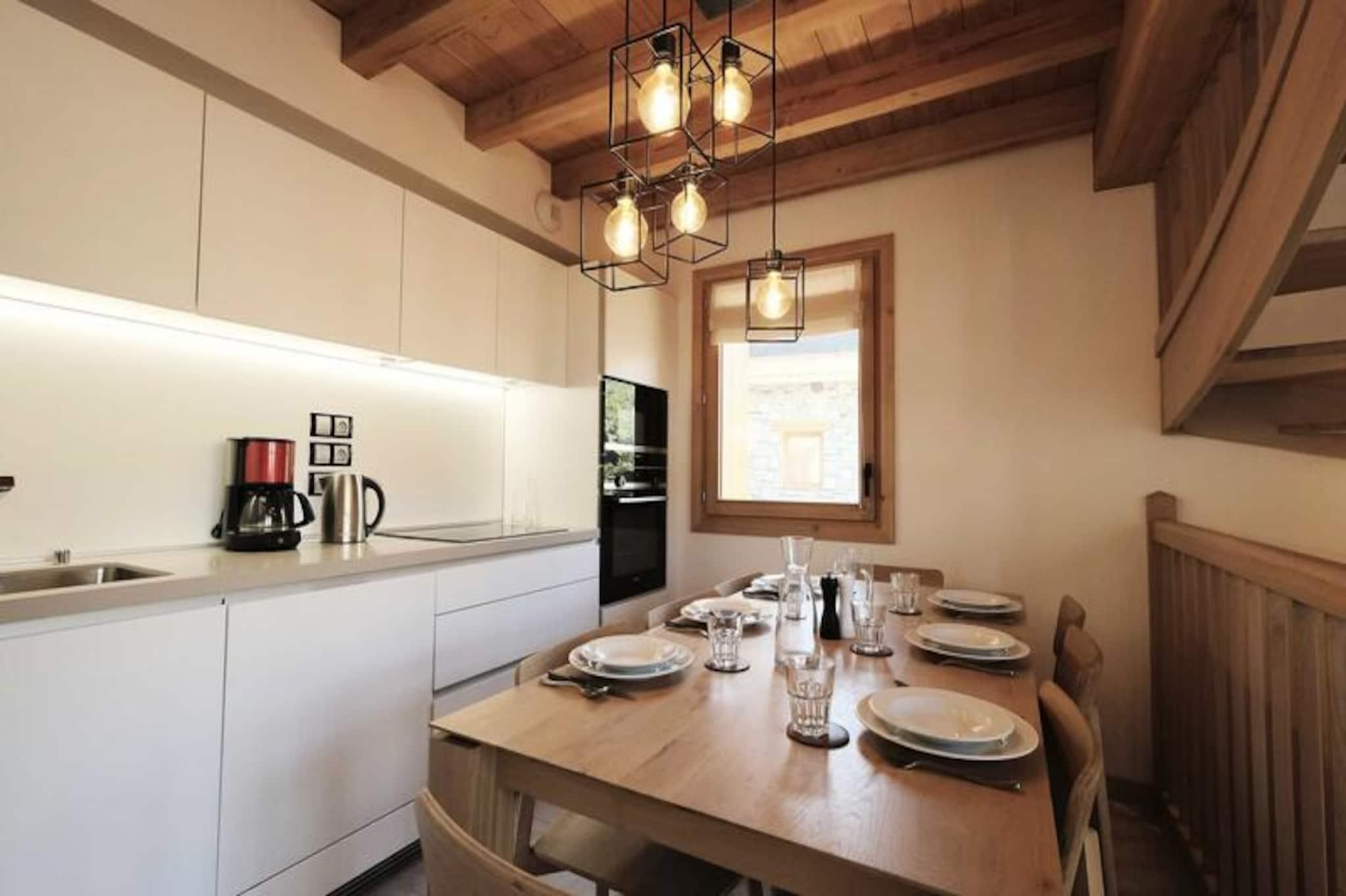 I den maleriske landsby Caseblanche, hvor alpin charme møder moderne luksus, tilbyder Chalet Retrouvailles et uforglemmeligt bjergparadis. Kun 50 meter fra Saint Martin-svævebanen tilbyder dette chalet direkte adgang til det verdensberømte skiområde Les Trois Vallées, hvilket gør det til et paradis for vintersportsentusiaster. Uanset om du er her for at sno dig gennem uberørte pister eller blot nyde den betagende udsigt over bjergene, lover dette chalet en uforglemmelig ferie. \n\nTræd indenfor i dette smukt designede 90 m² store chalet, hvor moderne elegance blandes problemfrit med hyggelig alpin indretning. Stueetagen har et fuldt udstyret køkken med moderne apparater, en rummelig spiseplads og en komfortabel stue med brændeovn og et vægmonteret fjernsyn. Den 18 m² store terrasse inviterer dig til at slappe af med en varm drink, mens du nyder den friske bjergluft. Underetagen kan prale af tre soveværelser, herunder et dobbeltværelse med eget badeværelse og to værelser med to enkeltsenge, samt et luksuriøst badeværelse med spabad. På første sal finder du et privat soveværelse med eget badeværelse, bruseniche og påklædningsværelse, der tilbyder det perfekte fristed efter en dag på pisterne.\n\nUd over hytten tilbyder Caseblanche en sportsbutik og et charmerende bjergbrasserie, der sikrer, at alle dine behov bliver opfyldt kun få skridt fra din dør. Den nærliggende gondolbane giver problemfri adgang til de vidtstrakte 3 Vallées, hvor uendelige muligheder for skiløb, snowboarding og vandreture venter. Om sommeren forvandles regionen til et paradis for naturelskere med naturskønne stier og livlige alpine enge.\n\nUanset om du besøger med familie eller venner, kombinerer Chalet Retrouvailles komfort, bekvemmelighed og de franske alpers charme for at skabe en virkelig exceptionel ferieoplevelse.