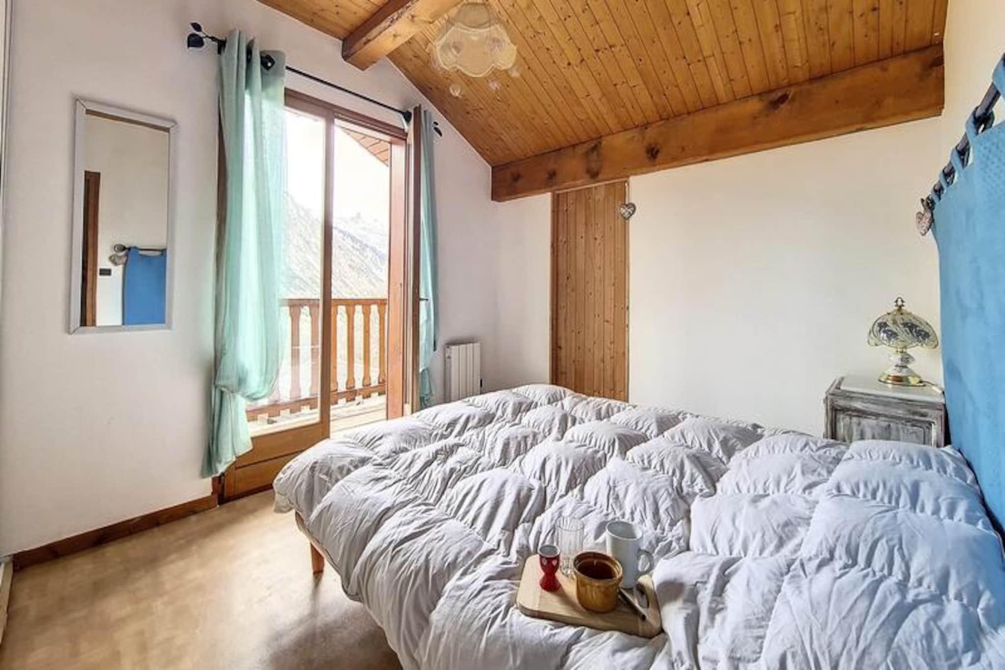 Højt over Belleville-dalen, hvor alpin ro møder spændende eventyr, tilbyder dette charmerende familiehus en uforglemmelig ferie i Saint Martin de Belleville. I en højde af 1.450 meter er denne maleriske landsby en del af det verdensberømte skiområde Les 3 Vallées, der kan prale af 600 kilometer uberørte pister og topmoderne faciliteter. Uanset om du søger spændende pister eller rolige øjeblikke, kombinerer Saint Martin exceptionel skiløb med en varm, autentisk bjerglivsstil. Kun 450 meter fra landsbyens centrum og skiliften placerer denne ejendom dig i hjertet af det hele. \n\nDette typiske Bellevilloise-hus strækker sig over 90 kvadratmeter og har komfortabel plads til op til seks gæster. Første sal har en hyggelig opholds- og spisestue med tv, sovesofa og direkte adgang til en vestvendt terrasse, perfekt til at nyde den alpine udsigt. Det åbne køkken er fuldt udstyret med moderne apparater, herunder opvaskemaskine, ovn og kaffemaskine, hvilket sikrer alle hjemmets bekvemmeligheder. Ovenpå venter to indbydende soveværelser: et med to enkeltsenge og adgang til balkon, og et andet med en dobbeltseng og egen balkon. To badeværelser, hver med bruser og toilet, giver bekvemmelighed for familier eller grupper. \n\nSaint Martin de Belleville tilbyder mere end bare skiløb. Den charmerende landsbyatmosfære, lokale butikker og gourmetrestauranter skaber en dejlig blanding af aktivitet og afslapning. Om sommeren kan du udforske vandrestier, der snor sig gennem frodige enge, og opleve betagende udsigter over de omkringliggende tinder. Med faciliteter som sengelinned og håndklæder inkluderet under vinterophold sikrer denne ejendom en problemfri og komfortabel ferieoplevelse. Uanset om du er her for pudderfyldte eventyr eller rolige alpine flugter, er dette hjem din port til magien i Les 3 Vallées.