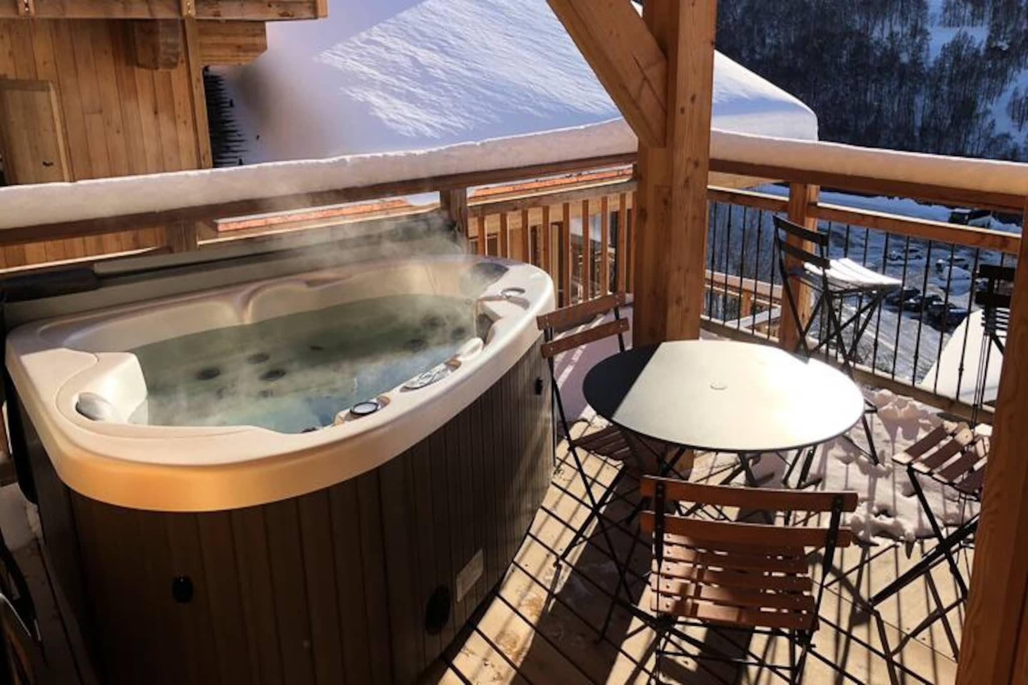 I hjertet af den charmerende landsby Caseblanche tilbyder dette luksuriøse chalet en perfekt blanding af alpin tradition og moderne komfort. Forestil dig at vågne op til den friske bjergluft, med Saint Martin-gondolliften kun 50 meter væk, der giver dig problemfri adgang til det verdensberømte skiområde Les Trois Vallées. Uanset om du er her for spændingen på pisterne eller roen på sommerløjperne, lover dette tilflugtssted en uforglemmelig flugt i de franske alper. \n\nChalet AIGLE strækker sig over 80 kvadratmeter gennemtænkt design og har tre soveværelser med eget badeværelse for ultimativ privatliv og afslapning. Det åbne køkken og spisestue er fuldt udstyret til kulinariske eventyr, mens den hyggelige stue med brændeovn inviterer dig til at slappe af efter en dag med udforskning. Gå ud på den 14 m² store balkon for at nyde den private jacuzzi, omgivet af en betagende udsigt over alperne. For ekstra forkælelse kan chaleten prale af en privat sauna, perfekt til at lindre trætte muskler efter en dag på pisterne eller stierne.\n\nLandsbyen Caseblanche er mere end bare en lokation - det er en destination. På stedet finder du en sportsbutik med alt dit udstyr og et indbydende bjergbrasserie, hvor du kan nyde lokale smagsoplevelser. Om vinteren giver skirummet direkte adgang til pisterne, mens vandrestierne om sommeren starter lige uden for døren og fører dig gennem det fantastiske alpine landskab. \n\nUanset om du søger eventyr eller afslapning, tilbyder Chalet AIGLE en uovertruffen bjergoplevelse. Med sine eksklusive faciliteter, førsteklasses beliggenhed og de franske alpers naturlige skønhed er denne hytte din indgang til at skabe dyrebare minder i enhver sæson.