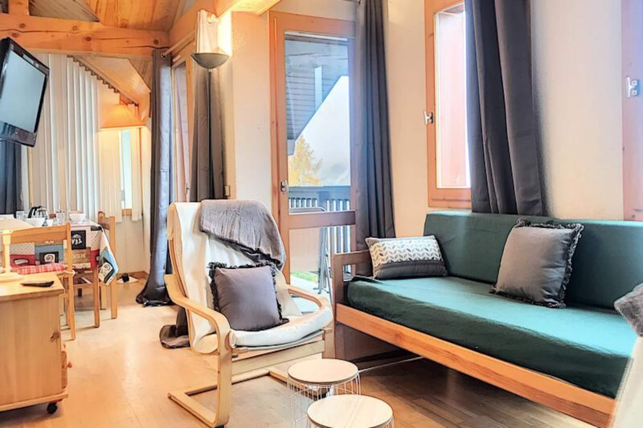Højt over de charmerende landsbygader tilbyder denne dejlige lejlighed i Hors Piste-residensen et hyggeligt alpint tilflugtssted med panoramaudsigt over den spirede kirke og den omkringliggende landsby. Perfekt beliggende i hjertet af landsbyen, få skridt fra lokale butikker, herunder et bageri, en sportsbutik og et apotek, hvilket sikrer bekvemmelighed og et strejf af lokalt præg under dit ophold. Uanset om du nipper til kaffe på den sydvendte balkon eller ser solen gå ned fra den vestvendte terrasse, føles hvert øjeblik her som et postkort, der kommer til live. \n\nIndenfor er den 68 m² store lejlighed omhyggeligt designet til at rumme op til fire gæster. De to soveværelser har et med køjesenge (øverste køjeseng er ikke egnet til børn under seks år) og et andet med to enkeltsenge, hvilket gør den ideel til familier eller små grupper. Stuen indbyder til afslapning med et tv og integreret dvd-afspiller, mens det fuldt udstyrede køkken har moderne apparater såsom ovn, mikrobølgeovn, køleskab og opvaskemaskine, så du nemt kan tilberede måltider. Badeværelset har et badekar til afslapning efter en dag på pisterne, og det separate toilet giver ekstra bekvemmelighed. \n\nMed direkte adgang til landsbyens skilift er du på pisterne på ingen tid og kan nyde den uberørte sne og de betagende alpine udsigter. En overdækket parkeringsplads er inkluderet sammen med et skirum til dit udstyr. Om vinteren leveres sengelinned, håndklæder og viskestykker til din lejlighed ved ophold på syv nætter eller mere, hvilket sikrer en problemfri oplevelse. \n\nUanset om du er her for at stå på ski, udforske landsbyens charme eller blot nyde bjergatmosfæren, tilbyder denne lejlighed den perfekte blanding af komfort og beliggenhed til en uforglemmelig alpin ferie.