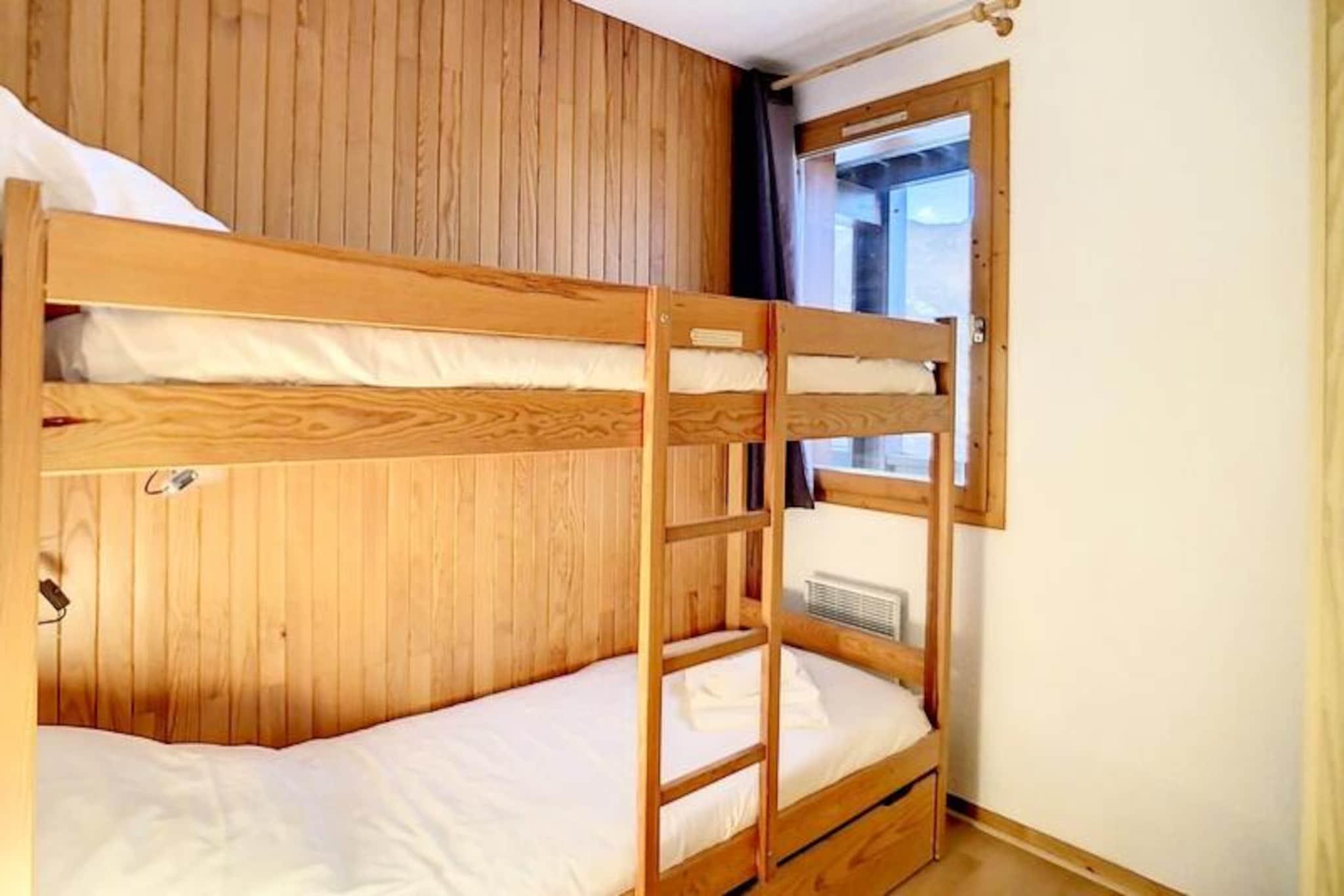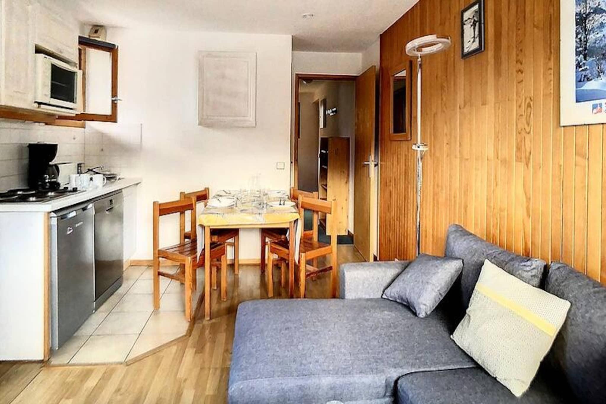 Midt i landsbyens charmerende gader tilbyder denne hyggelige lejlighed i HORS PISTE-residensen et indbydende tilflugtssted for din alpine ferie. Med sin førsteklasses beliggenhed er du omgivet af lokale butikker, herunder et bageri, apotek og sportsbutik, hvilket sikrer bekvemmelighed i alle områder. Den vestvendte balkon tilbyder en malerisk udsigt over landsbyen, perfekt til at slappe af efter en dag med udforskning eller skiløb. Uanset om du er her for vintersport eller sommervandreture, er atmosfæren varm og imødekommende og lover et mindeværdigt ophold. \n\nDenne gennemtænkt designede 2-værelses lejlighed er på 30 m² og har komfortabel plads til op til fire gæster. Soveværelset har to enkeltsenge, mens stuen tilbyder en enkelt sovesofa og en udtræksseng, ideel til familier eller små grupper. Køkkenet er udstyret med moderne bekvemmeligheder, herunder elektriske kogeplader, miniovn, køleskab, opvaskemaskine og essentielle apparater som elkedel og brødrister, hvilket gør det nemt at tilberede måltider derhjemme. Et badeværelse med badekar og separat toilet bidrager til bekvemmeligheden, mens lejlighedens ikke-rygerpolitik sikrer et friskt og behageligt miljø. \n\nBeliggende kun få skridt fra skiliften er denne bolig perfekt til vintersportsentusiaster. Det inkluderede skirum gør opbevaring af udstyr problemfrit, mens den overdækkede parkeringsplads tilføjer ekstra bekvemmelighed. Under vinterophold på syv nætter eller mere får gæsterne gratis sengelinned, håndklæder og andre fornødenheder leveret direkte til lejligheden. \n\nUanset om du er tiltrukket af spændingen ved pisterne eller landsbyens ro, tilbyder denne lejlighed den perfekte base for at udforske de franske alpers skønhed. Med sin blanding af komfort, praktisk anvendelighed og uovertruffen beliggenhed er det et ideelt valg til din næste bjergferie.