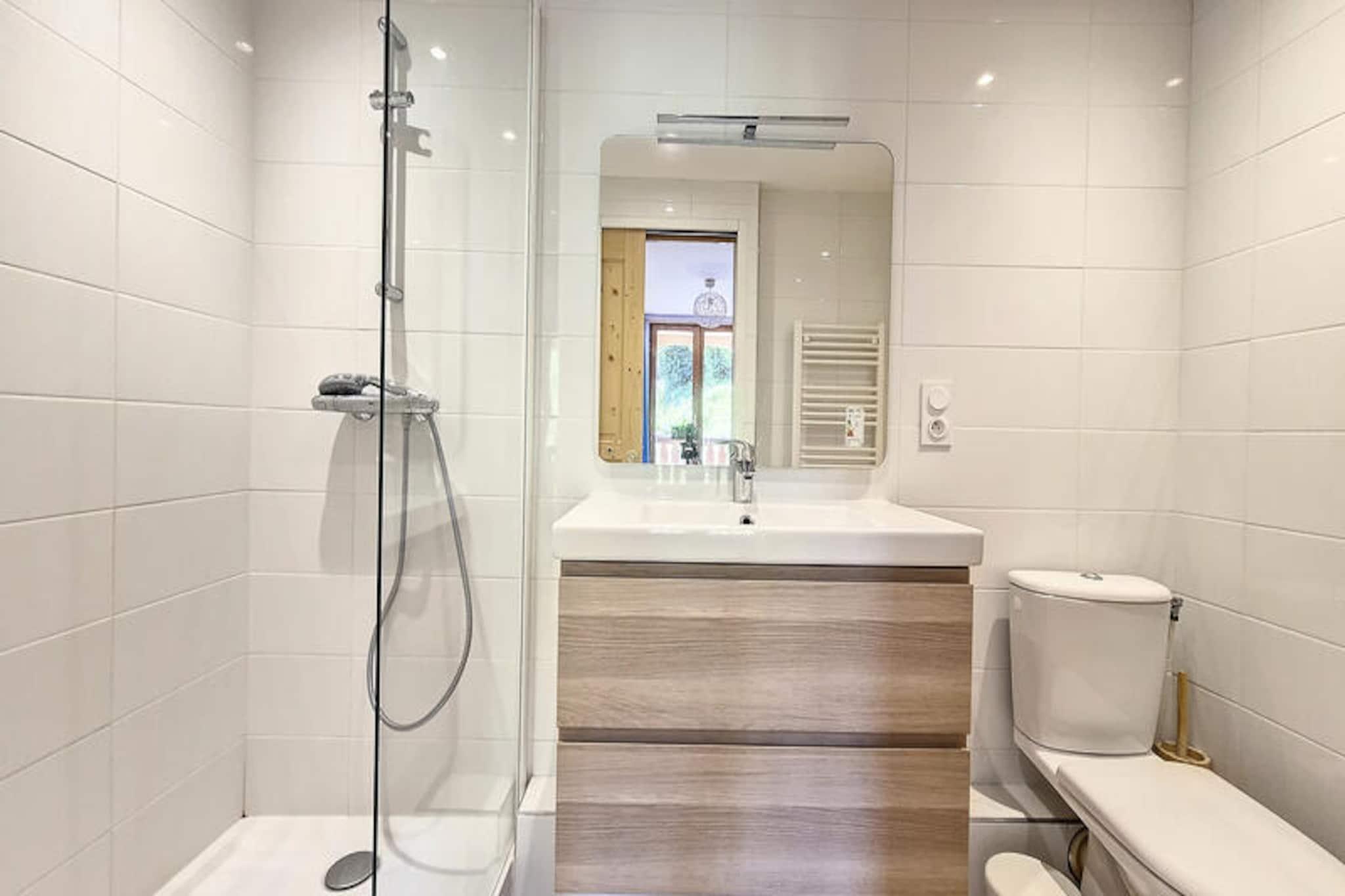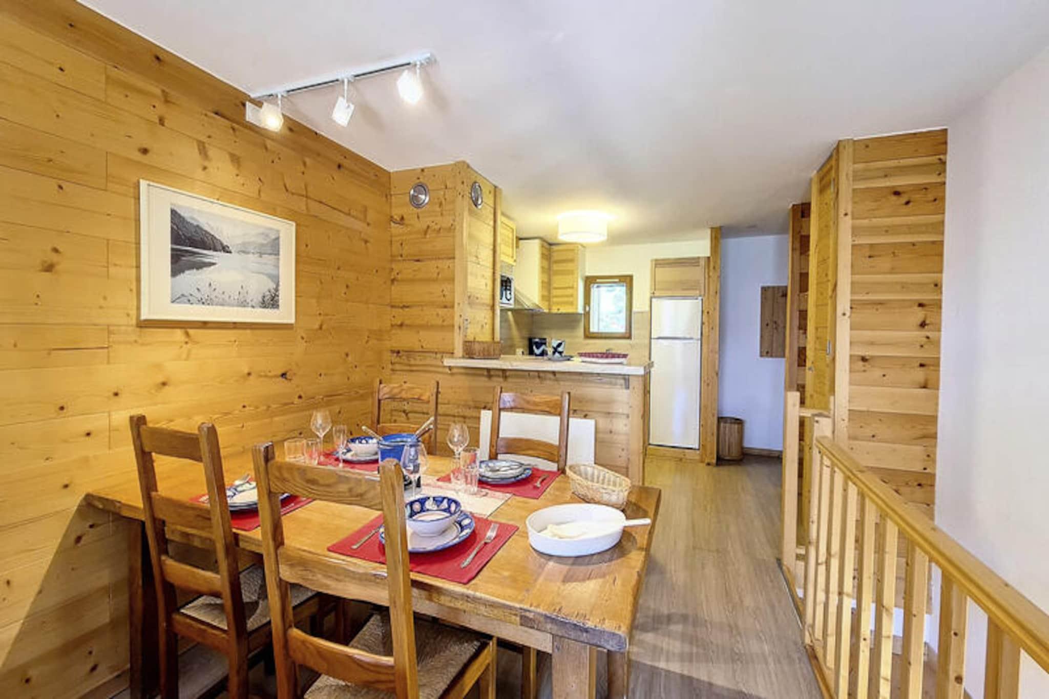 I hjertet af det charmerende Grangeraies-distrikt tilbyder denne dejlige duplexlejlighed en perfekt blanding af alpin tradition og moderne komfort. Med direkte adgang til Saint Martin 1-svævebanen er du problemfrit forbundet med det verdensberømte skiområde Les Trois Vallées, hvilket gør det til en ideel base for vintersportsentusiaster. Den sydvestvendte balkon tilbyder et roligt tilflugtssted, hvor du kan nyde udsigten over bjergene og sole dig i eftermiddagssolen efter en spændende dag på pisterne. \n\nDenne omhyggeligt designede lejlighed er på 66 m² og har komfortabel plads til op til fire gæster. De to soveværelser med eget badeværelse sikrer privatliv og bekvemmelighed, hvor det ene har en dobbeltseng og det andet to enkeltsenge, begge udstyret med eget brusebad og toilet. Den hyggelige stue indbyder til afslapning med sit tv og dvd-afspiller, mens det fuldt udstyrede køkken med kogeplader med 4 blus, ovn, opvaskemaskine og kaffemaskine gør madlavning til en leg. Yderligere detaljer som et privat skirum med tørretumbler gør dit ophold endnu nemmere.\n\nBare fem minutters gang bringer dig til landsbyens centrum, hvor du finder dagligvarebutikker, sportsbutikker og skiskolen. Ejendommens beliggenhed tilbyder også direkte adgang til skiliften, hvilket sikrer bekvemmelighed i alle områder. Uanset om du er her for at slentre gennem uberørt puddersne eller udforske de fredfyldte alpine stier, placerer denne ejendom dig i hjertet af det hele.\n\nMed sit 3 Gold Snowflakes resort-kvalitetsmærke lover denne ikke-ryger, kæledyrsfri lejlighed en høj standard af komfort og stil. Fra de gennemtænkte vinterfaciliteter til den uovertrufne beliggenhed er dette din indgang til en uforglemmelig alpin flugt.